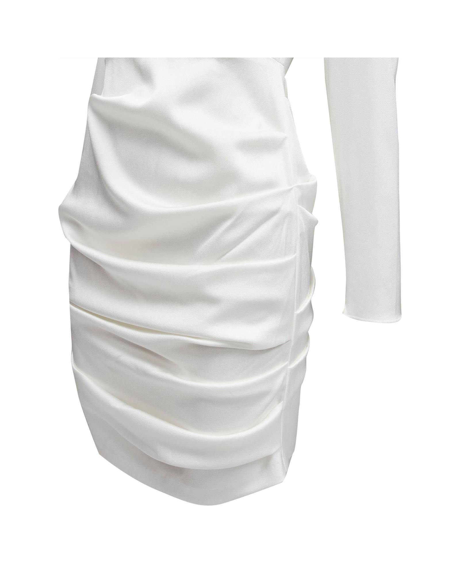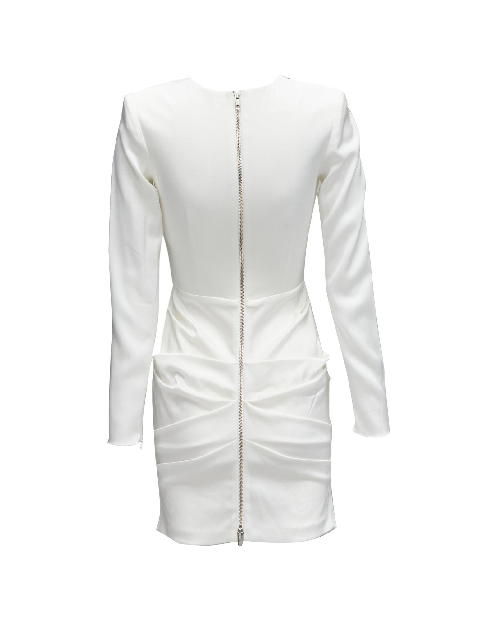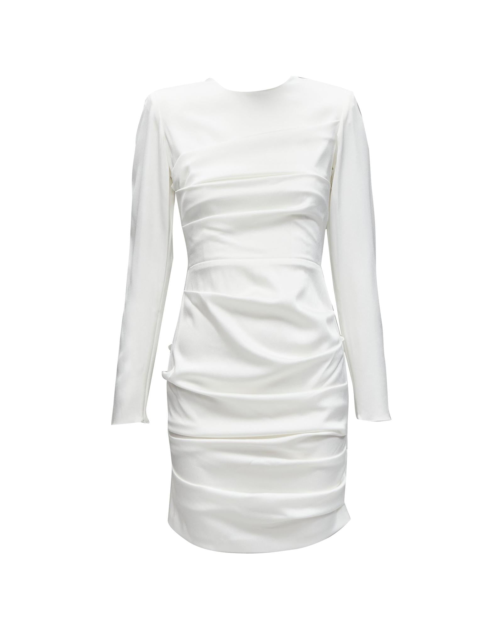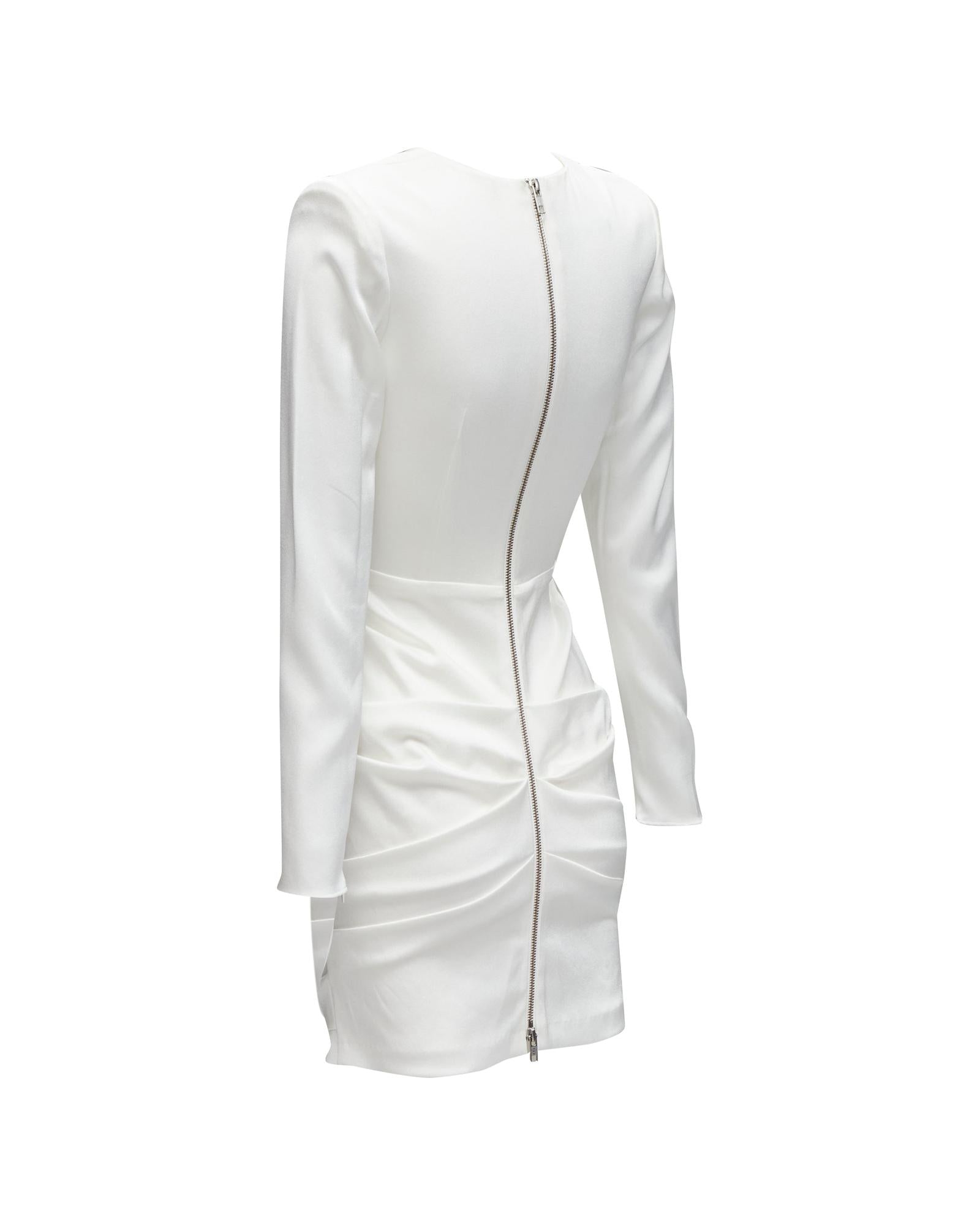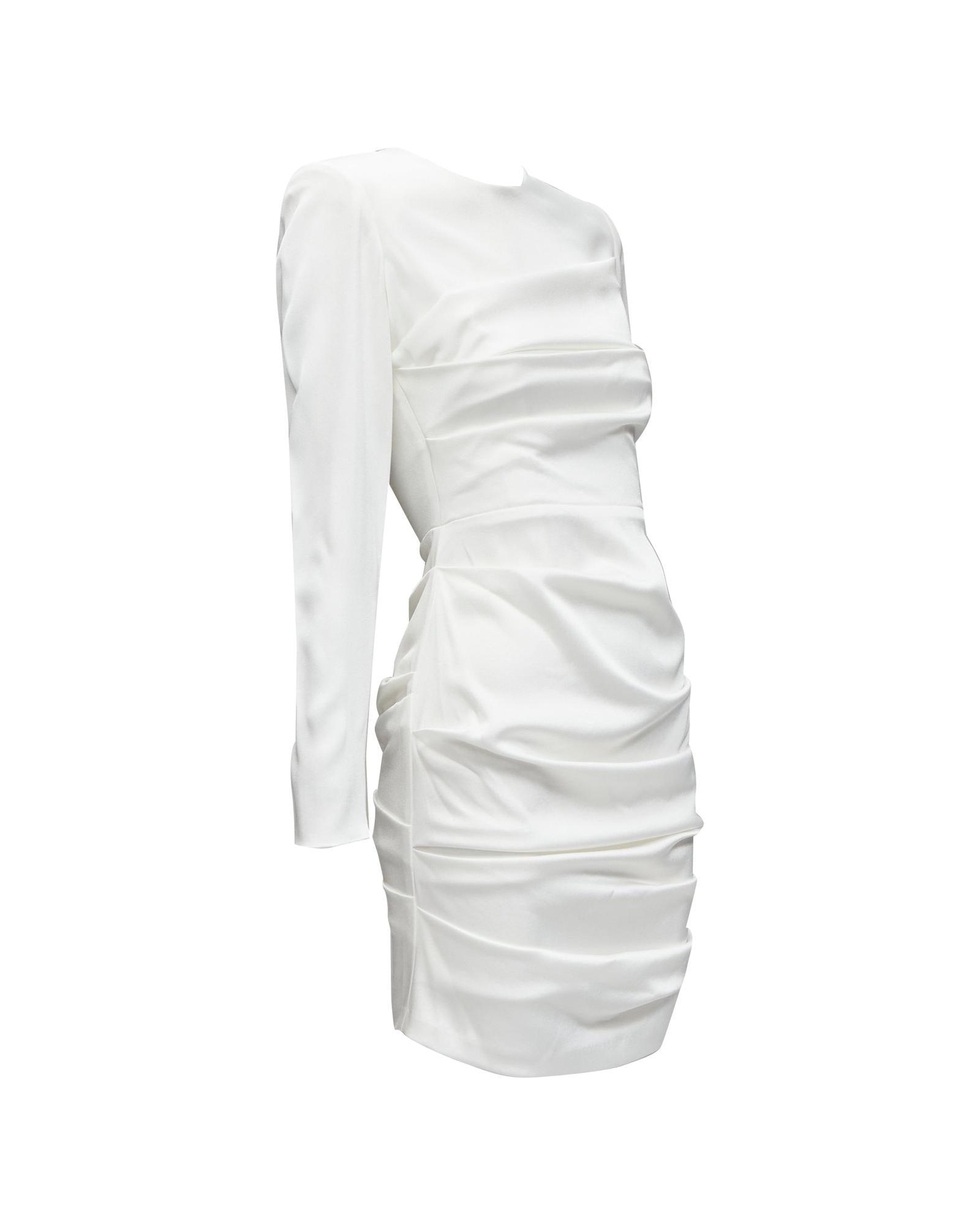 Pre-owned Elegant Fitted Dress with Long Sleeves and Ruched Detailing