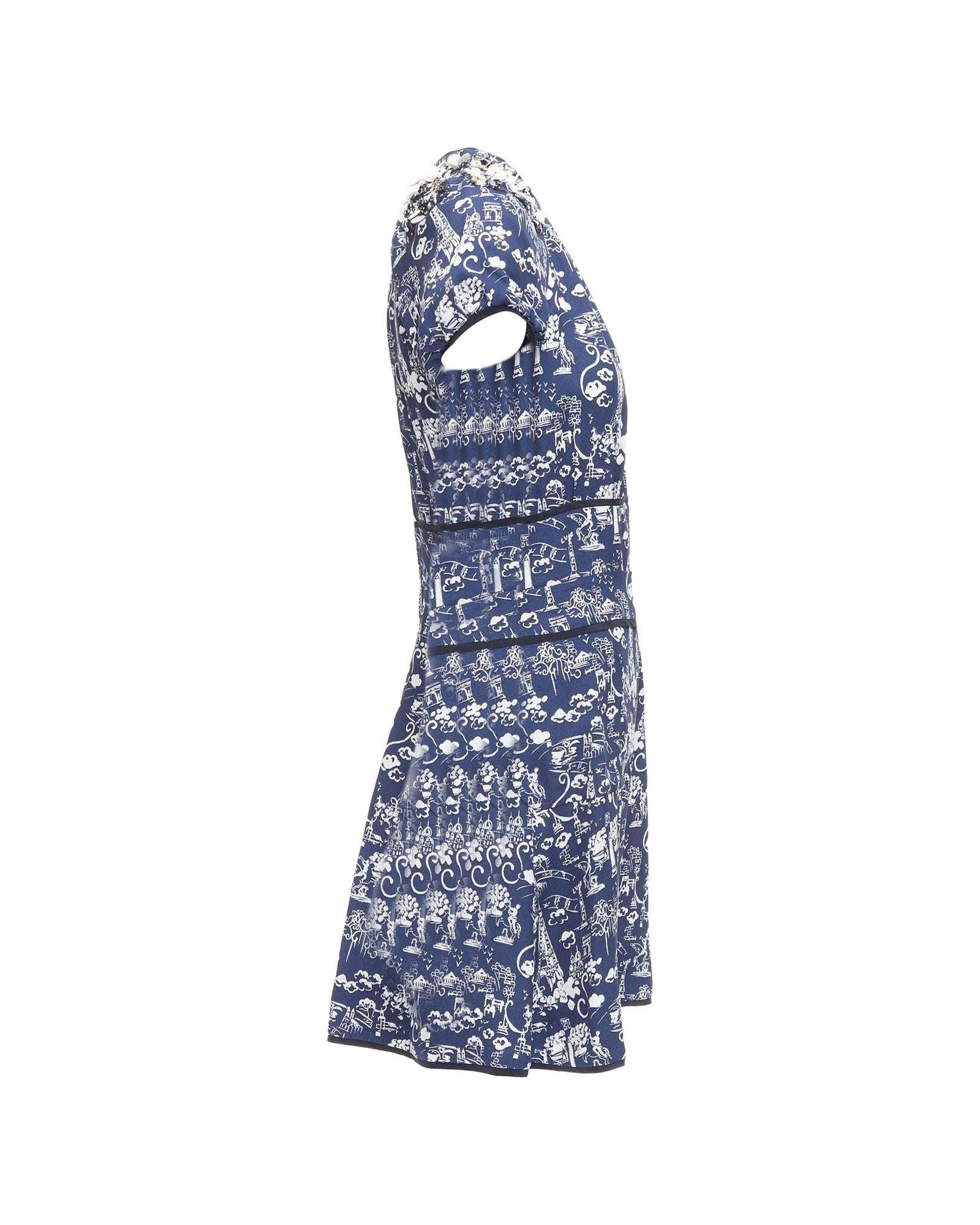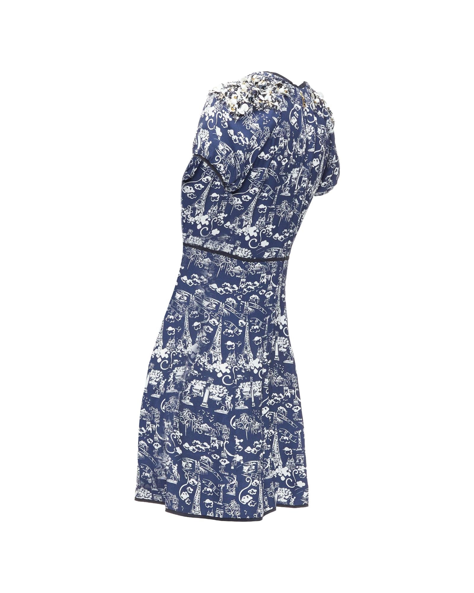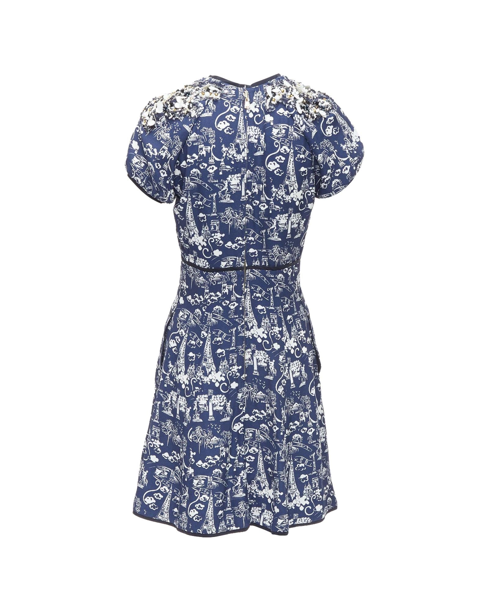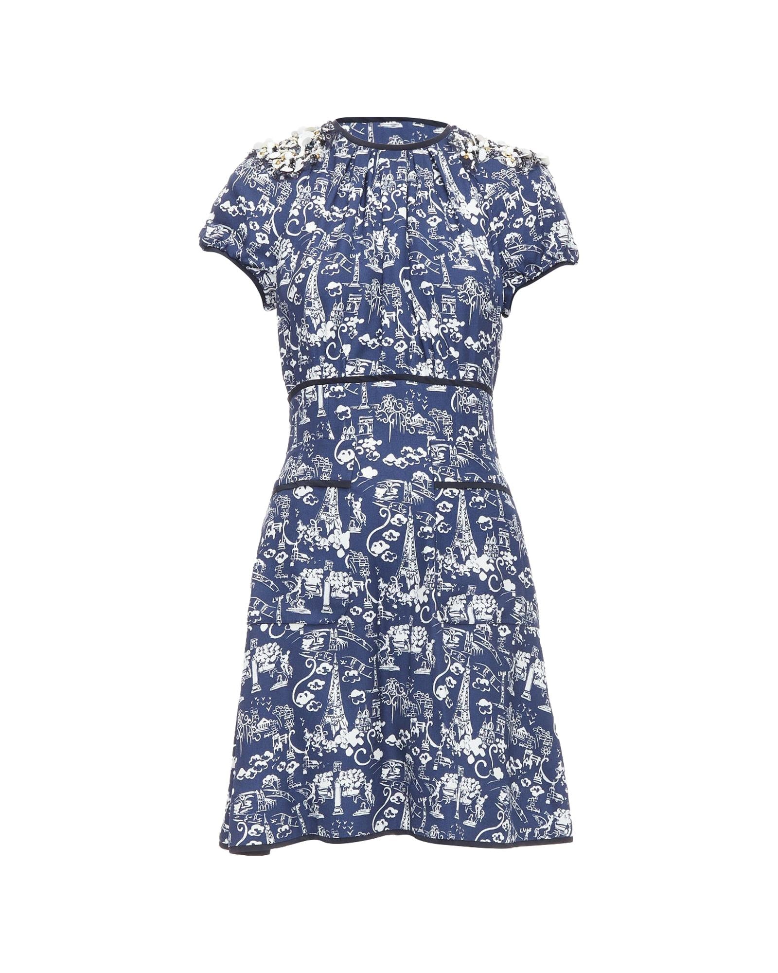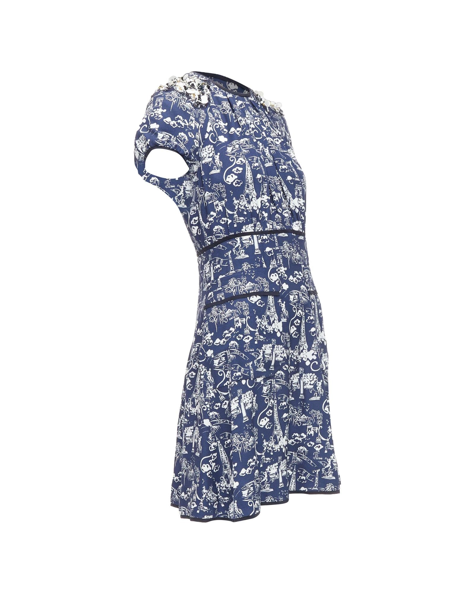 Pre-owned Printed Short Sleeve Dress with Embellished Detail