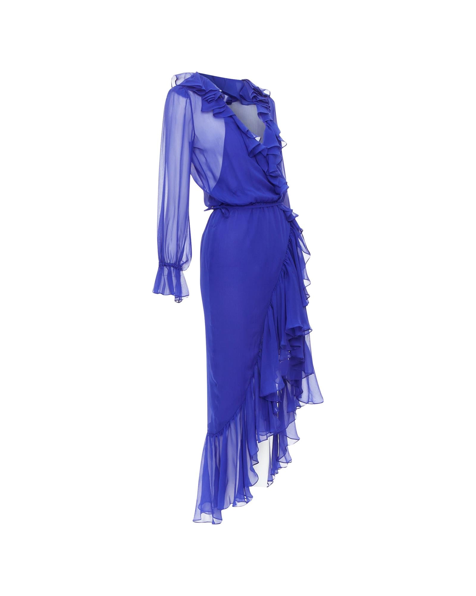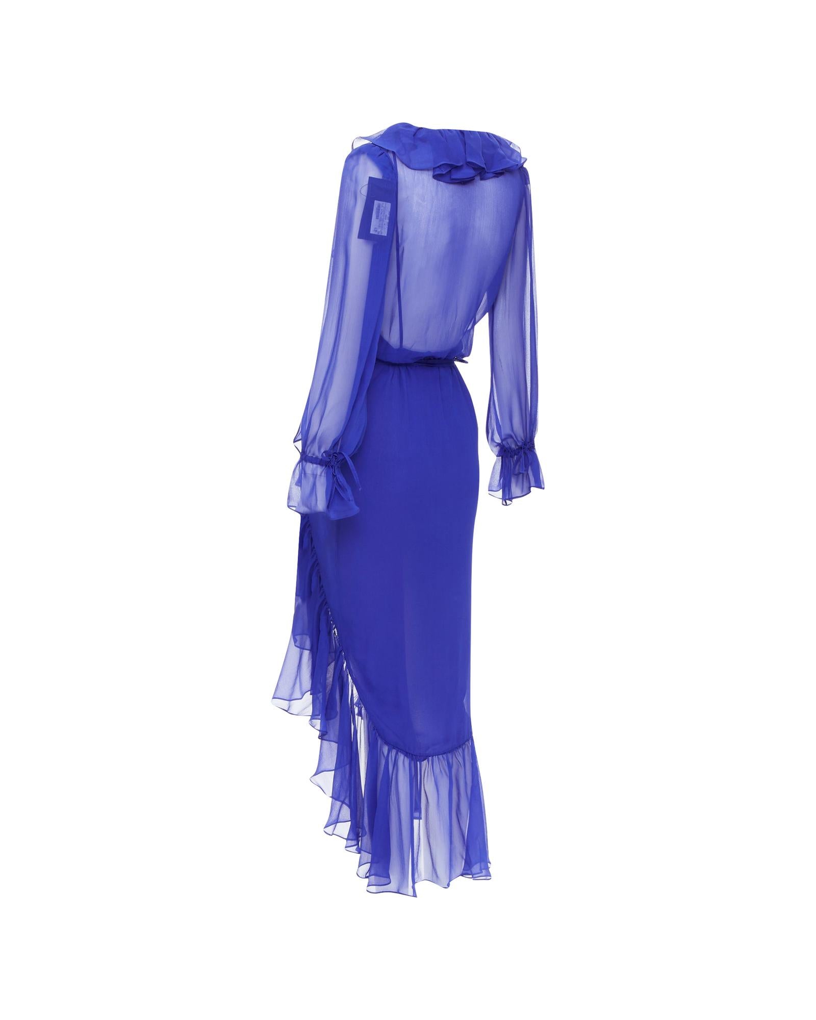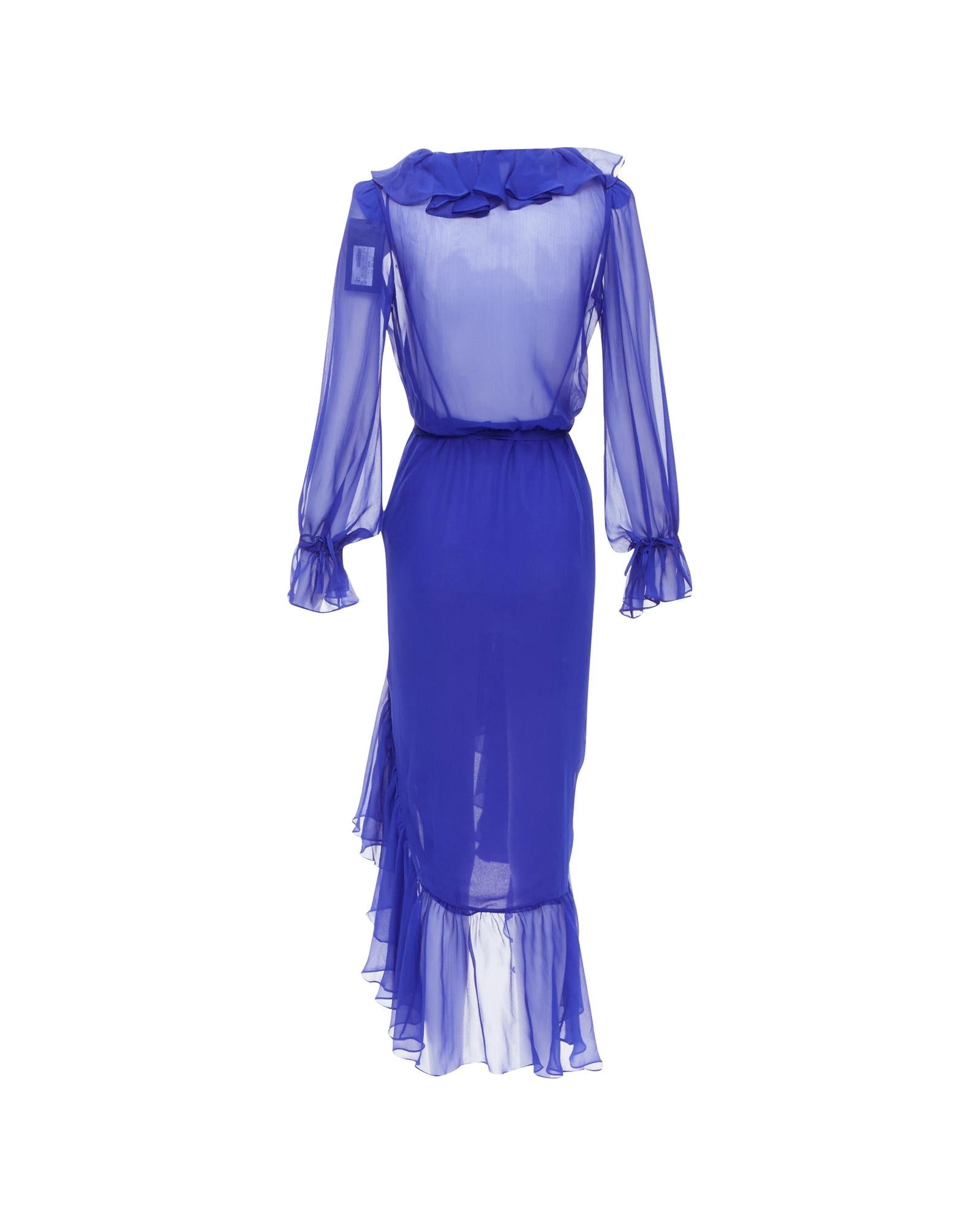 Pre-owned Elegant Long Sleeve Ruffle Dress with Tie Closure and Sheer Design