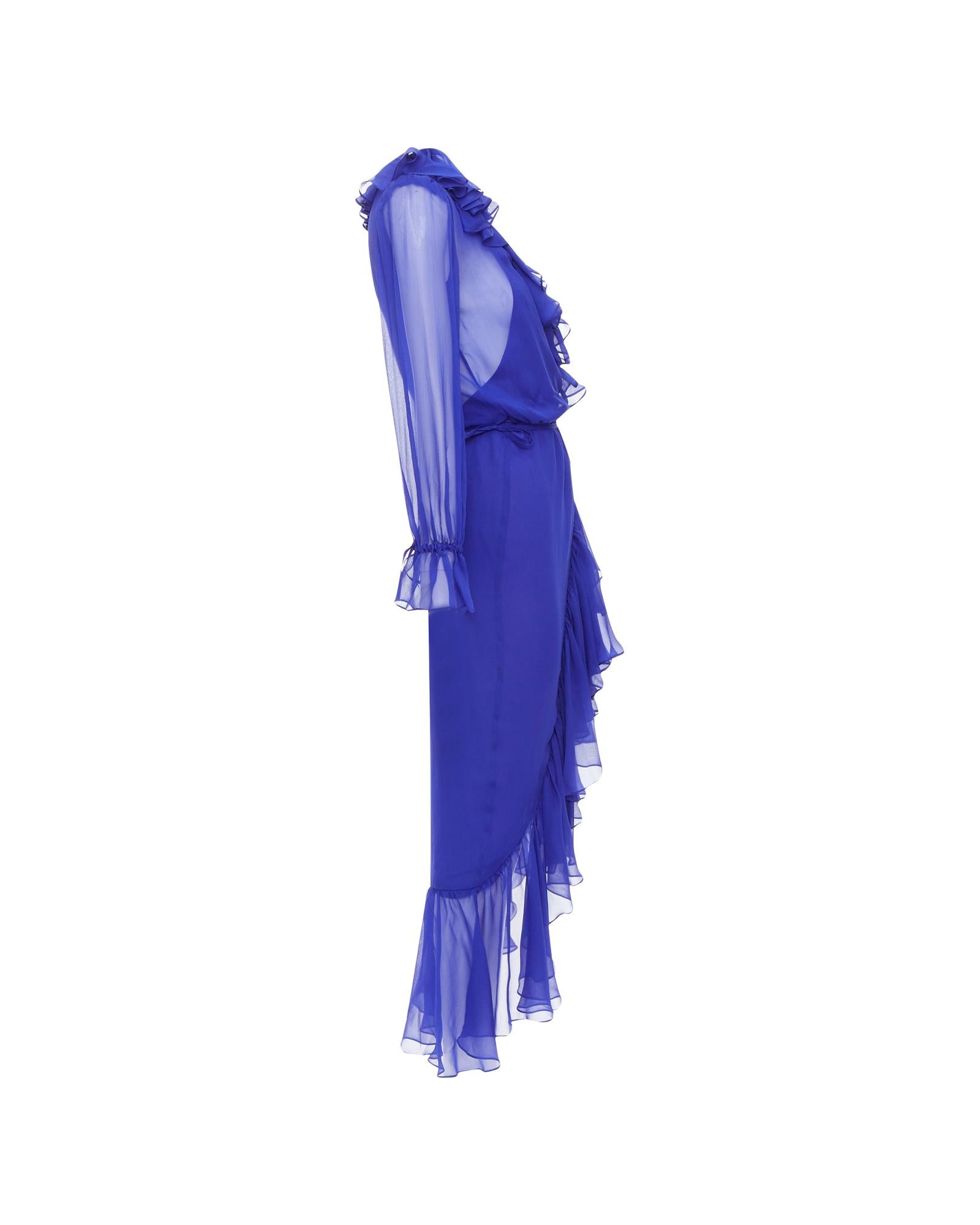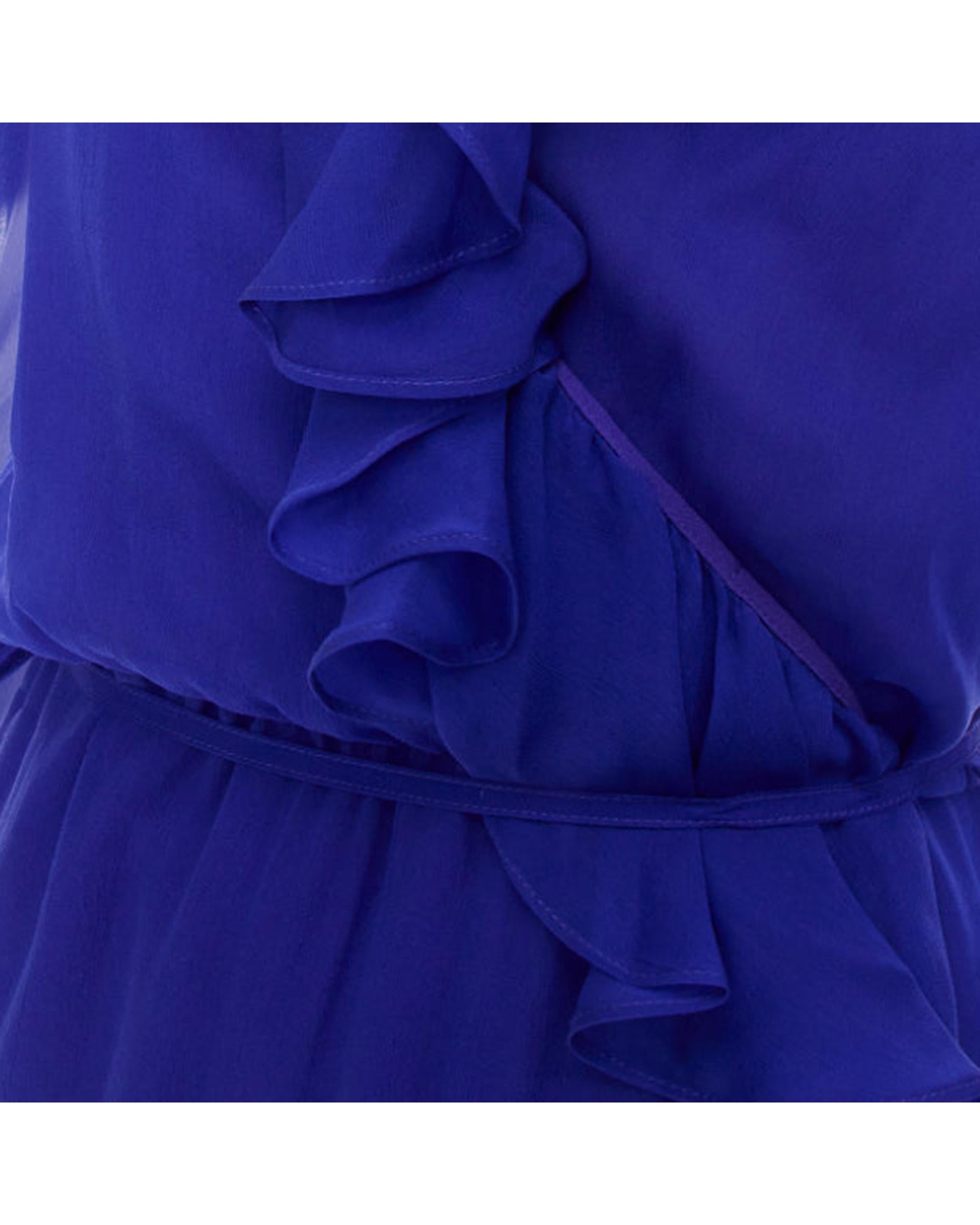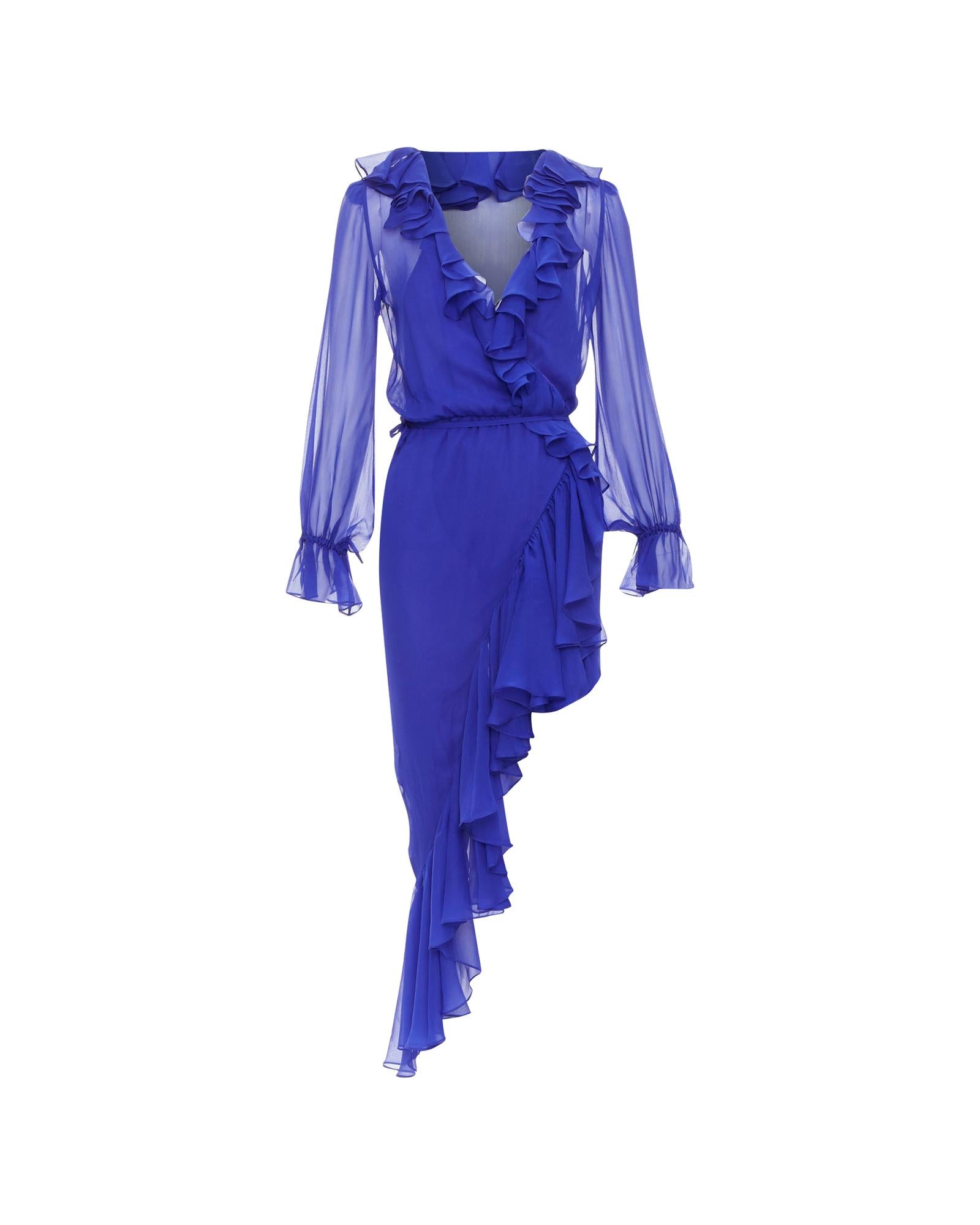 Pre-owned Elegant Long Sleeve Ruffle Dress with Tie Closure and Sheer Design