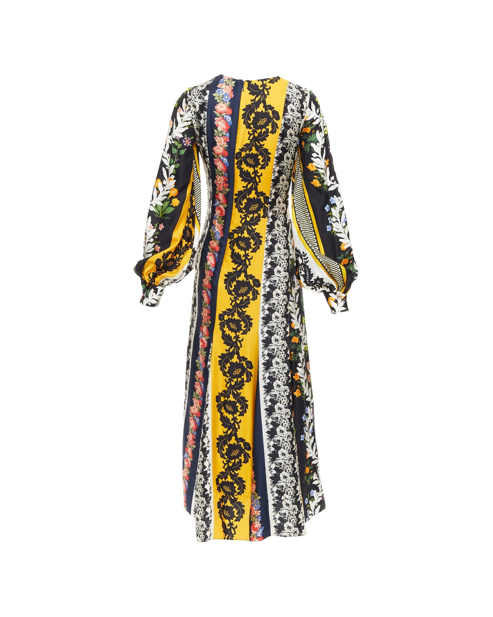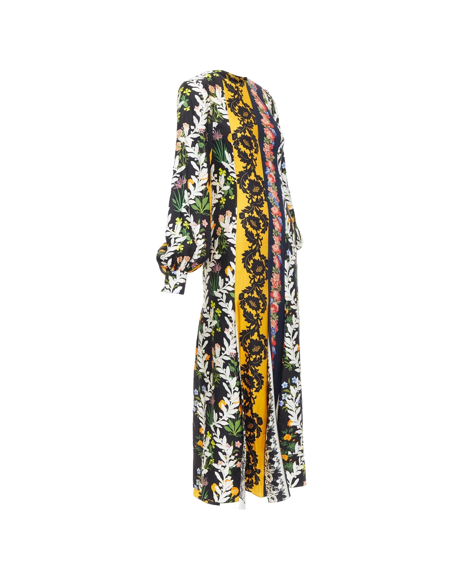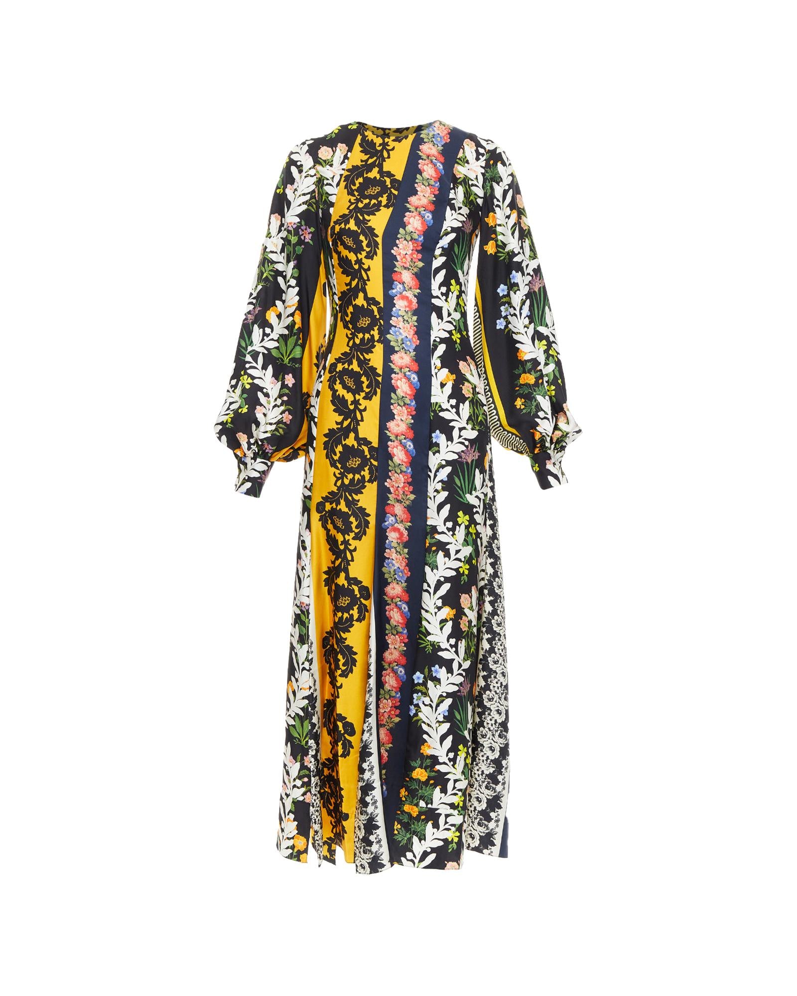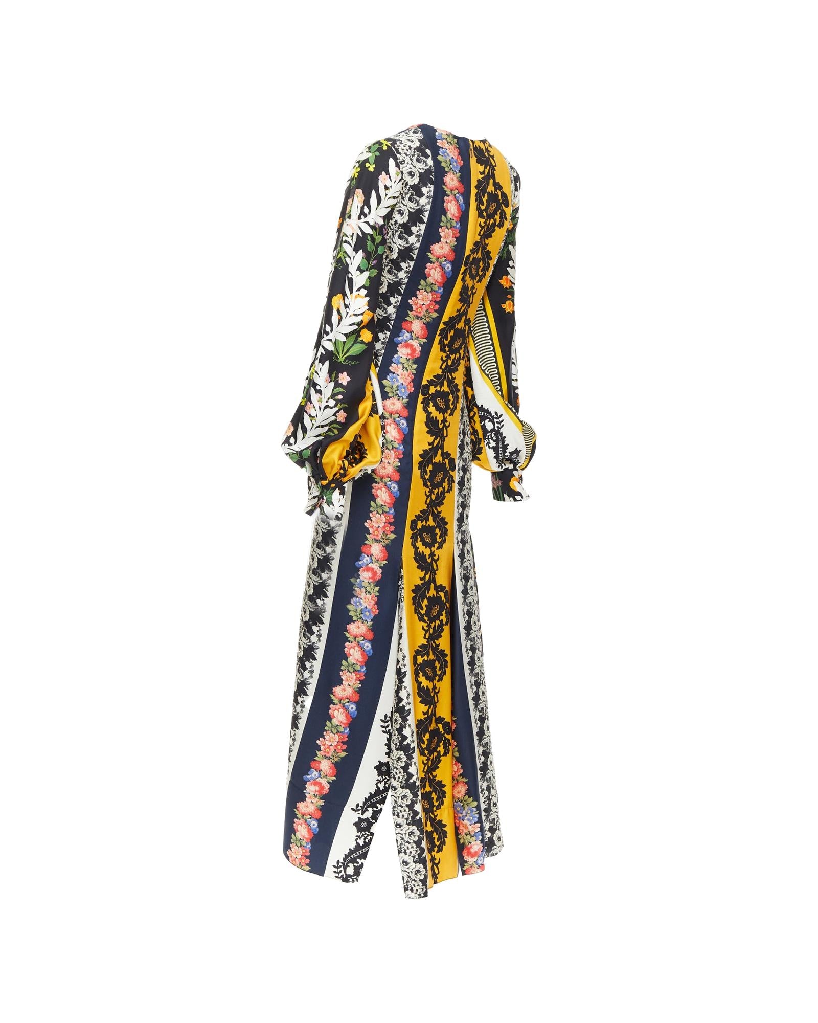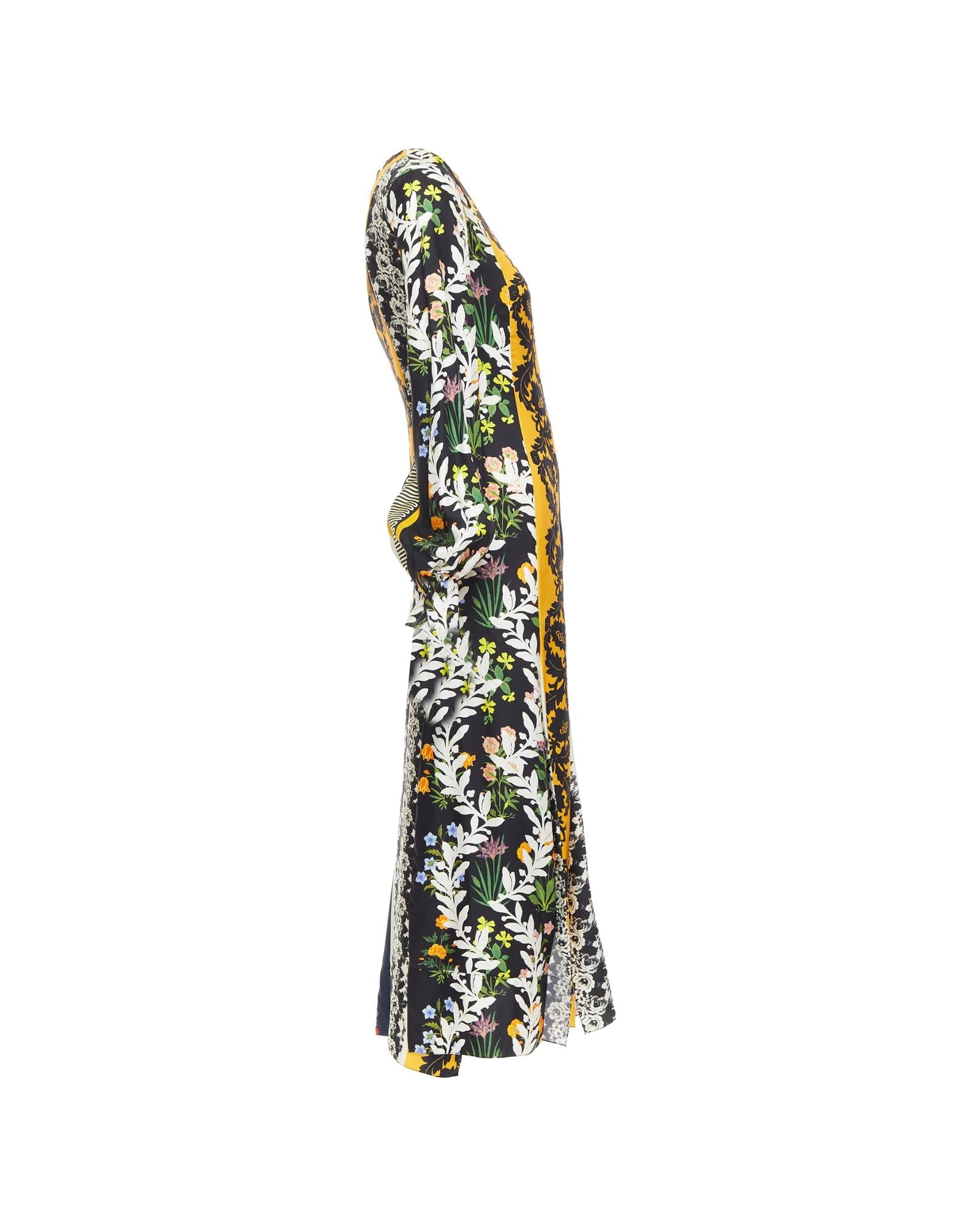 Pre-owned Elegant Long Sleeve Maxi Dress with Floral Print and Buttoned Cuffs