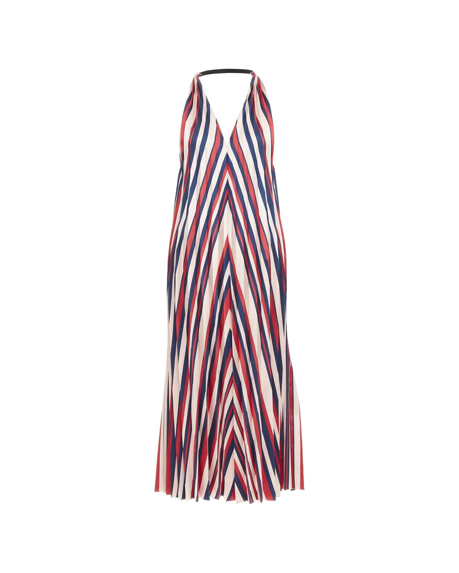 Pre-owned Elegant Halter Neckline Maxi Dress with Striped Pattern
