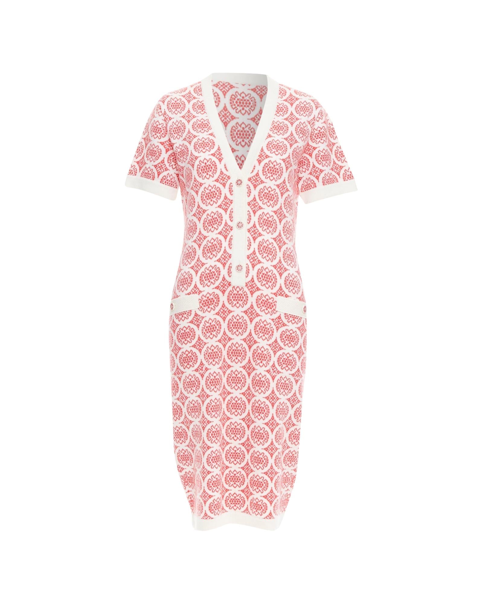 Pre-owned Knit Dress with Short Sleeves and Button Closure
