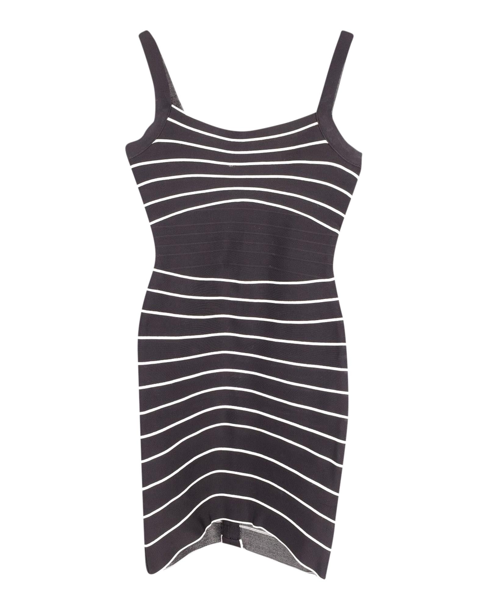 Striped Mini Dress in Black Print Rayon