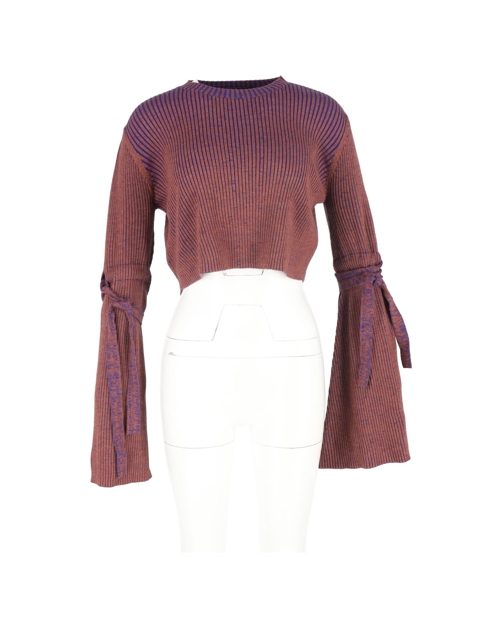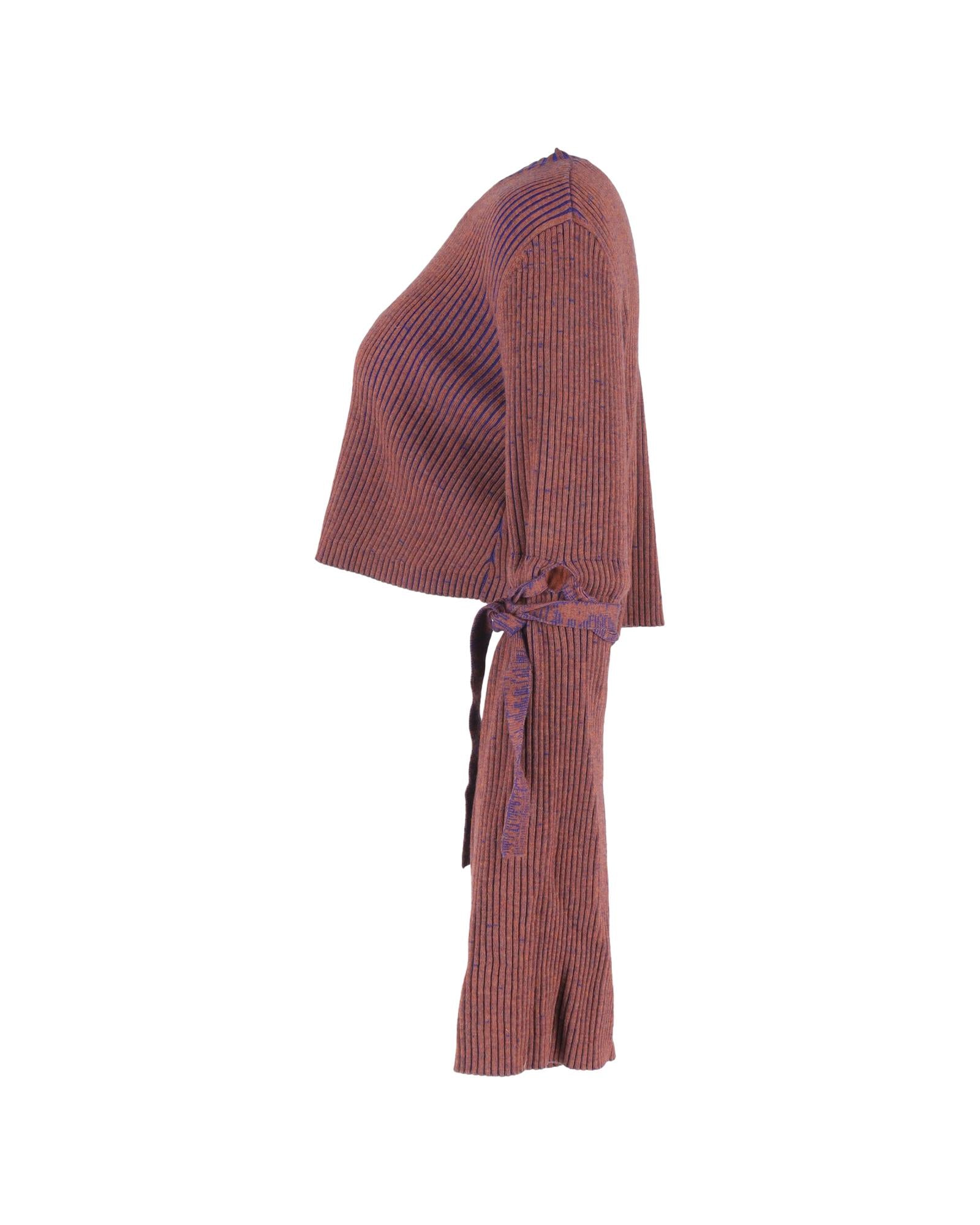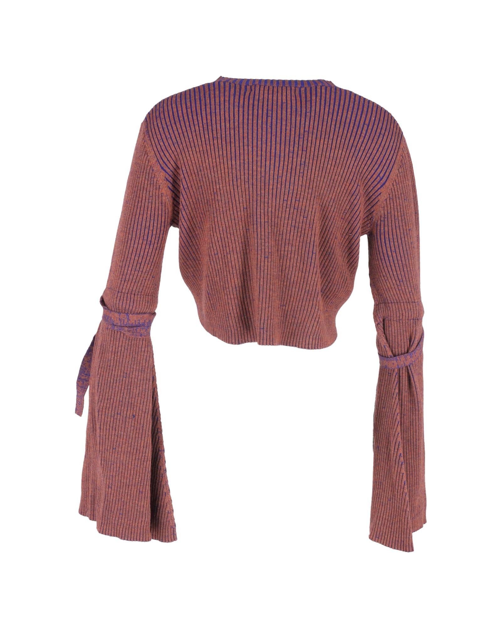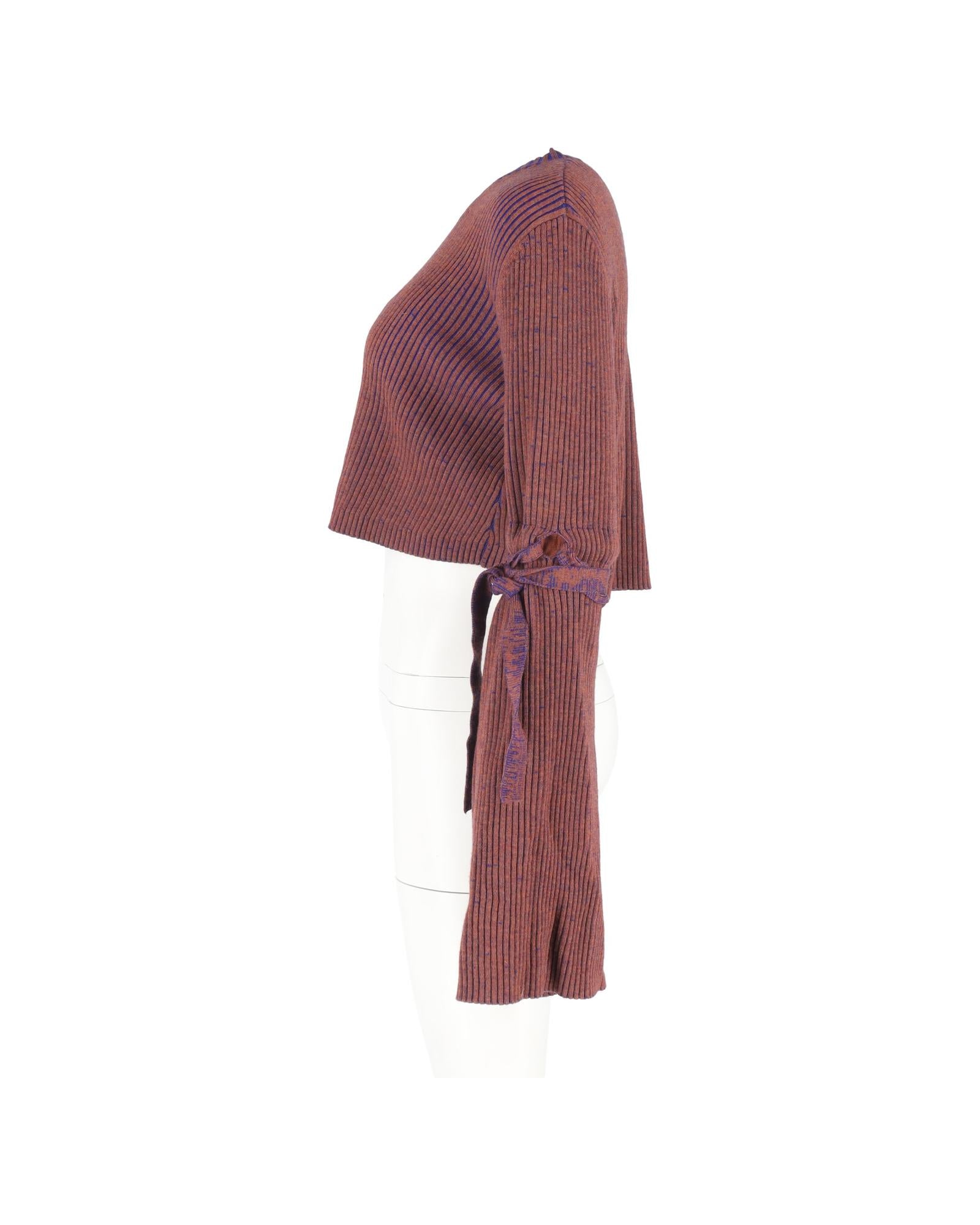 - Ellery Knitted Flared Sleeve Top in brown wool