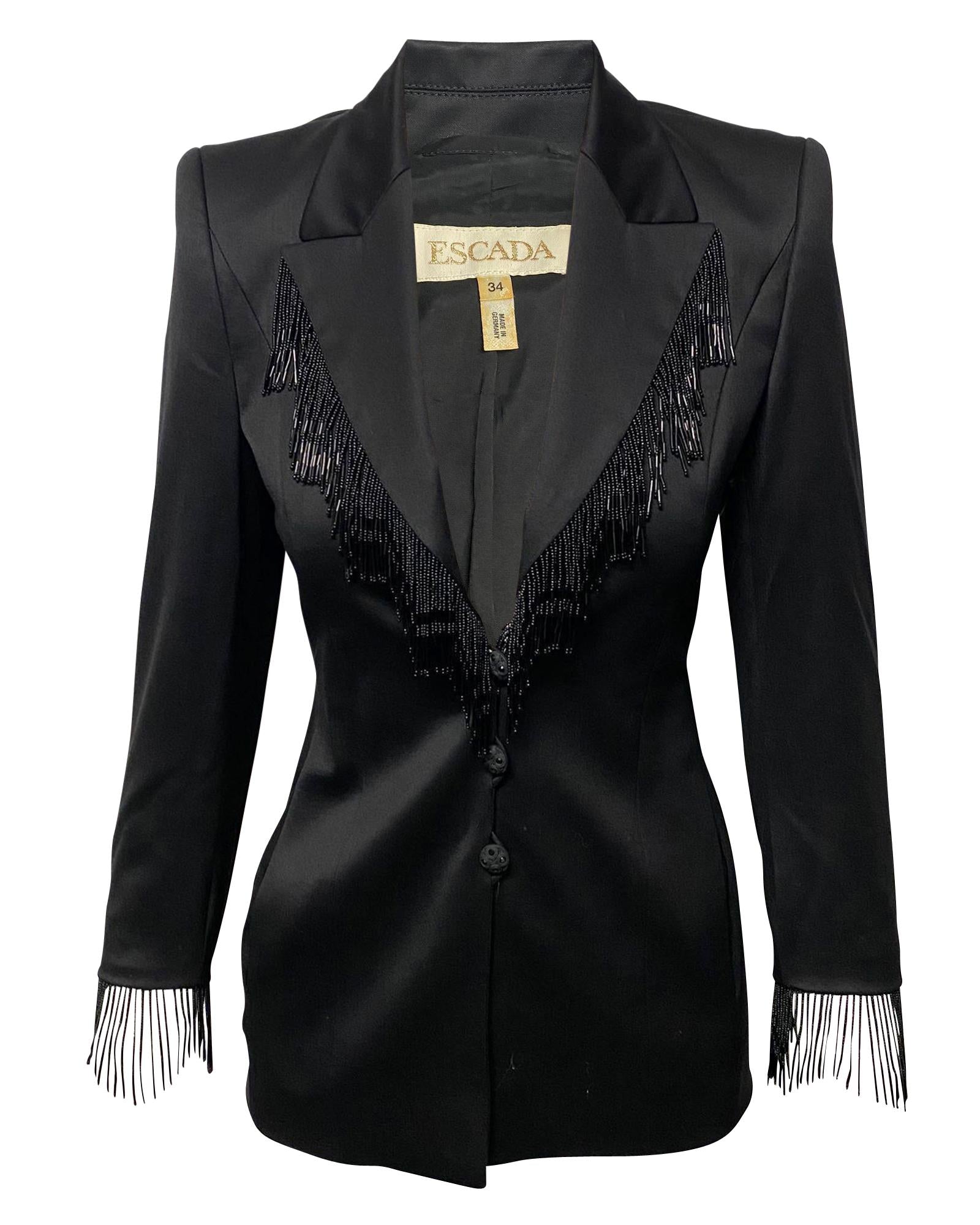 - Luxurious Escada Embellished Trouser Suit Set in Black Wool