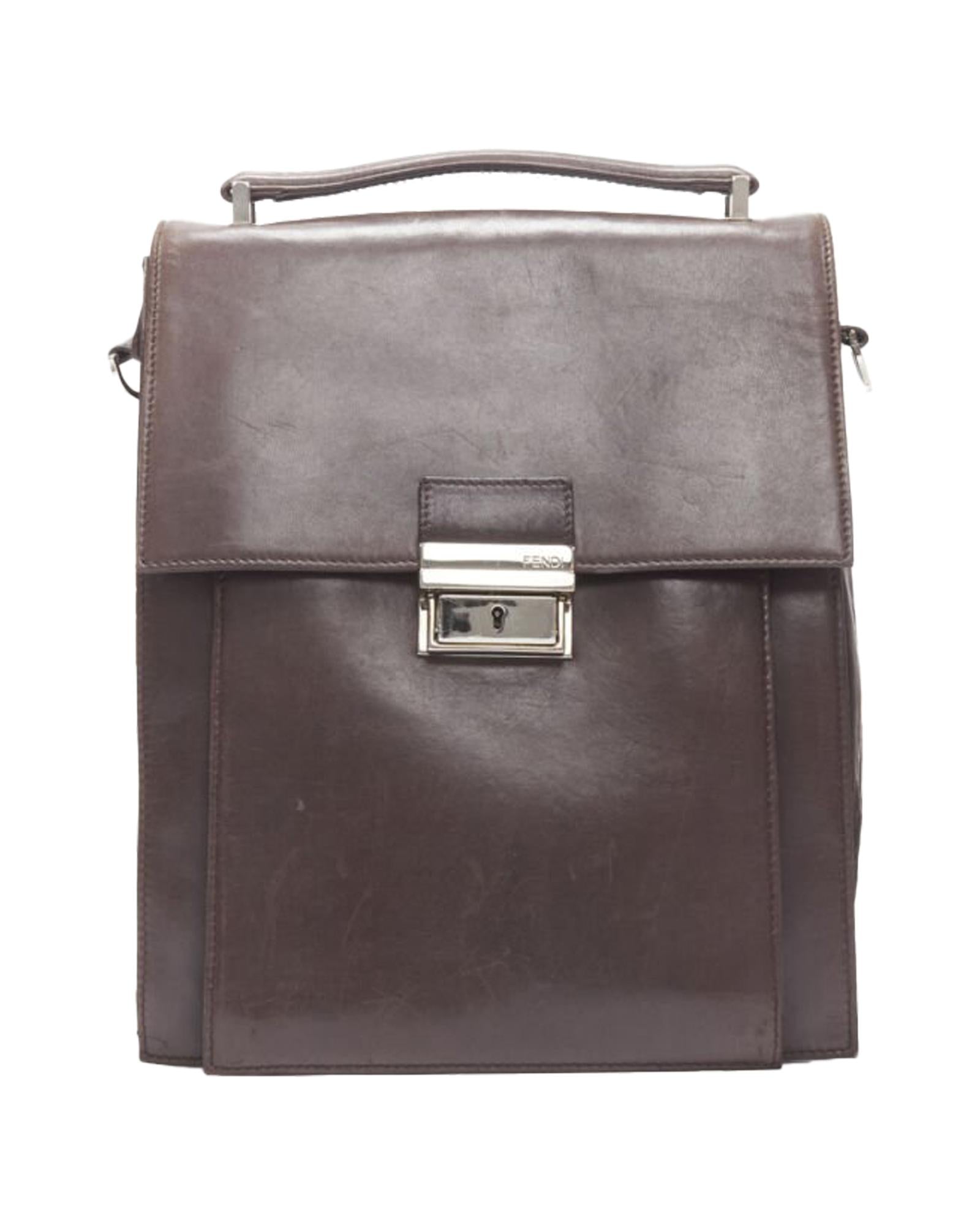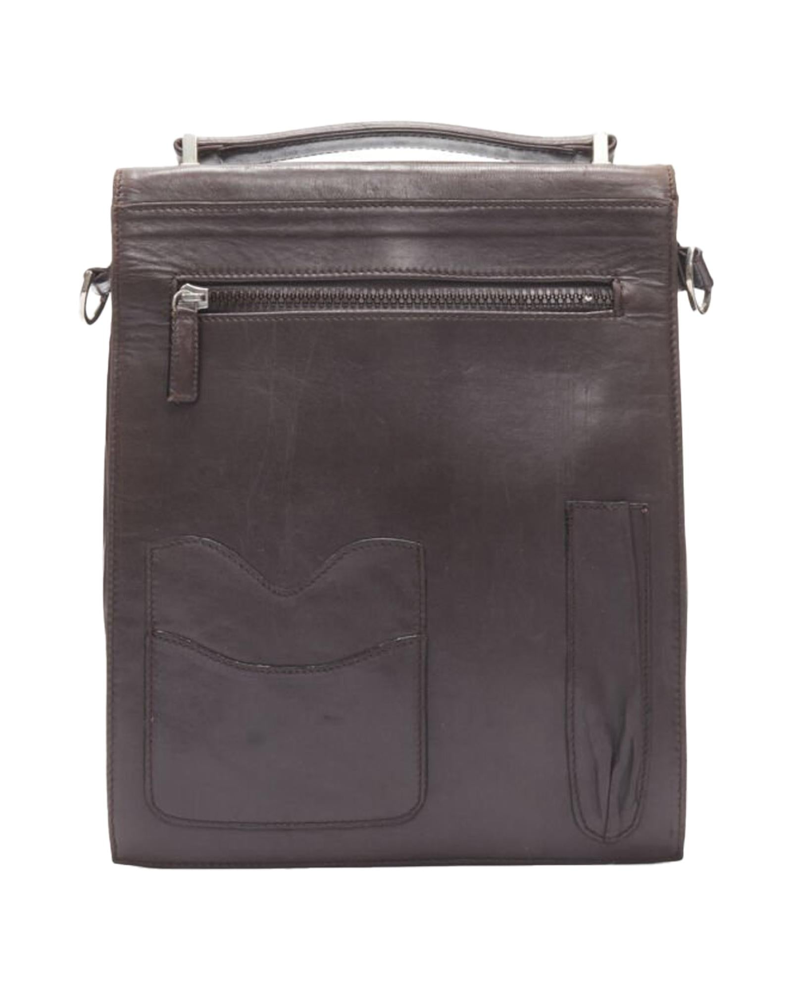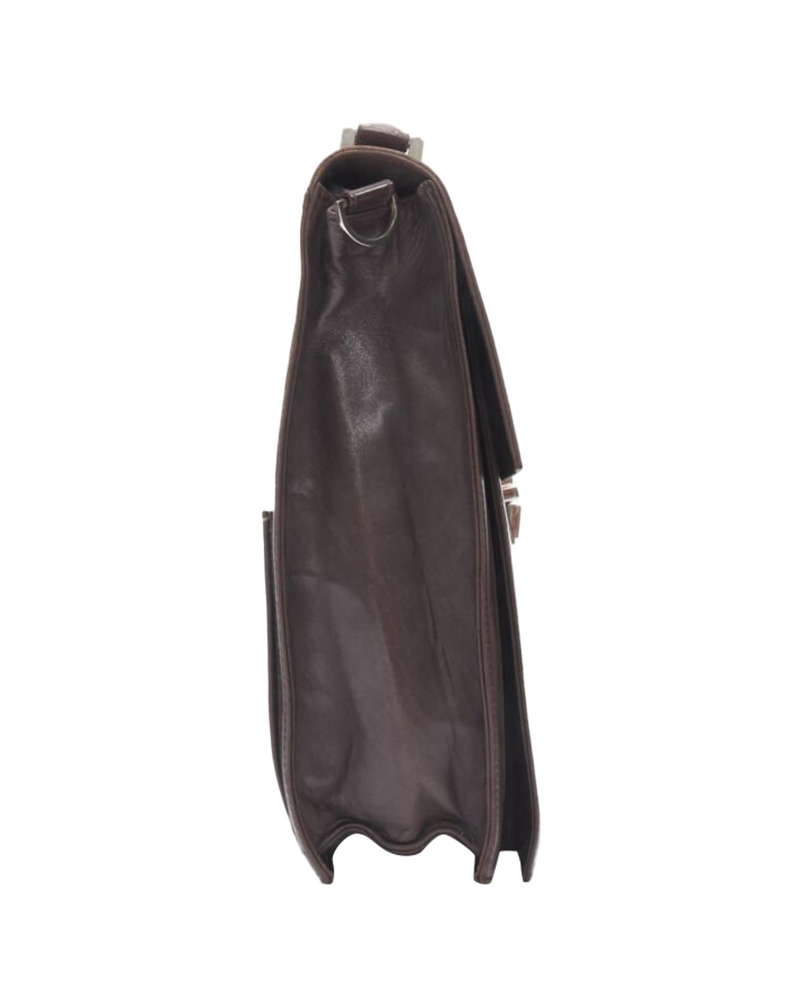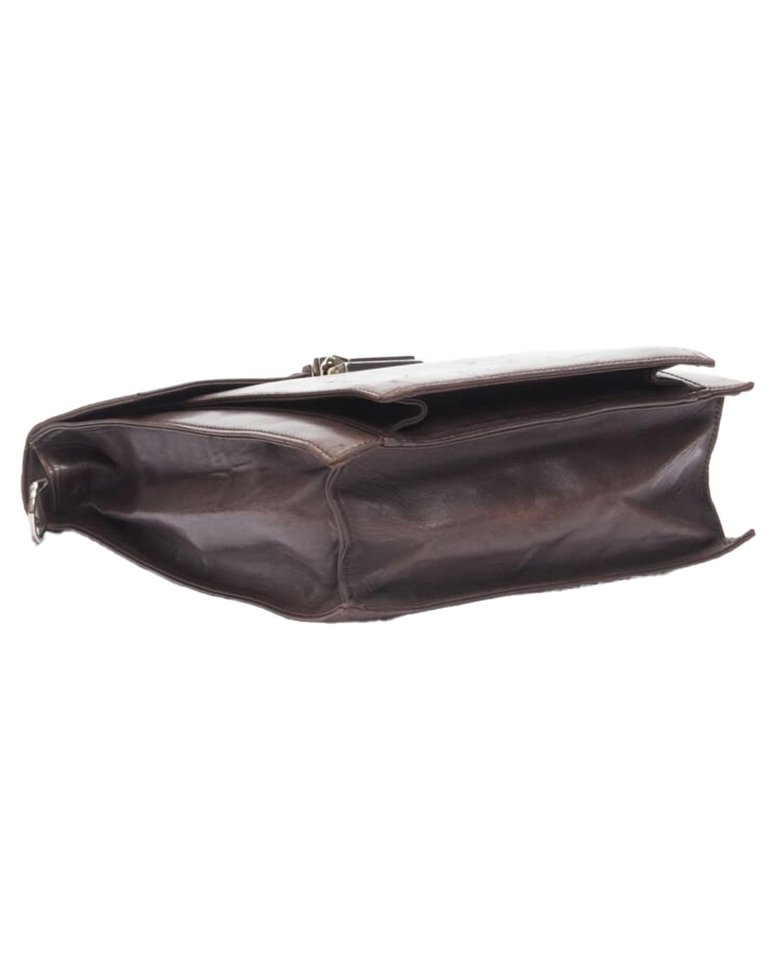 Pre-owned Leather Briefcase with Flap Closure Top Handle and Detachable Shoulder Strap