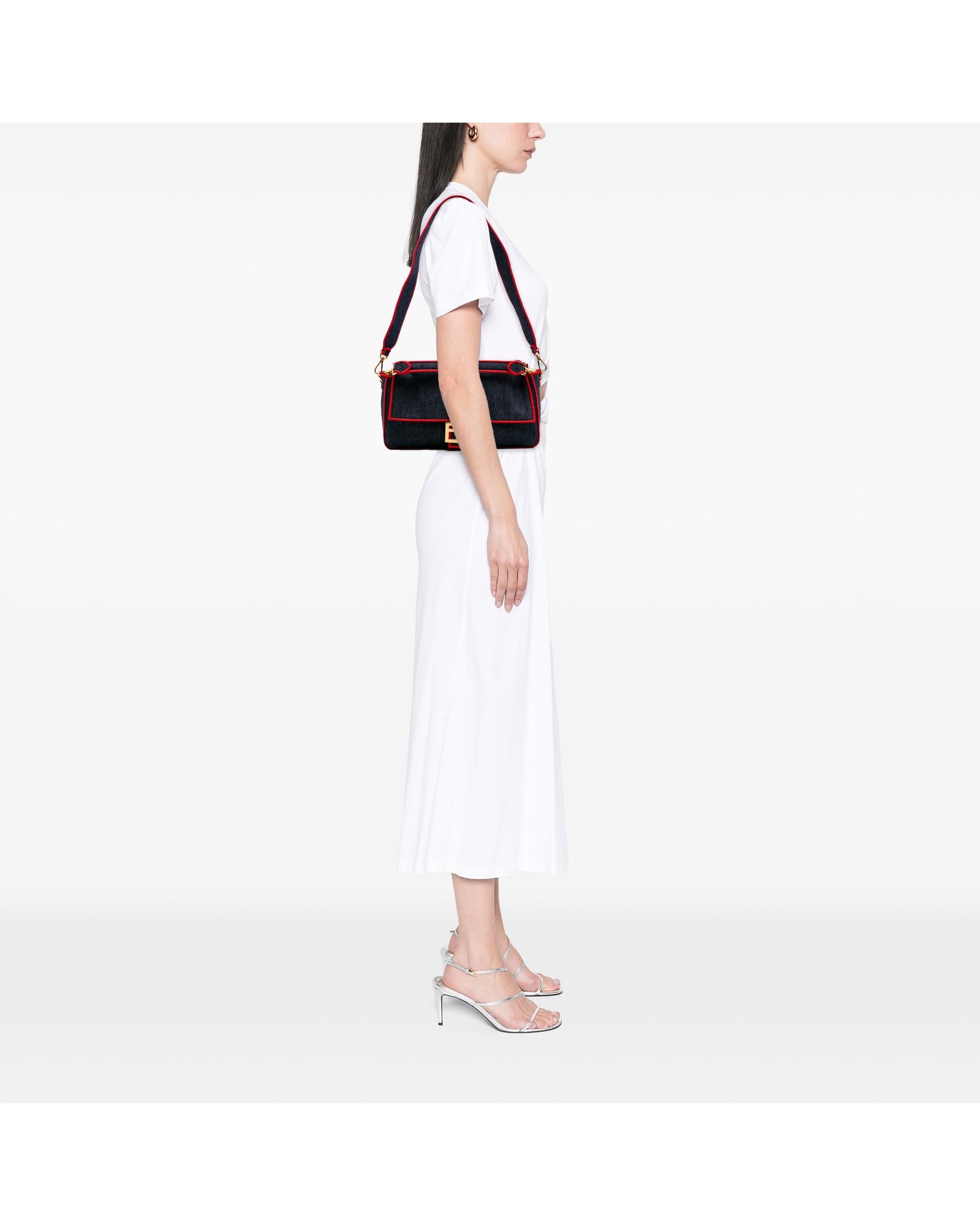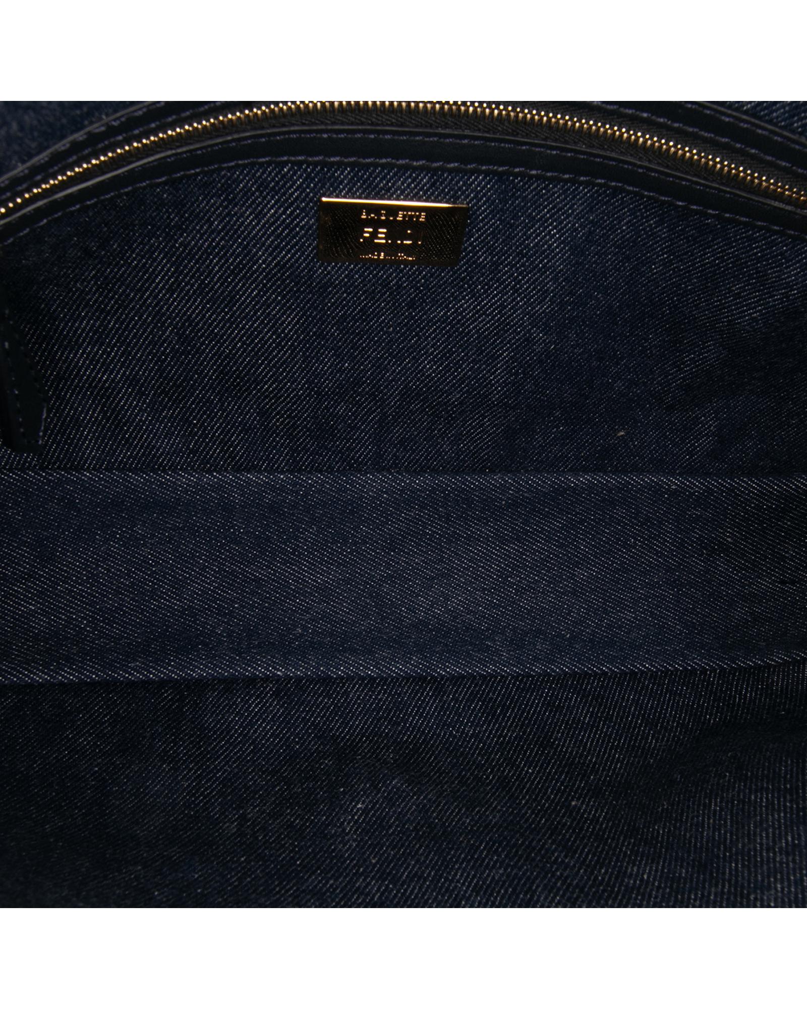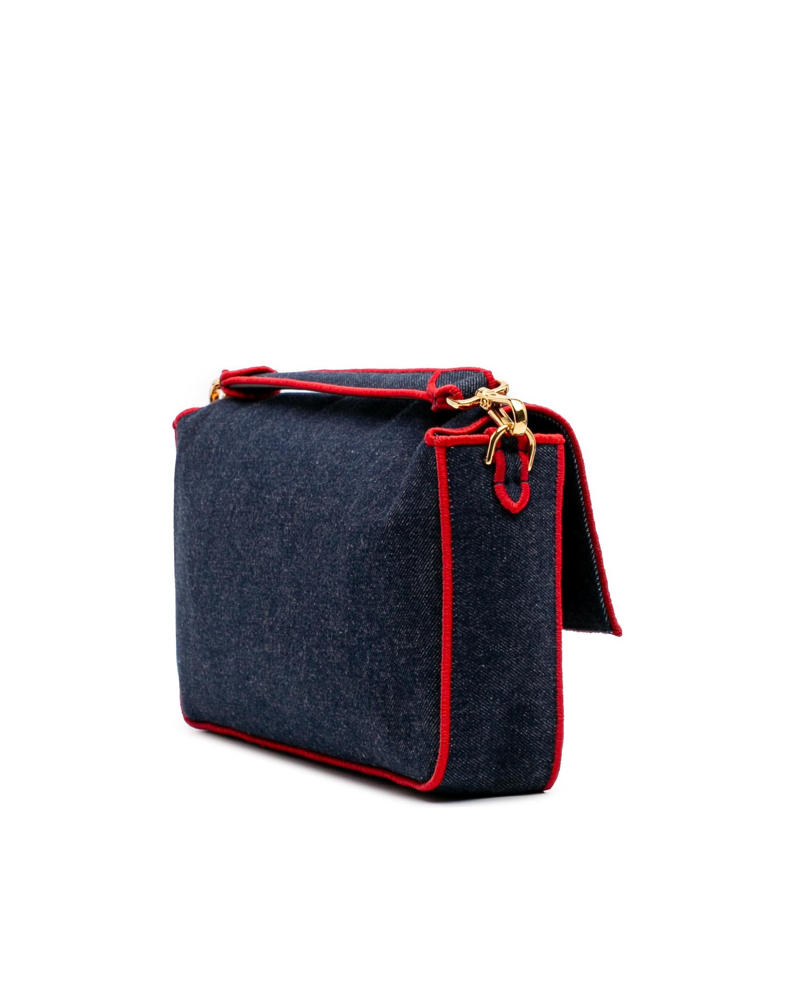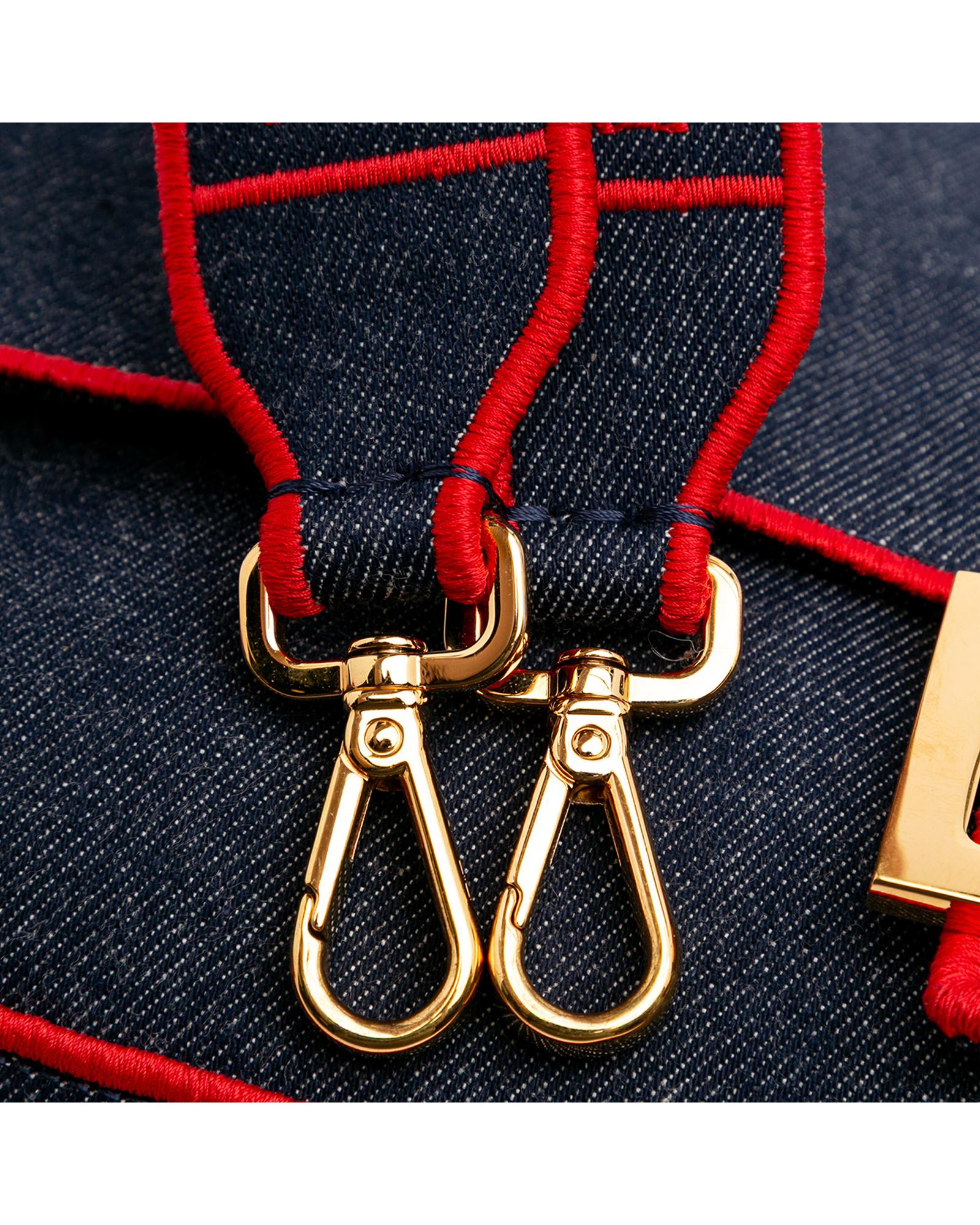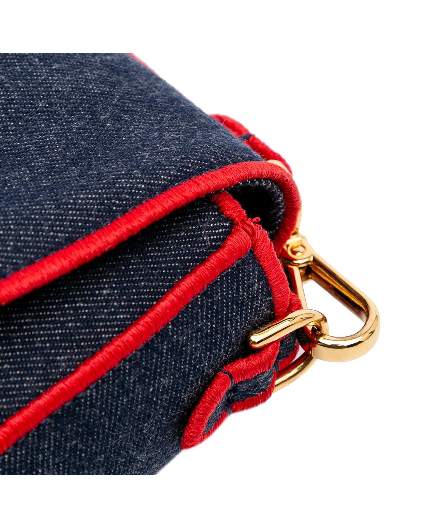 This satchel features a denim body a detachable flat shoulder strap a front flap with a magnetic closure and an interior zip pocket.Brand: Fendi Vintage