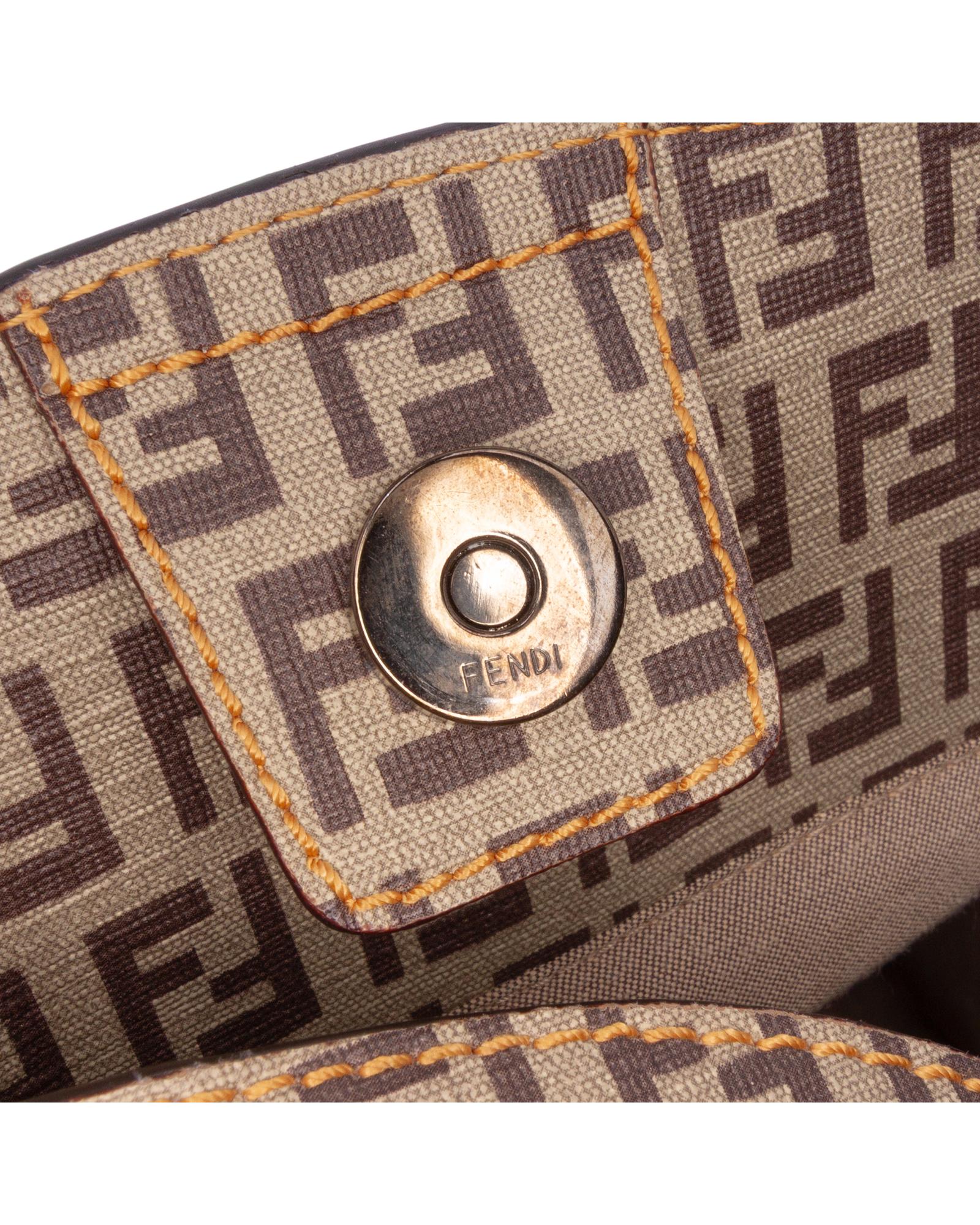 This shoulder bag features a nylon and coated canvas body flat straps an open top with magnetic snap closure and an interior zip pocket.