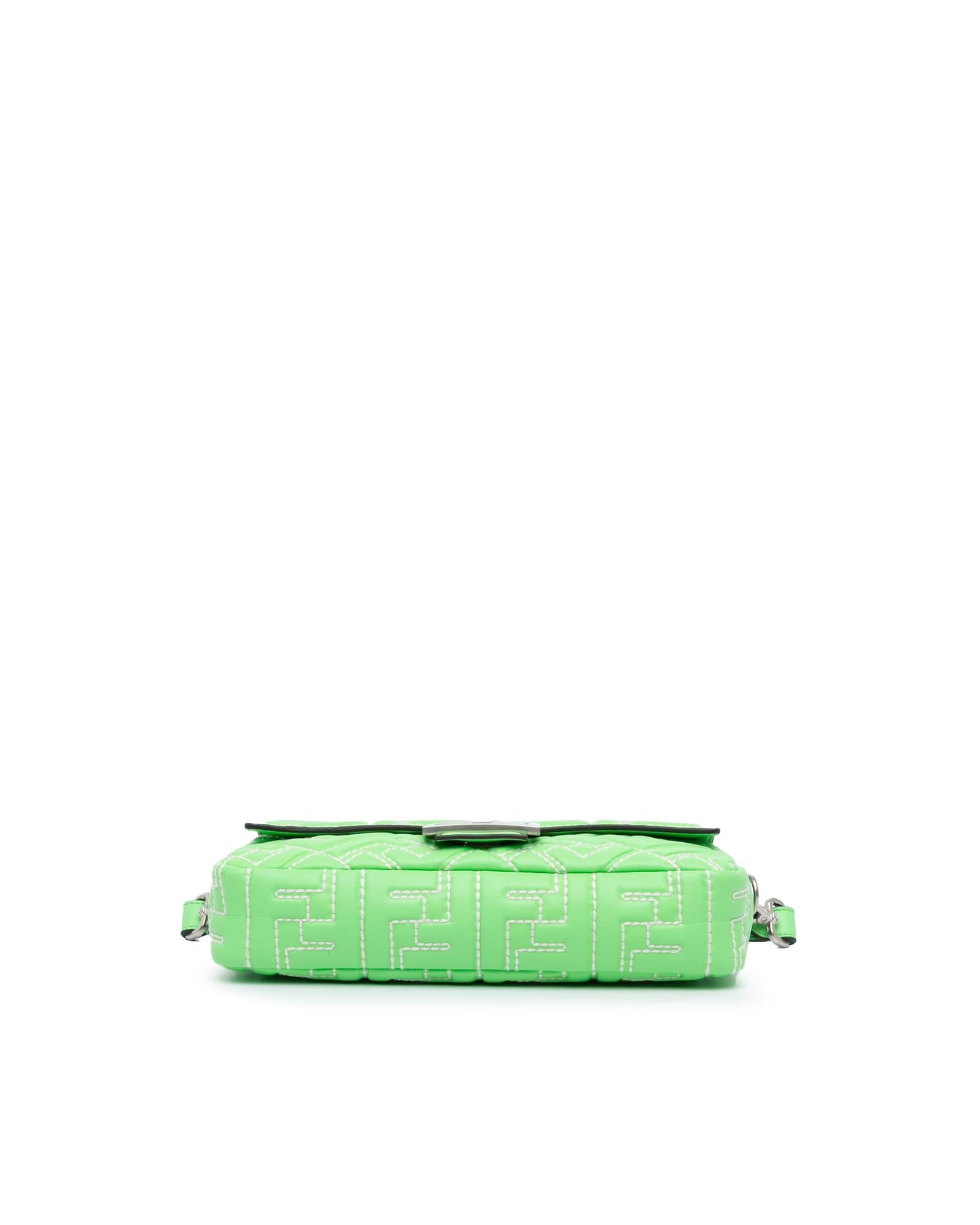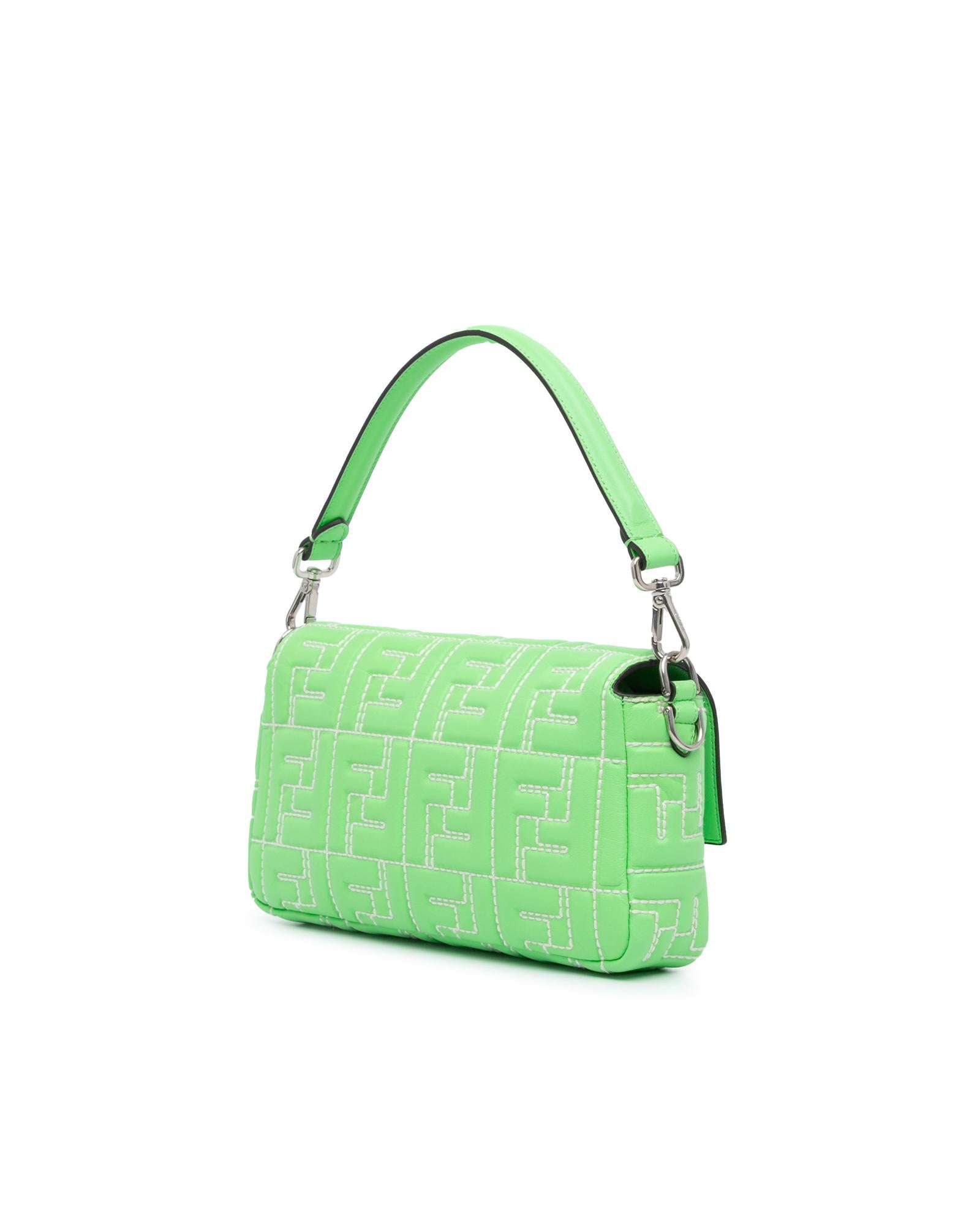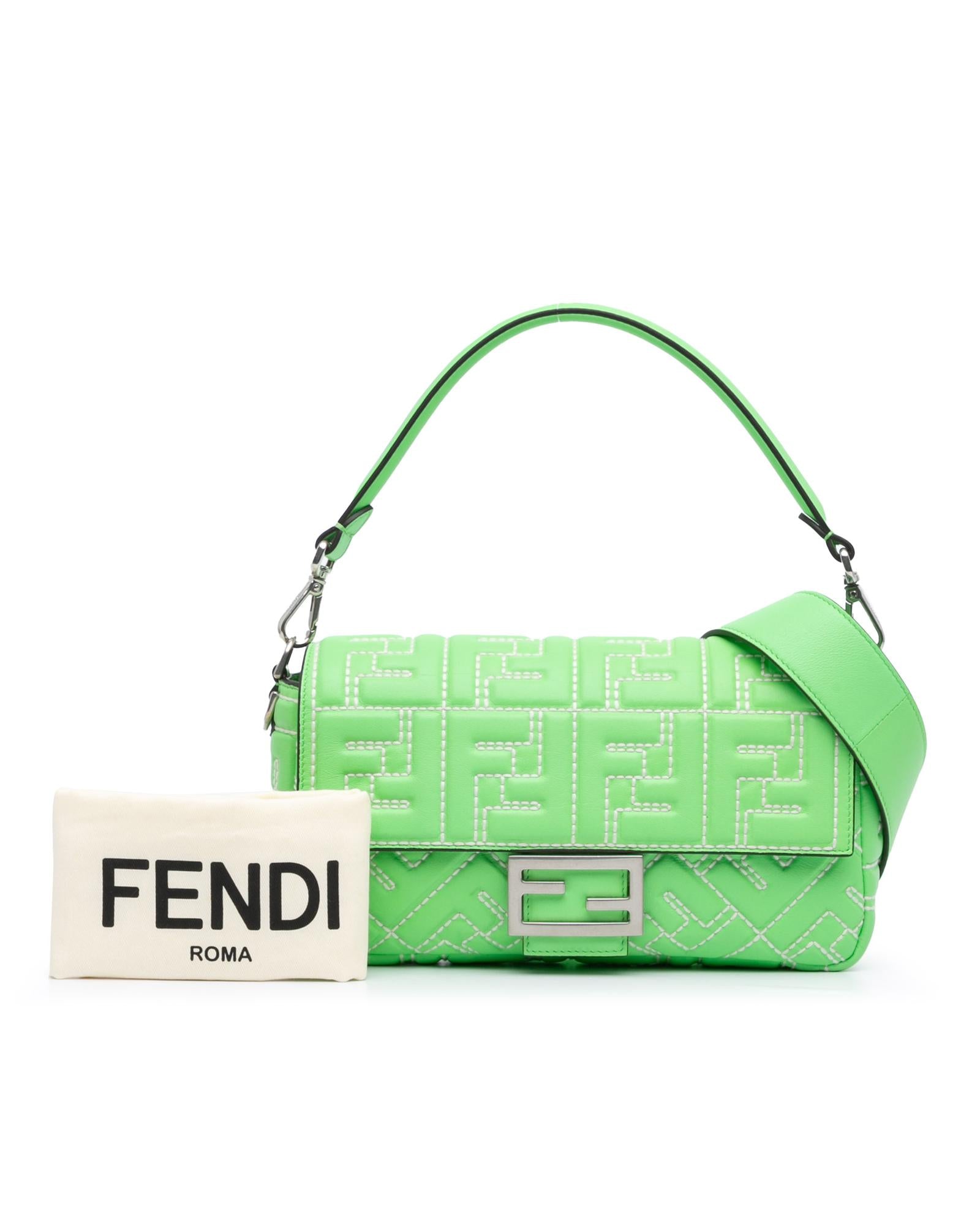 This satchel features an embossed leather body a flat leather handle a detachable strap a front flap with magnetic snap button closure and an interior zip pocket.