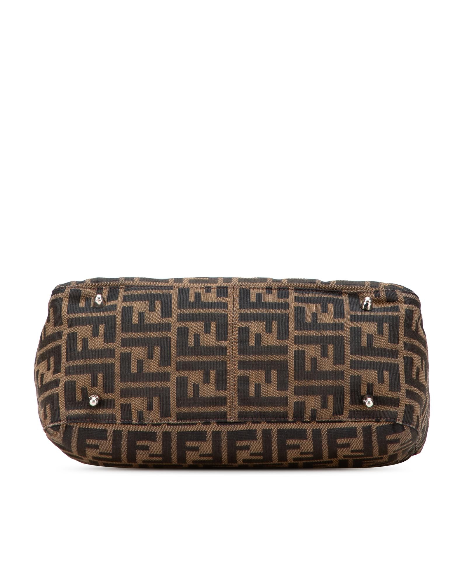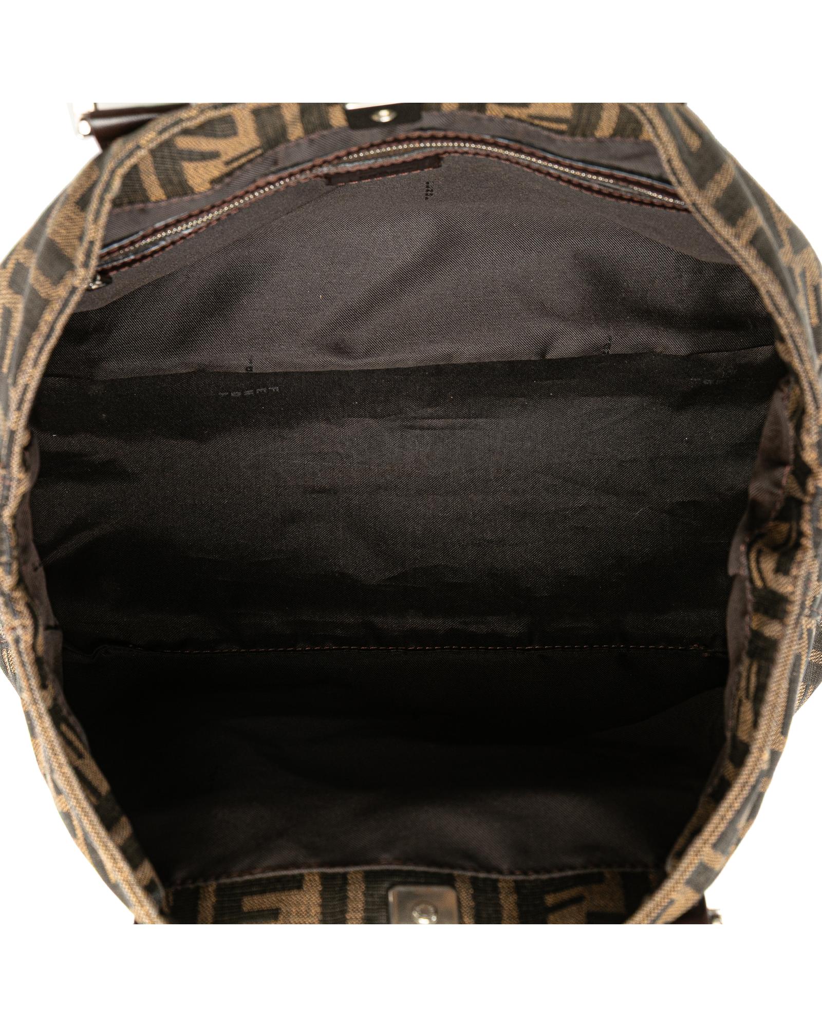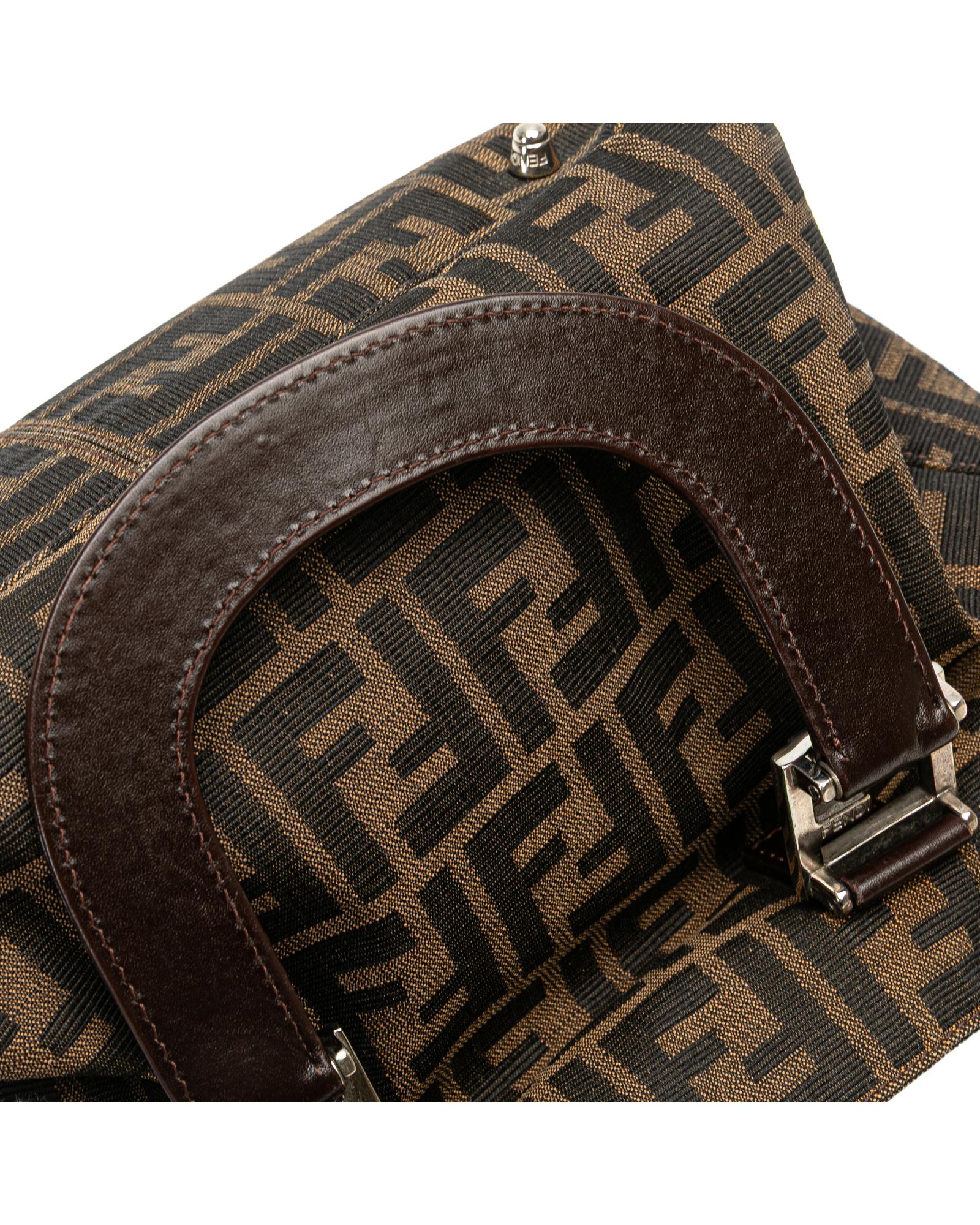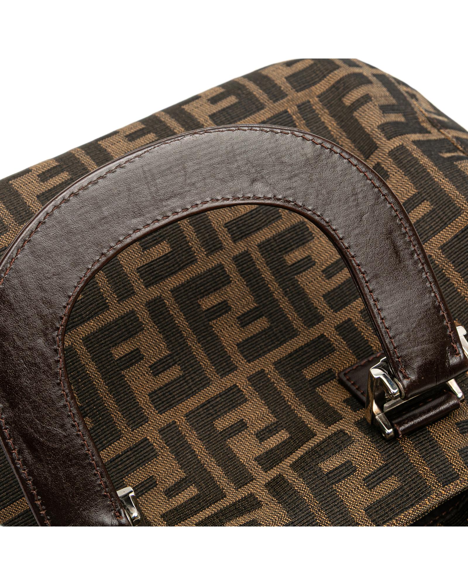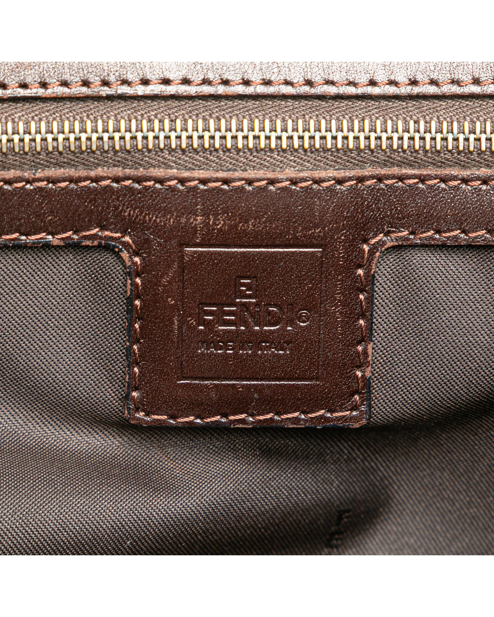 This tote features a canvas body flat leather top handles an open top with magnetic closure and an interior zip pocket.Brand: Fendi Vintage