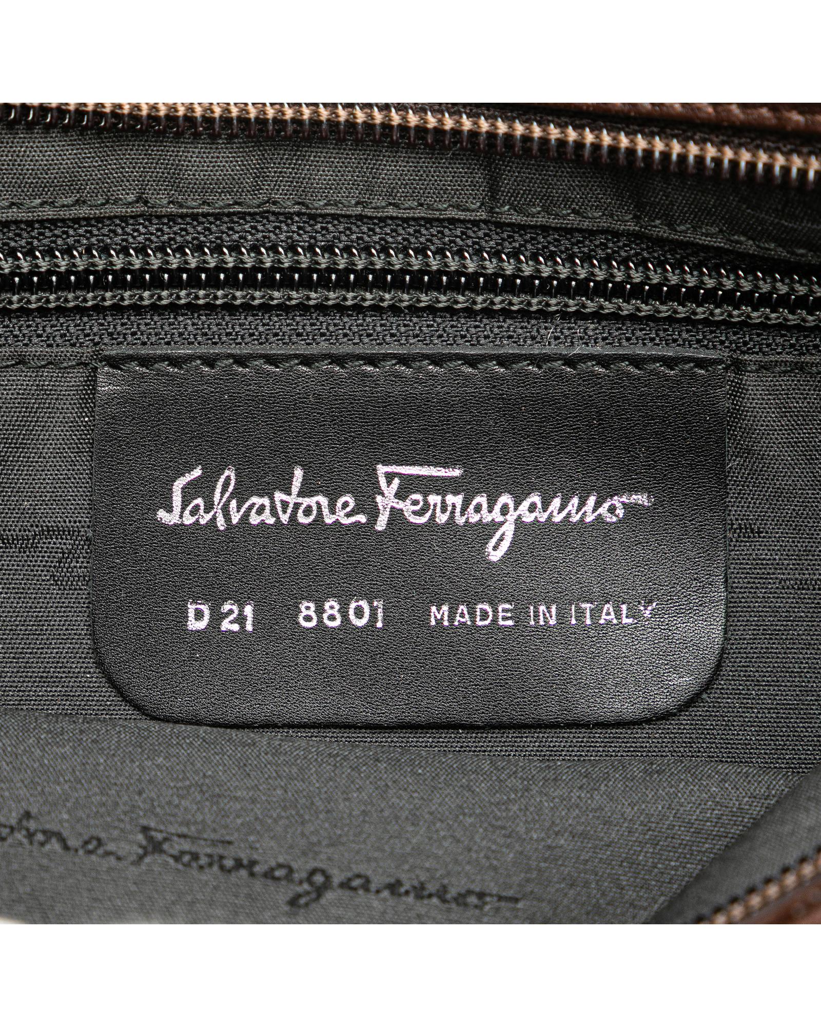 This shoulder bag features a nylon body a nylon woven buckle strap a top zip closure and an interior zip pocket.Brand: Ferragamo Vintage