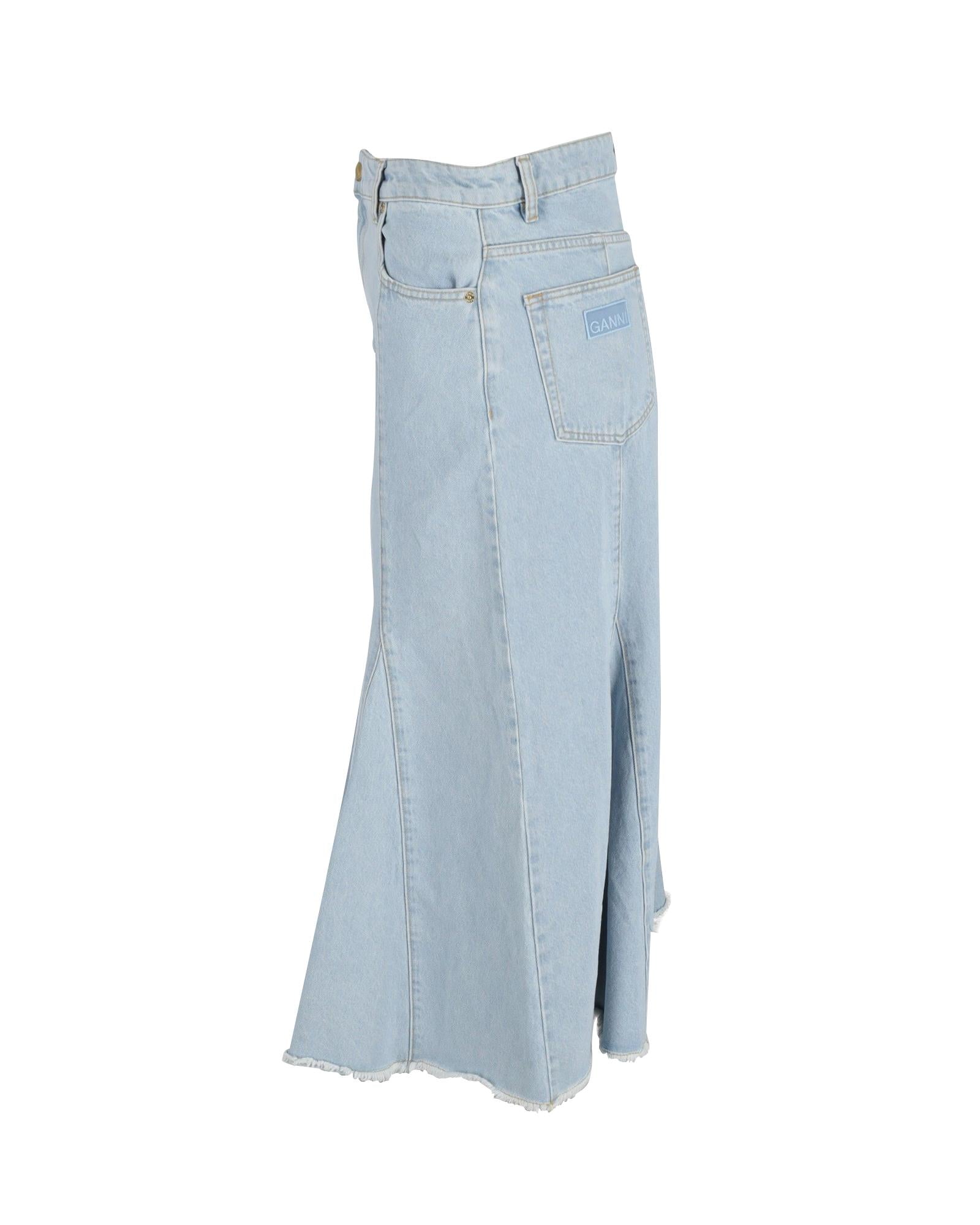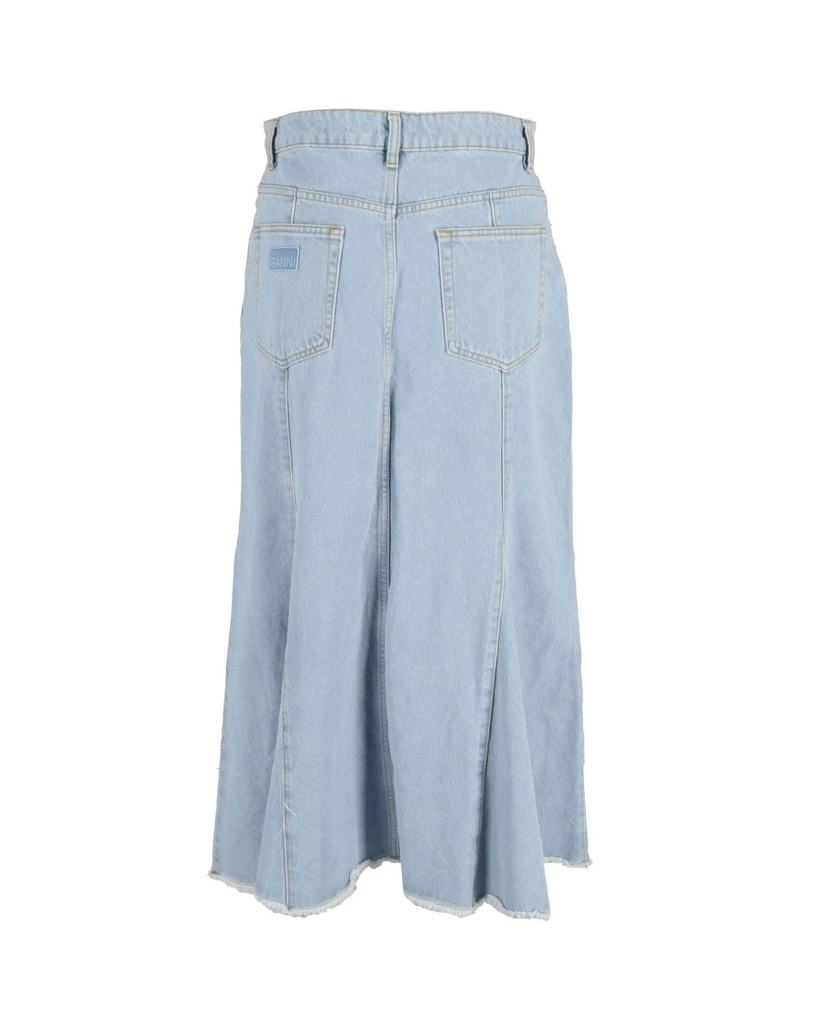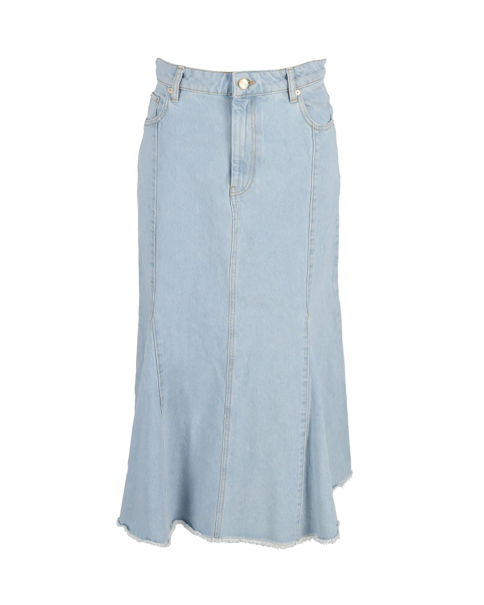 Pre-owned Denim Midi ALine Skirt Raw Hem