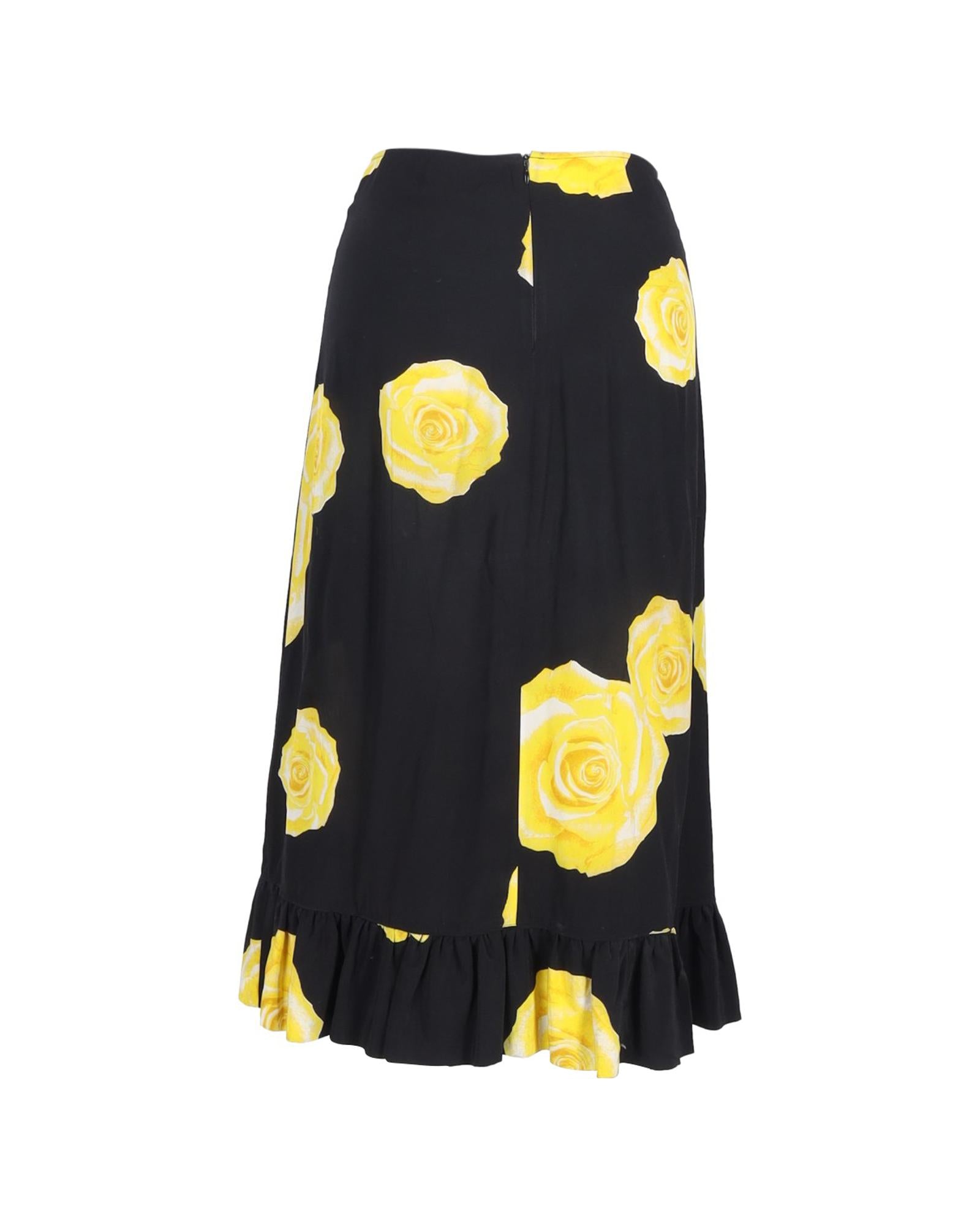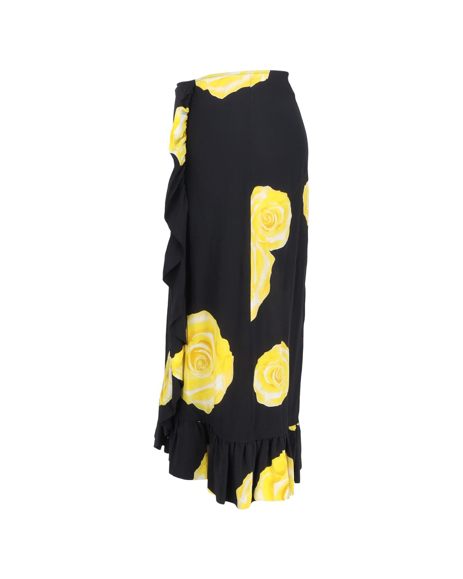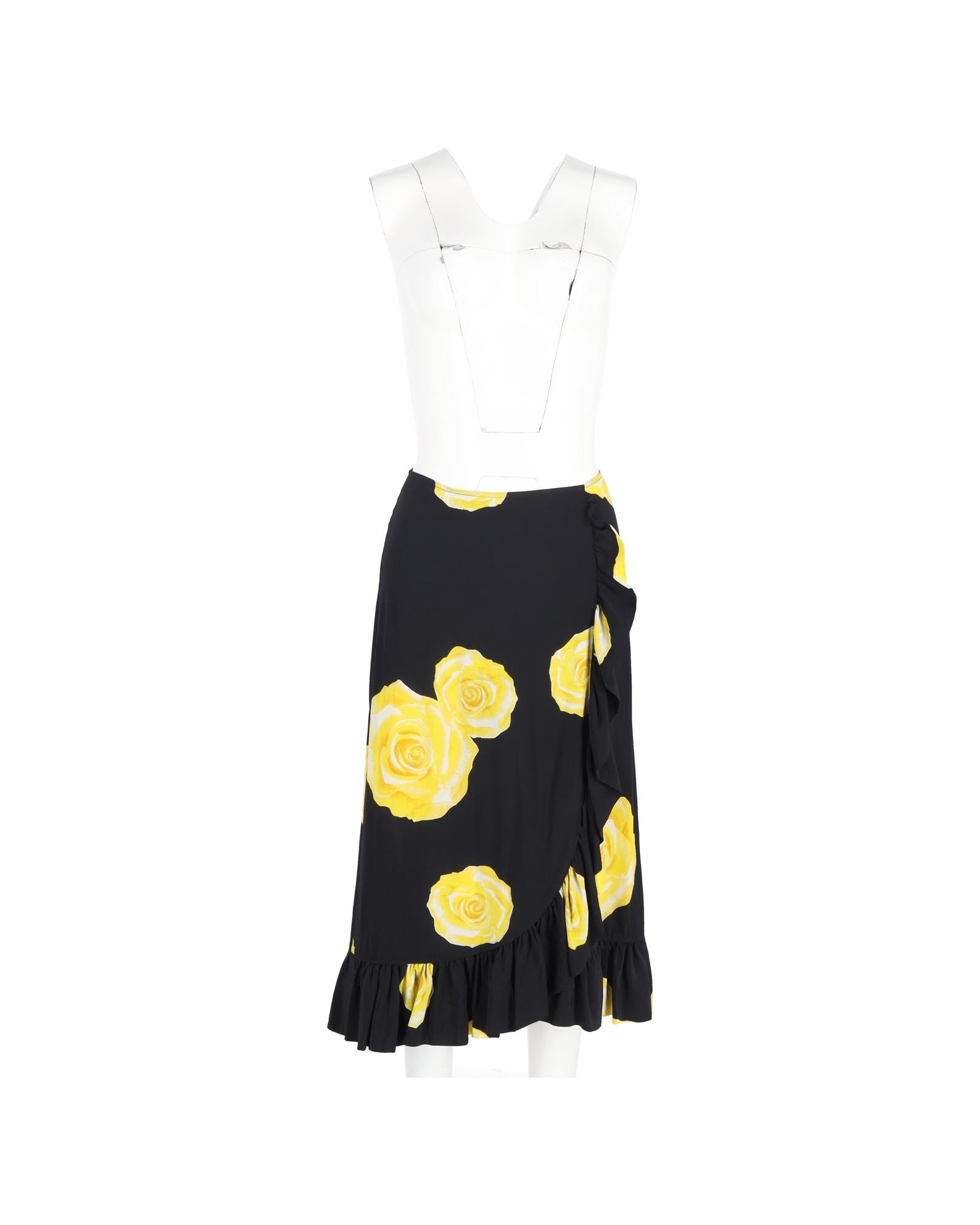 • Ganni Floral Printed Midi Ruffled Skirt in Black Silk