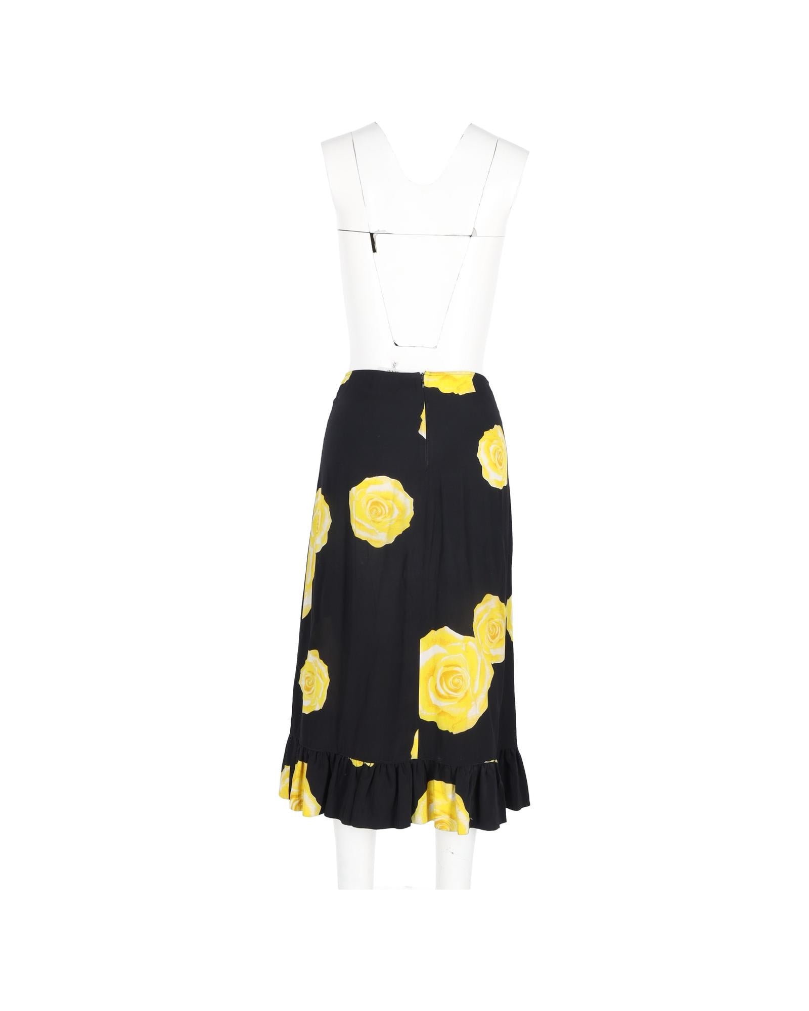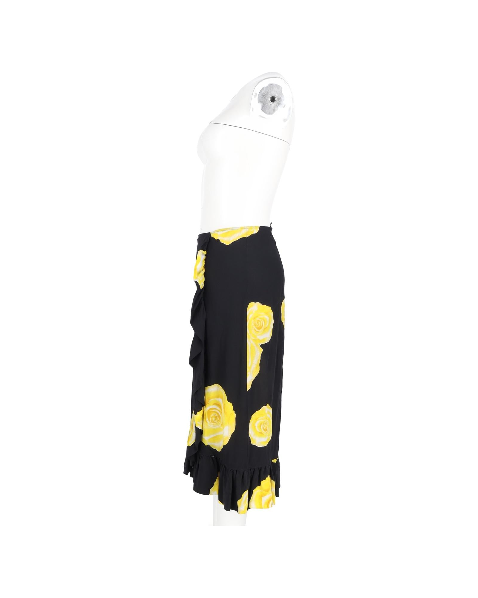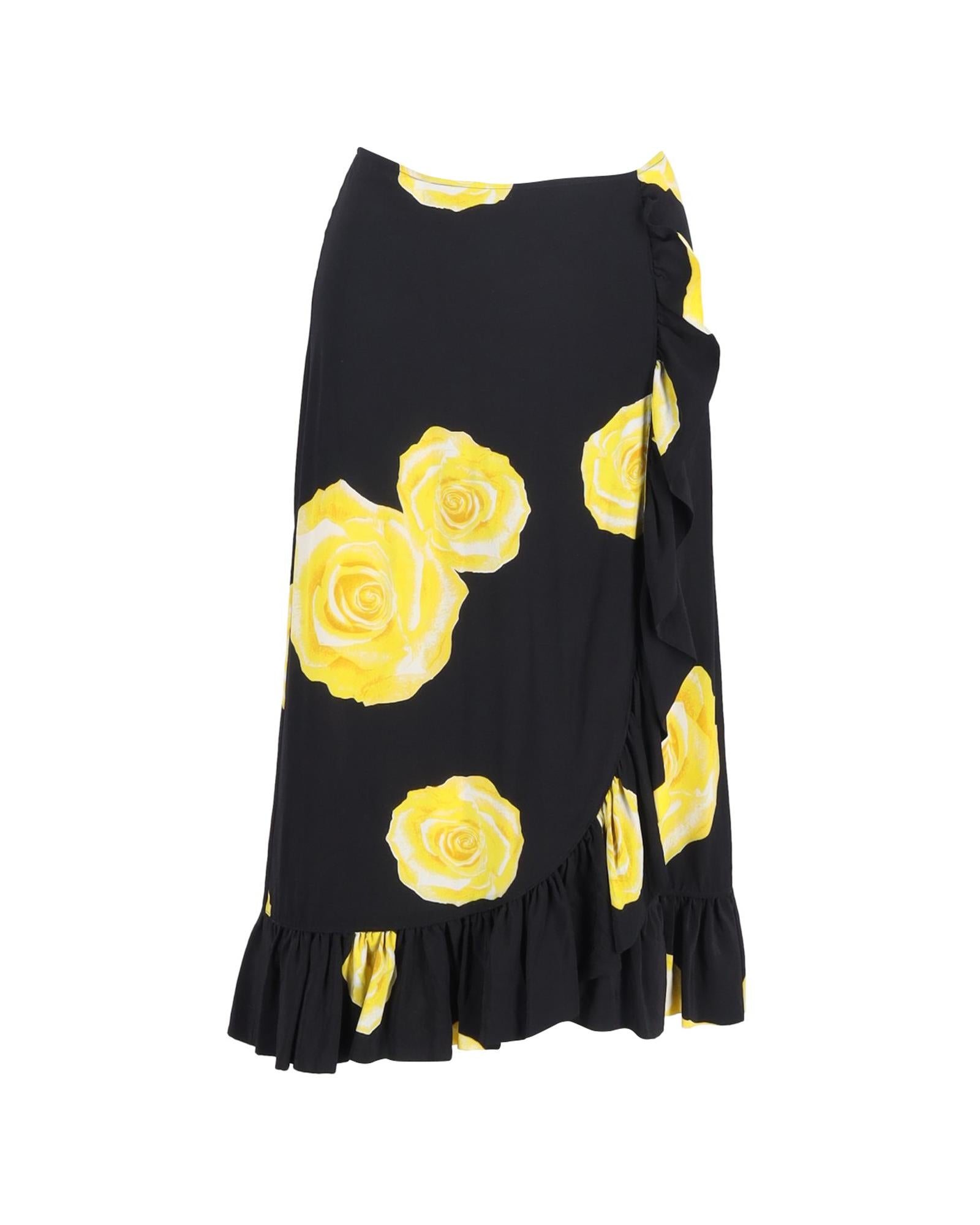 • Ganni Floral Printed Midi Ruffled Skirt in Black Silk