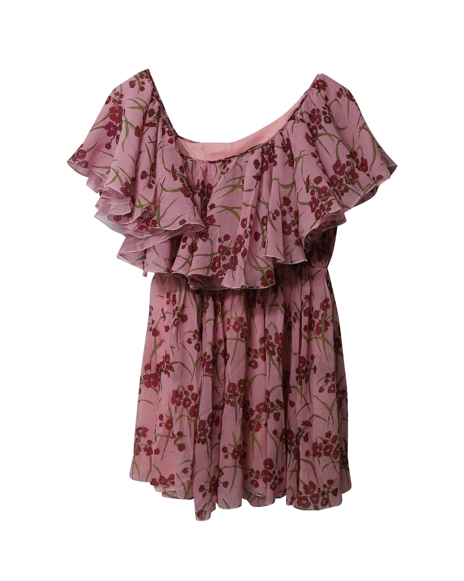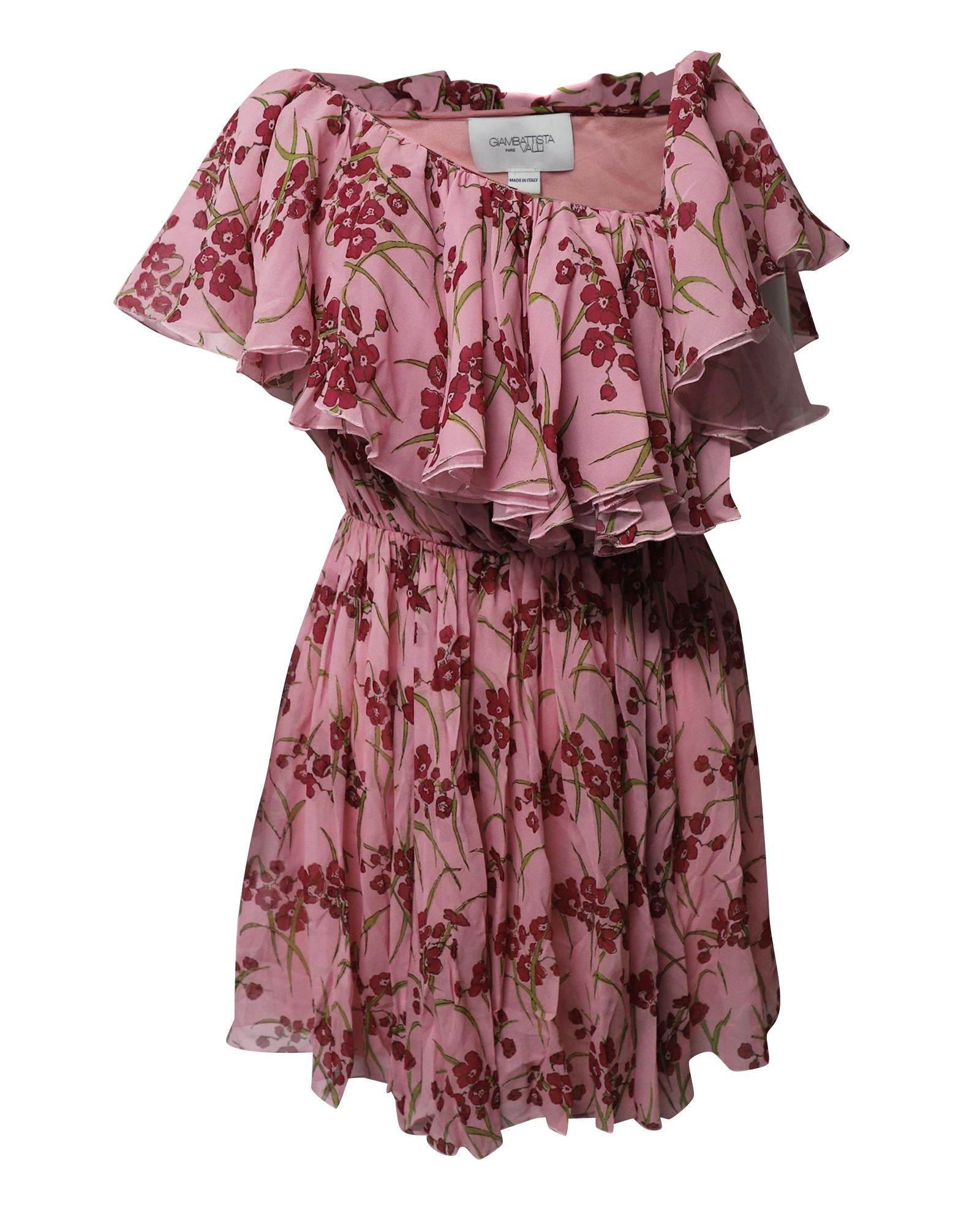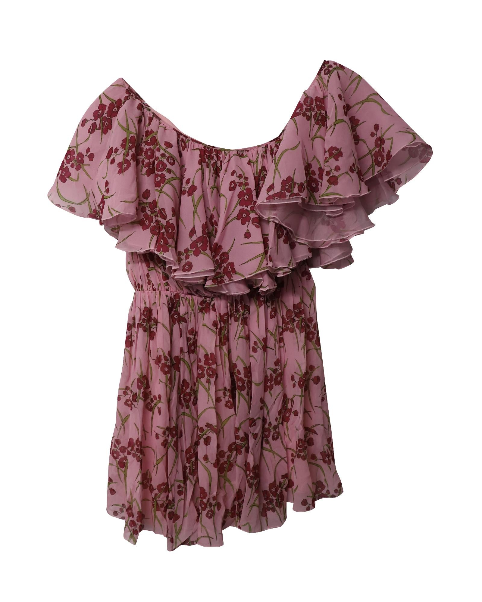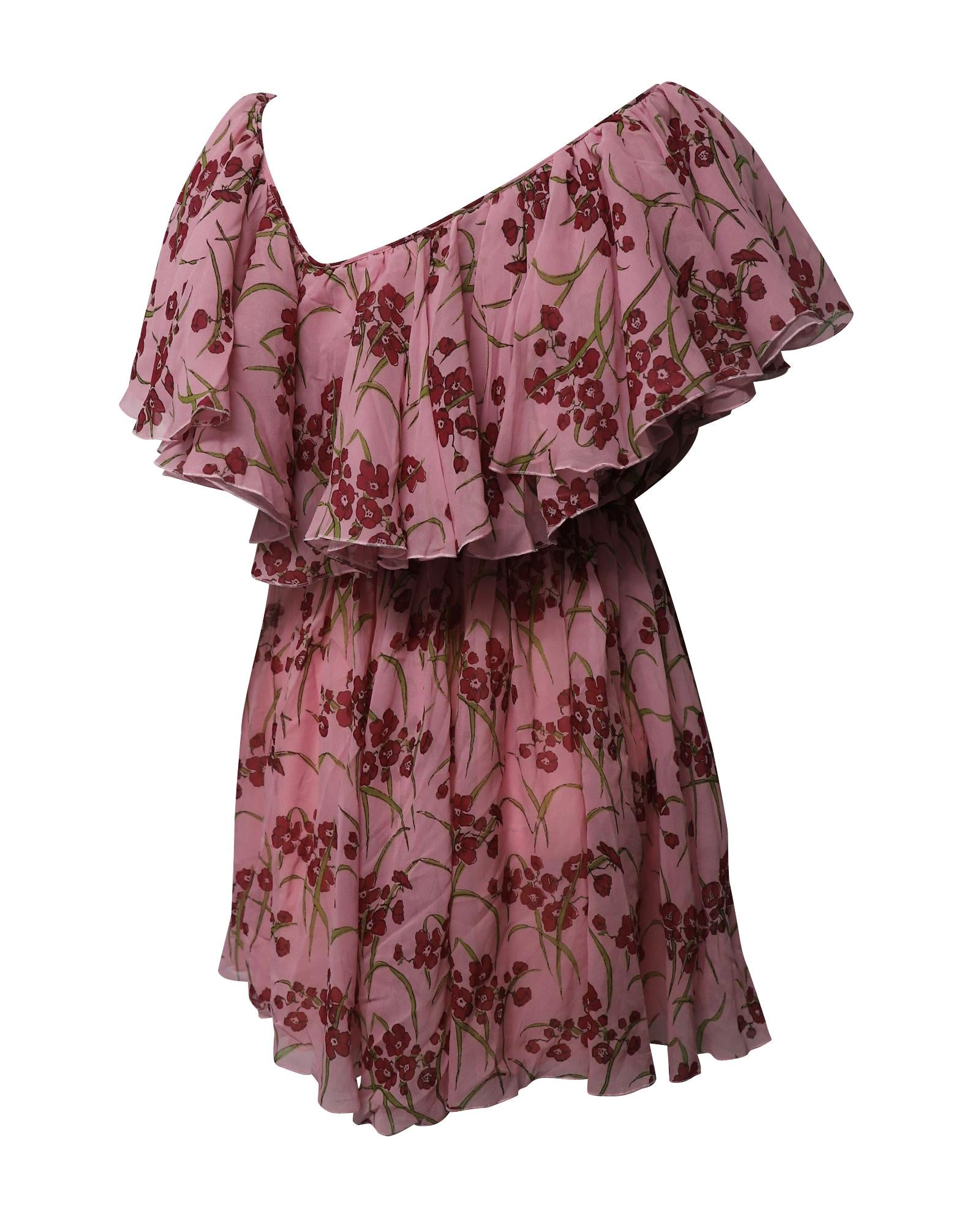 - Giambattista Valli One Shoulder Mini Dress in Floral Print Silk