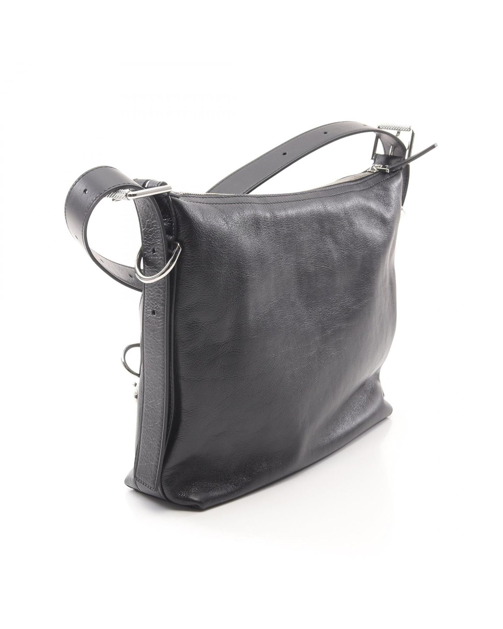 Pre-owned Leather Shoulder Bag with Adjustable Strap and Buckle Details