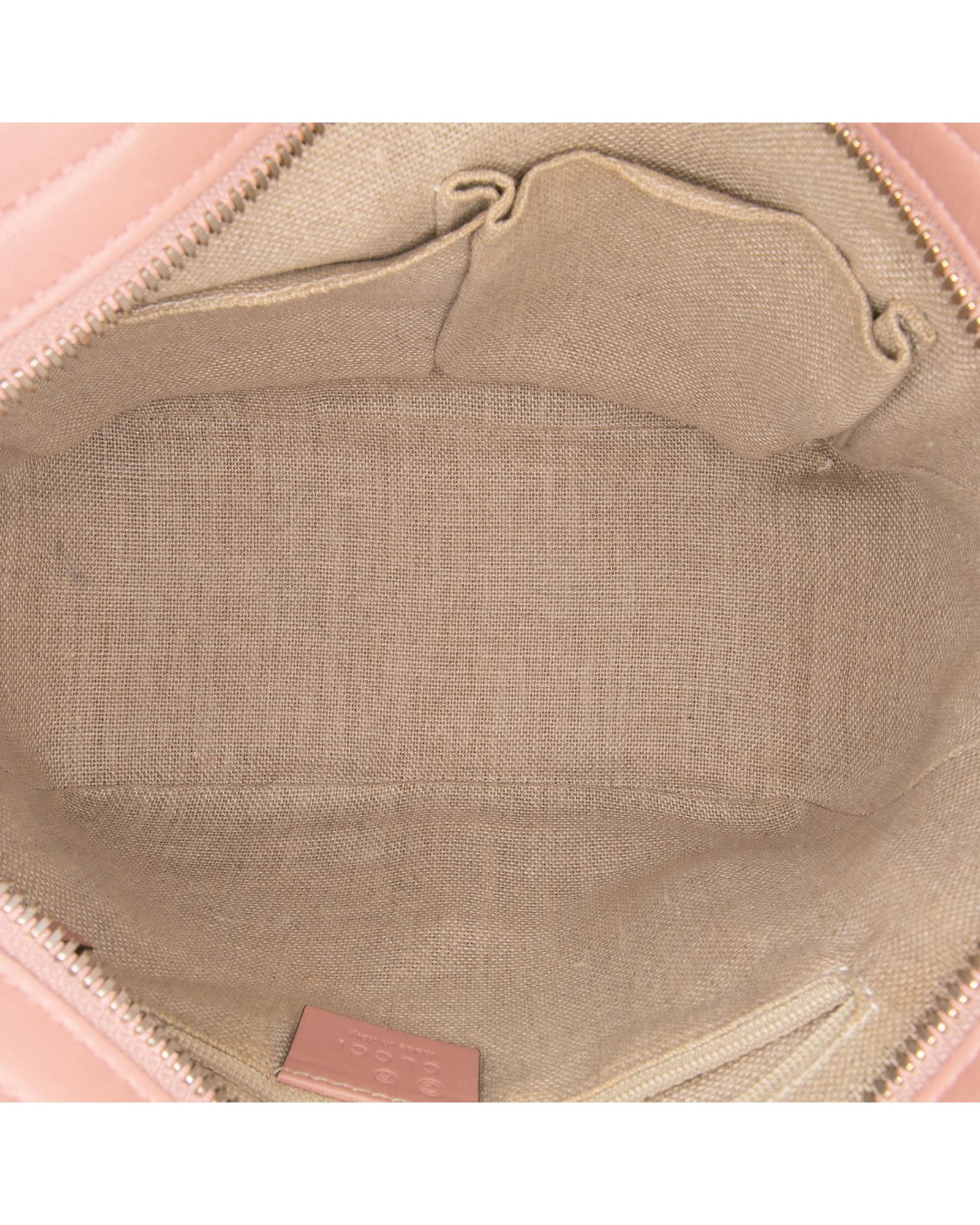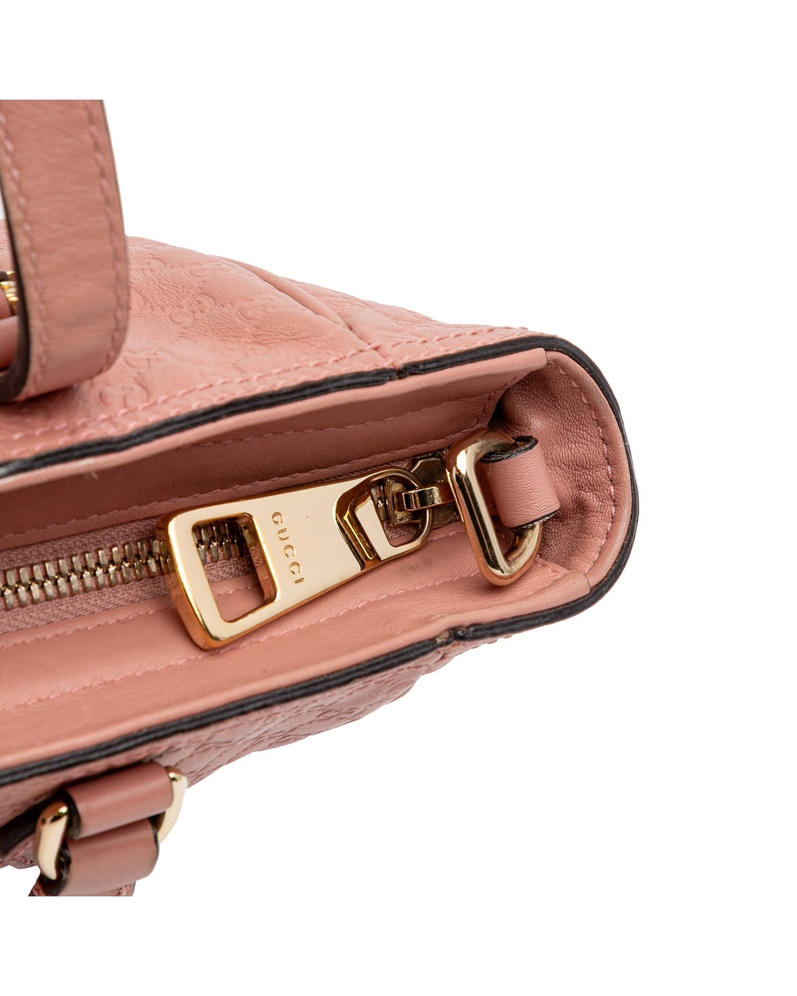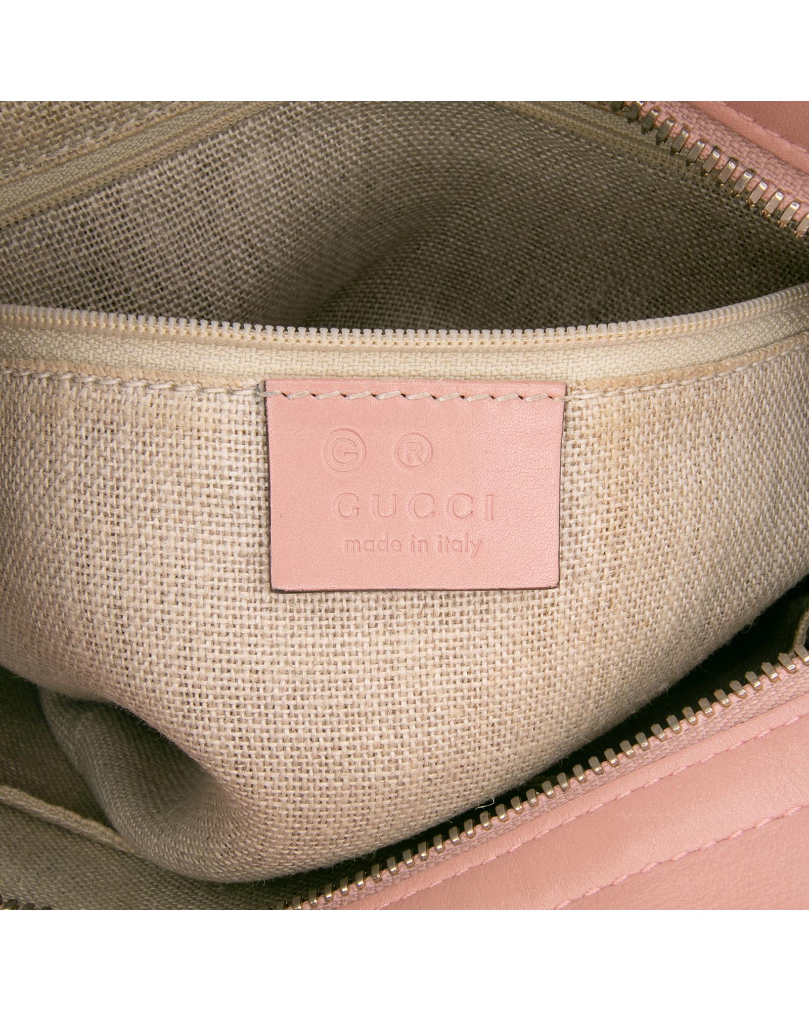 The Bree features an embossed leather body flat leather handles a detachable flat leather strap a top zip closure and interior zip and slip pockets.Brand: Gucci Vintage