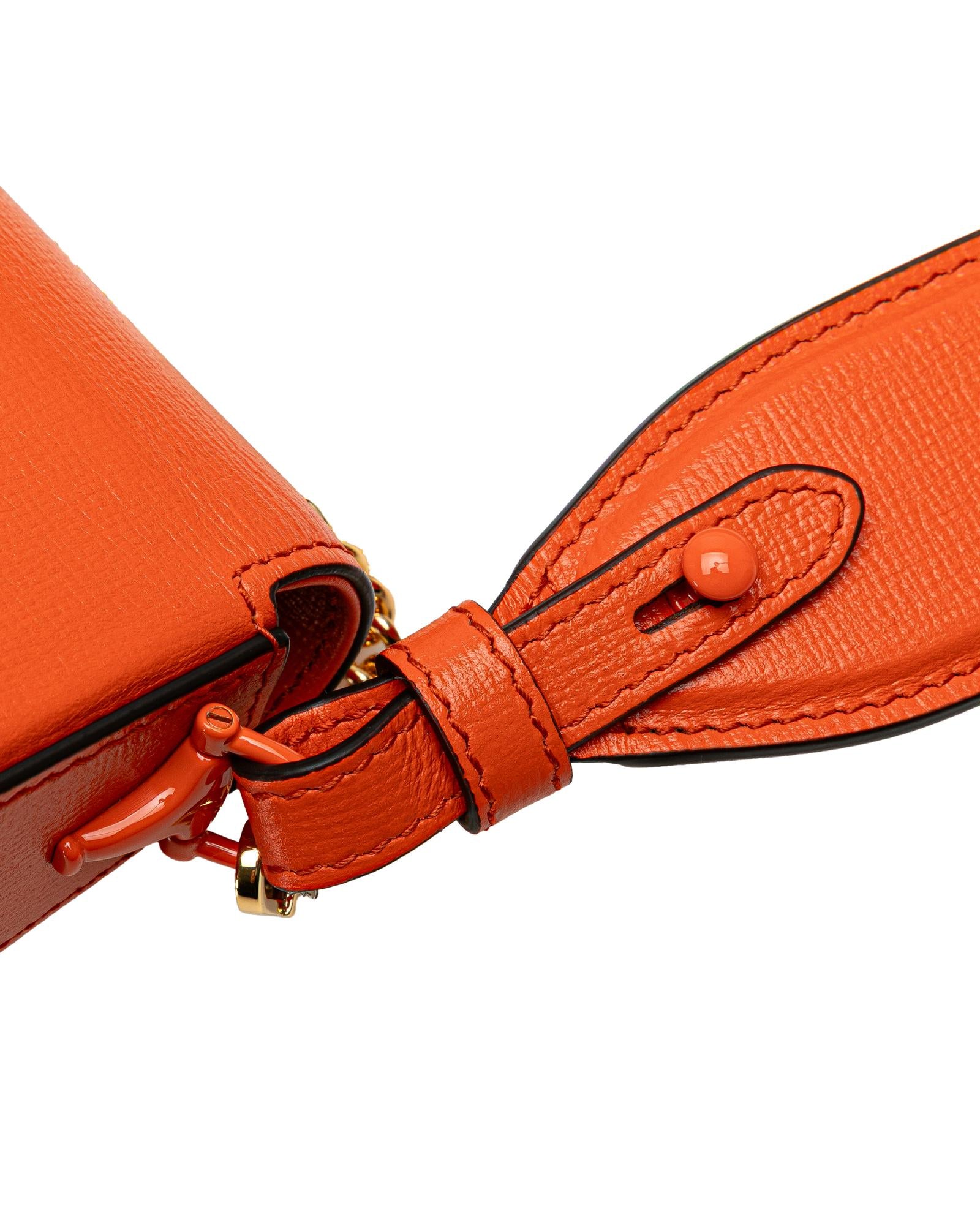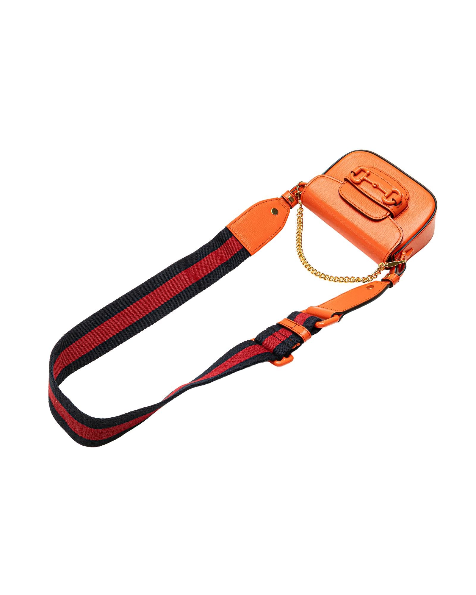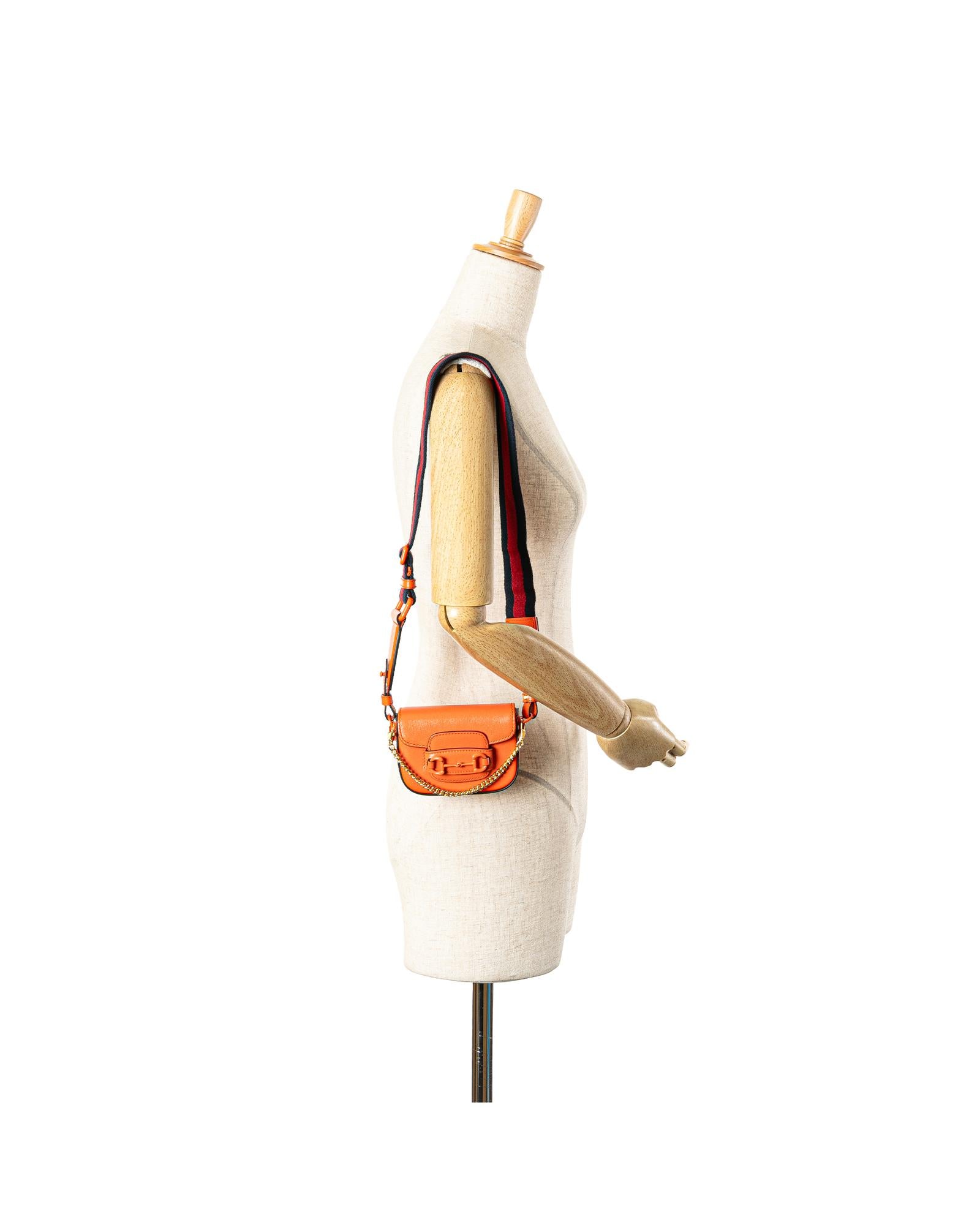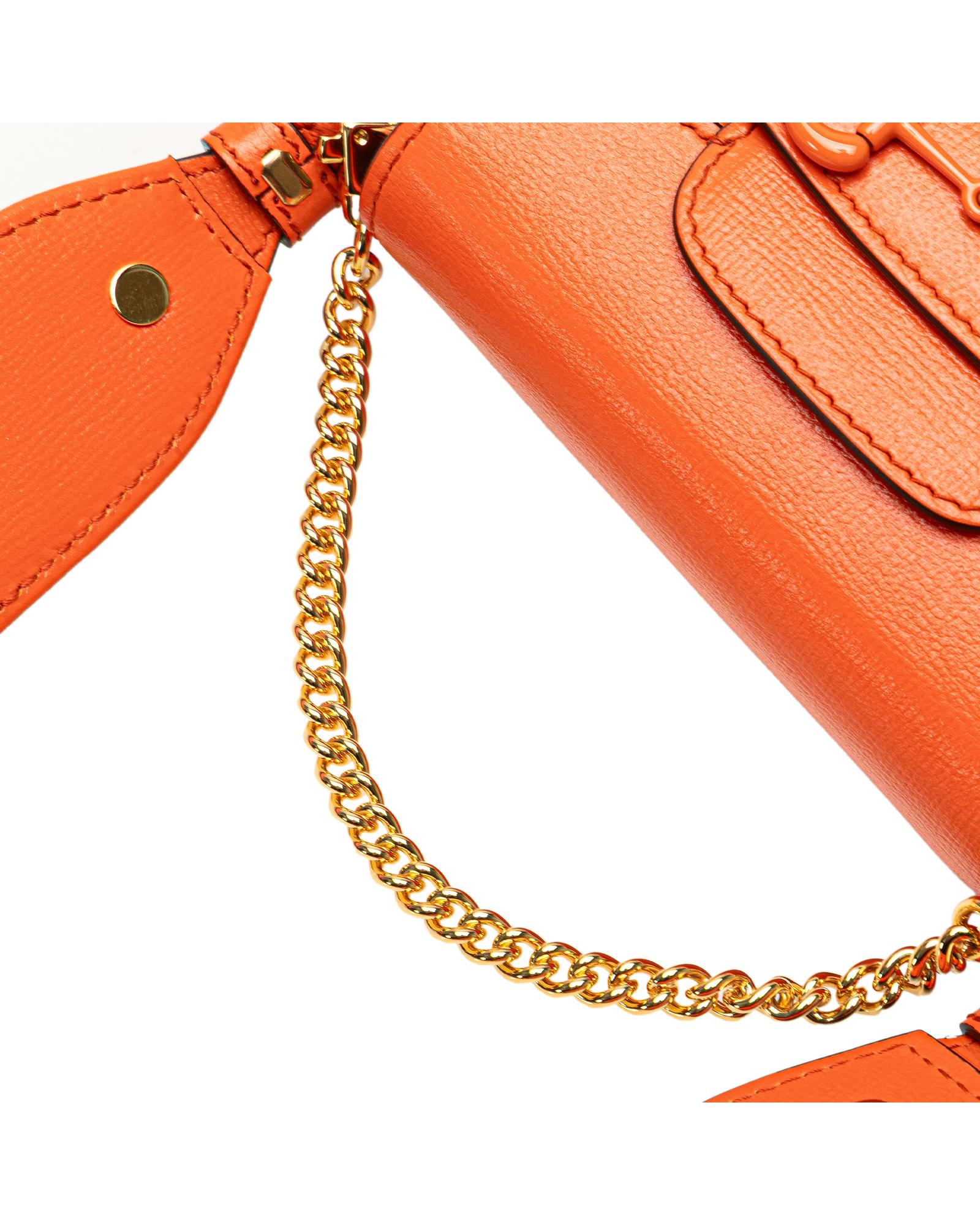 This satchel features a leather body a detachable chain link handle an adjustable flat canvas shoulder strap a front flap with a pull-through closure and an interior slip pocket.Brand: Gucci Vintage