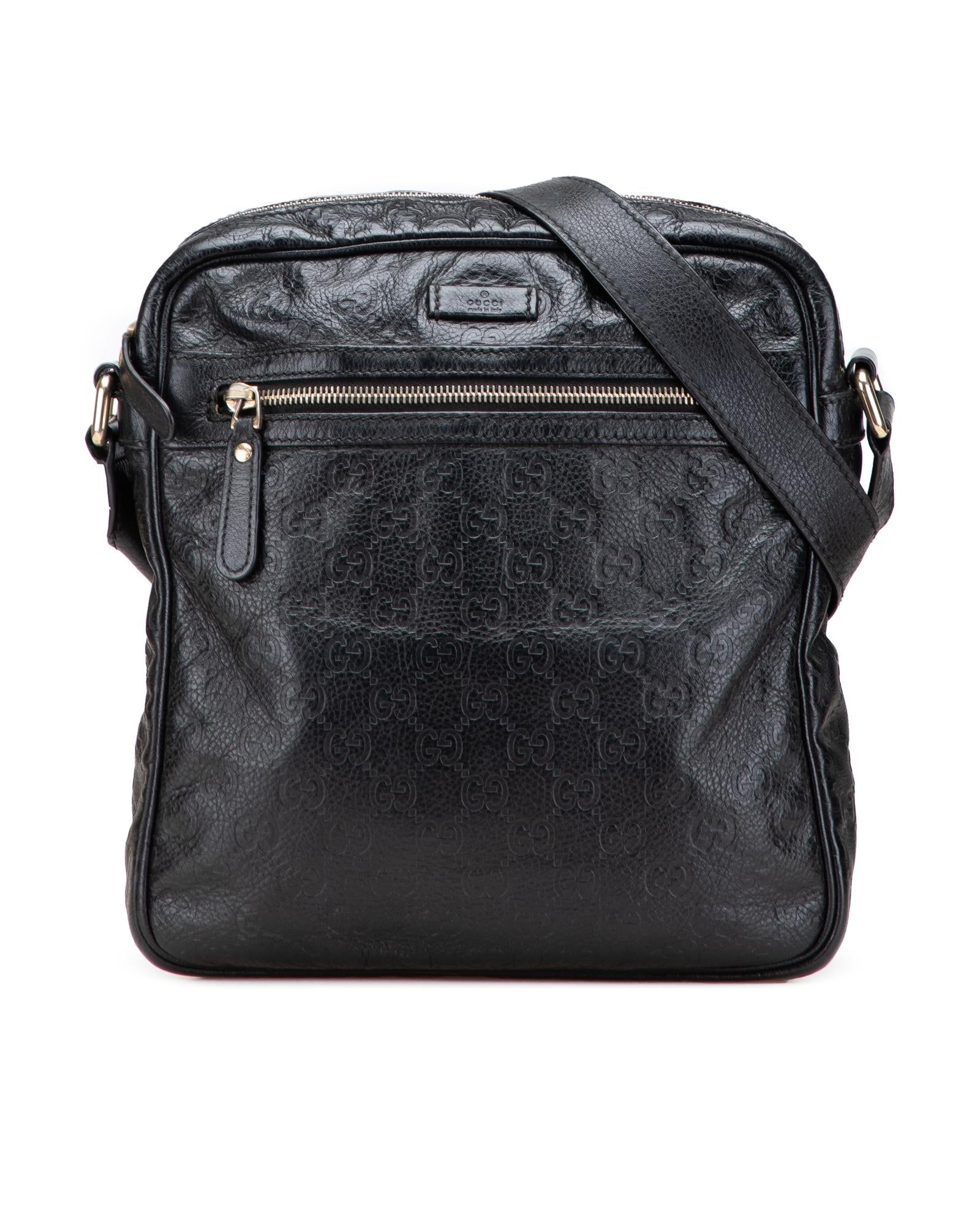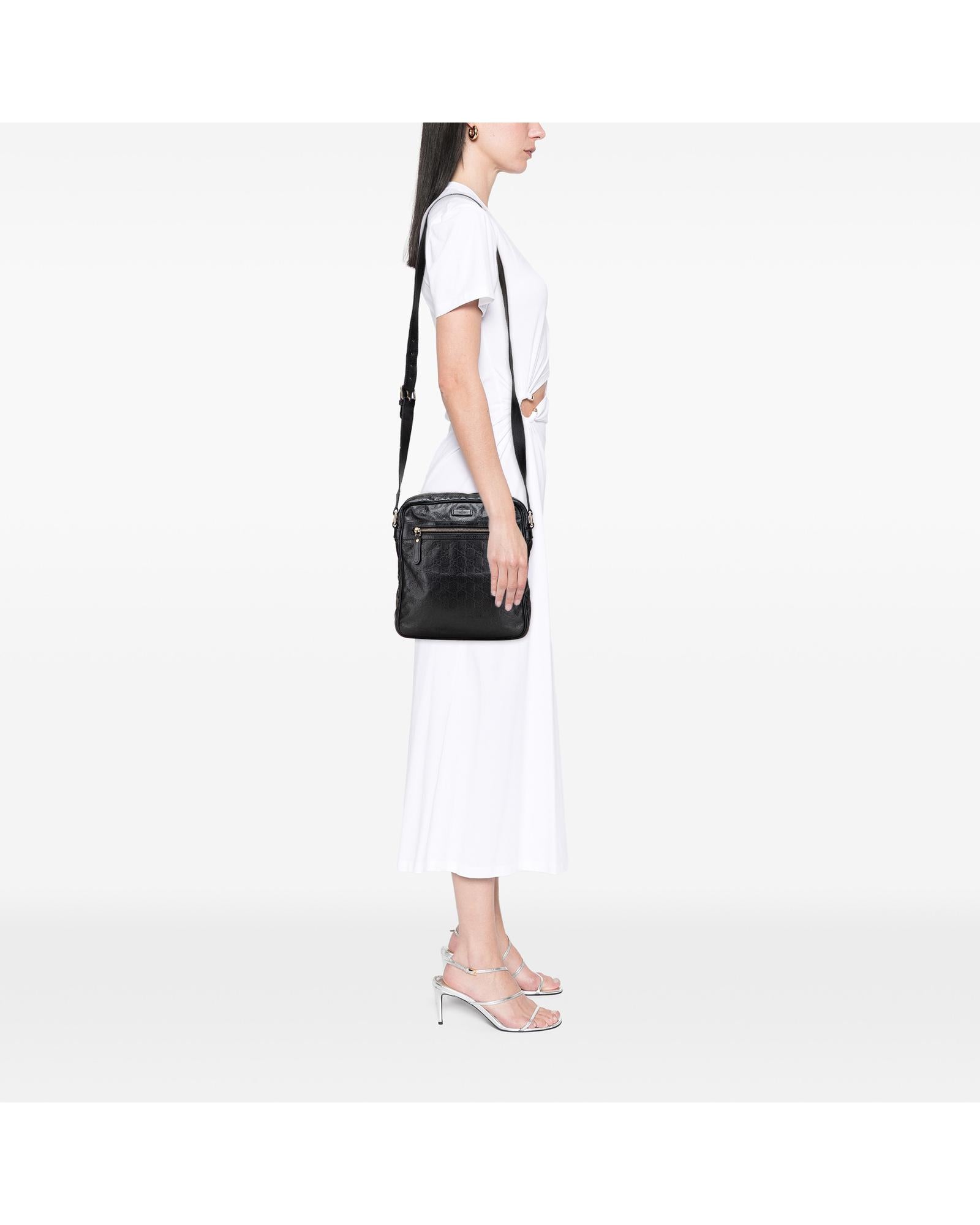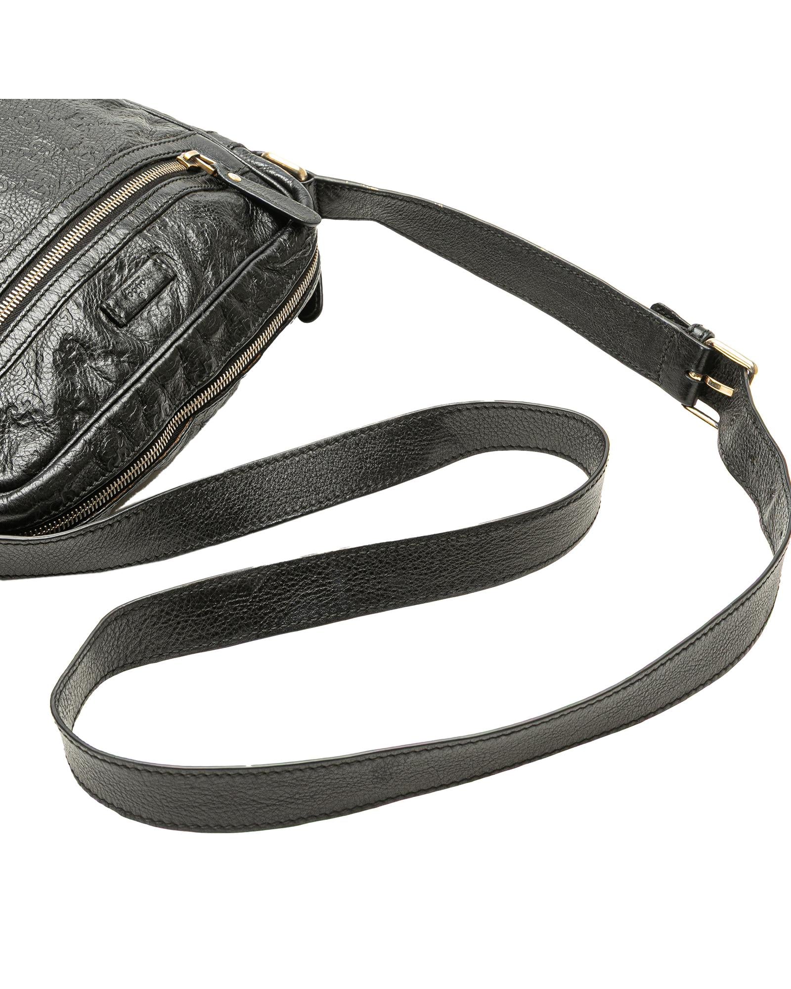 Pre-owned Stylish Embossed Leather Crossbody Bag with Adjustable Strap