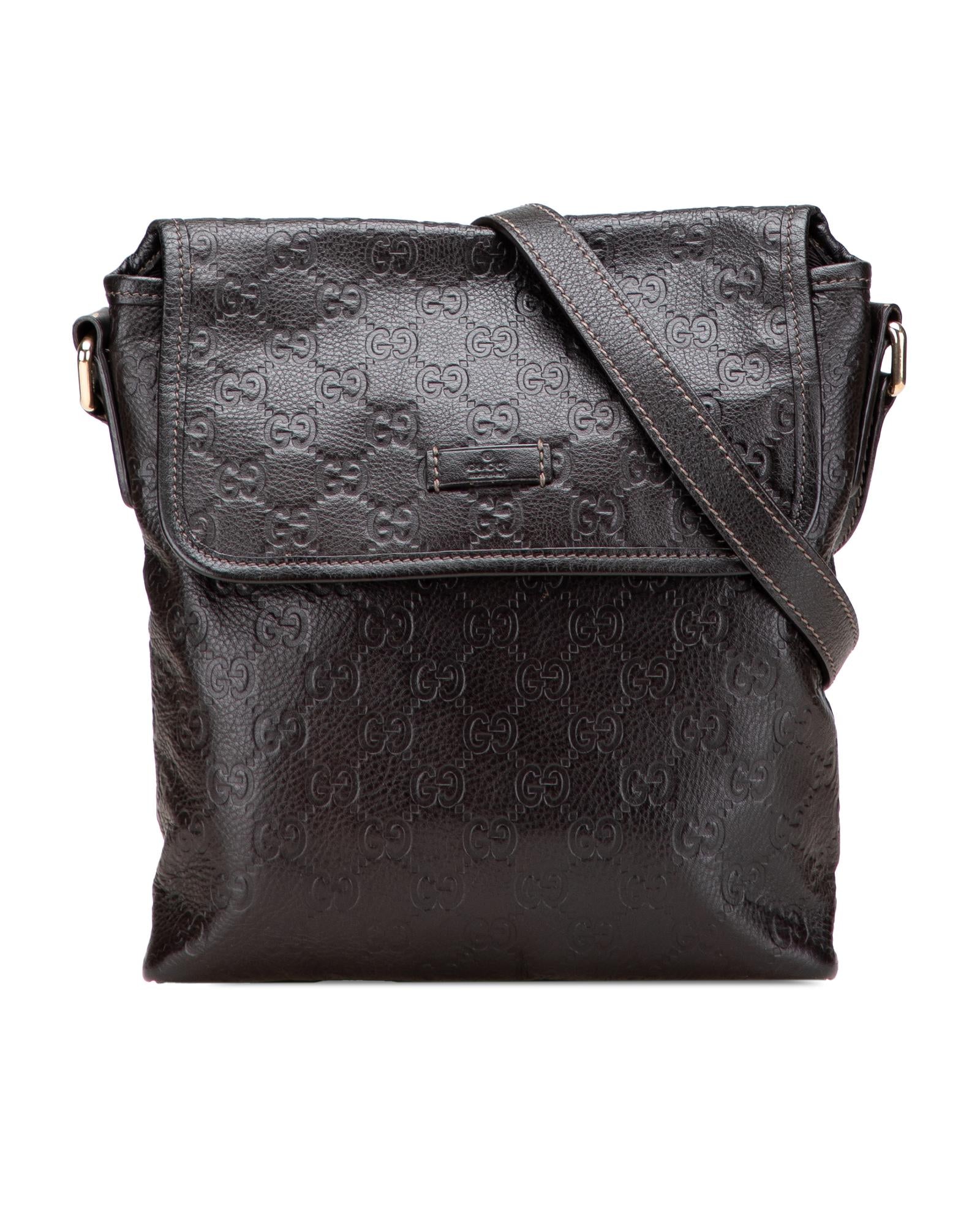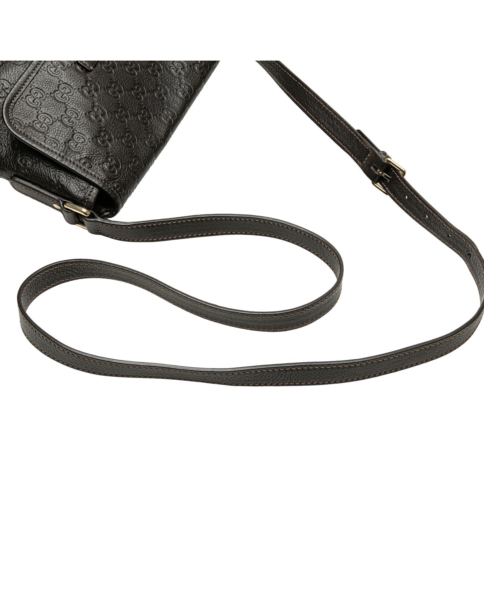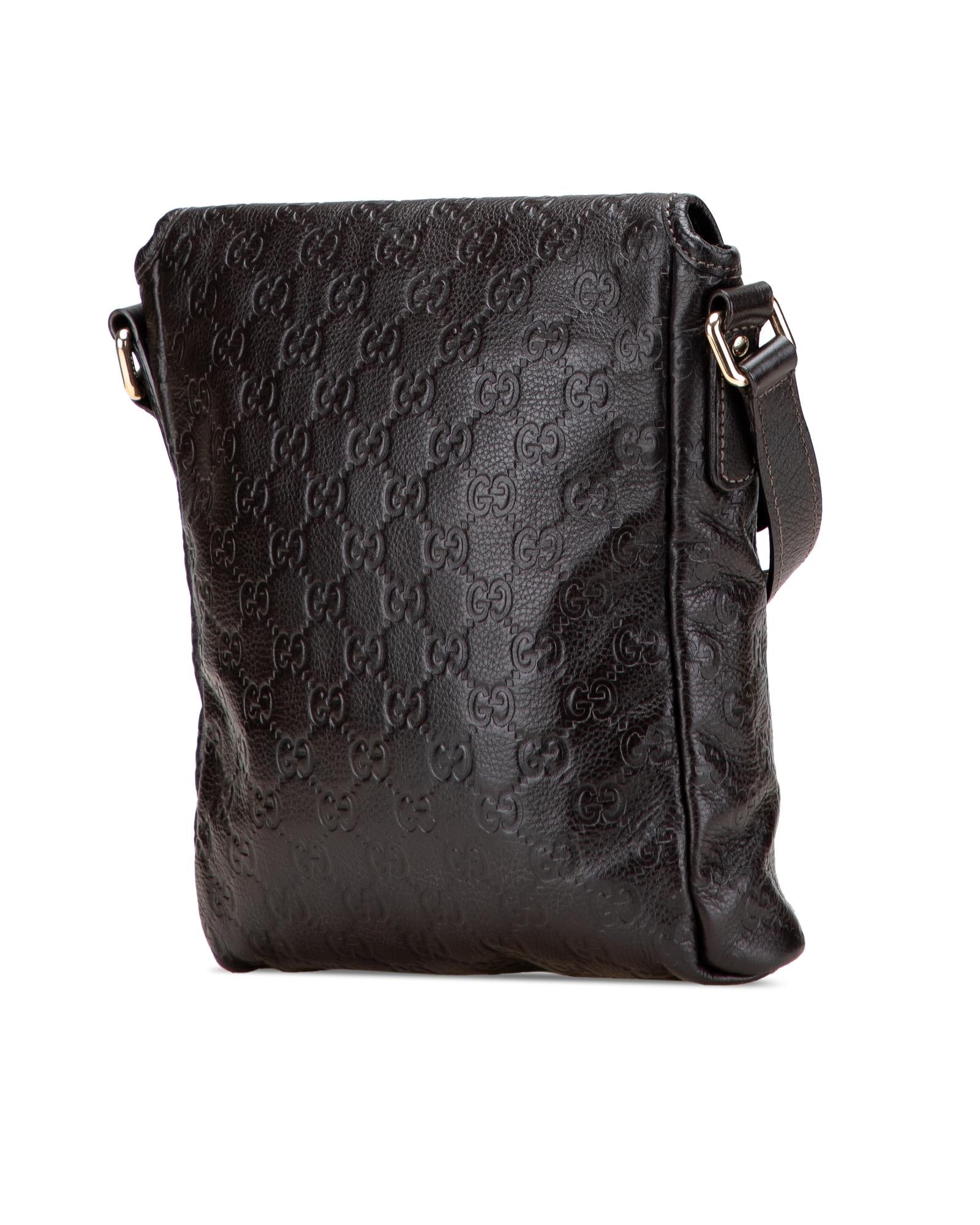 This crossbody bag features a leather body an adjustable flat shoulder strap a front flap with magnetic snap closure and an interior zip pocket.Brand: Gucci Vintage