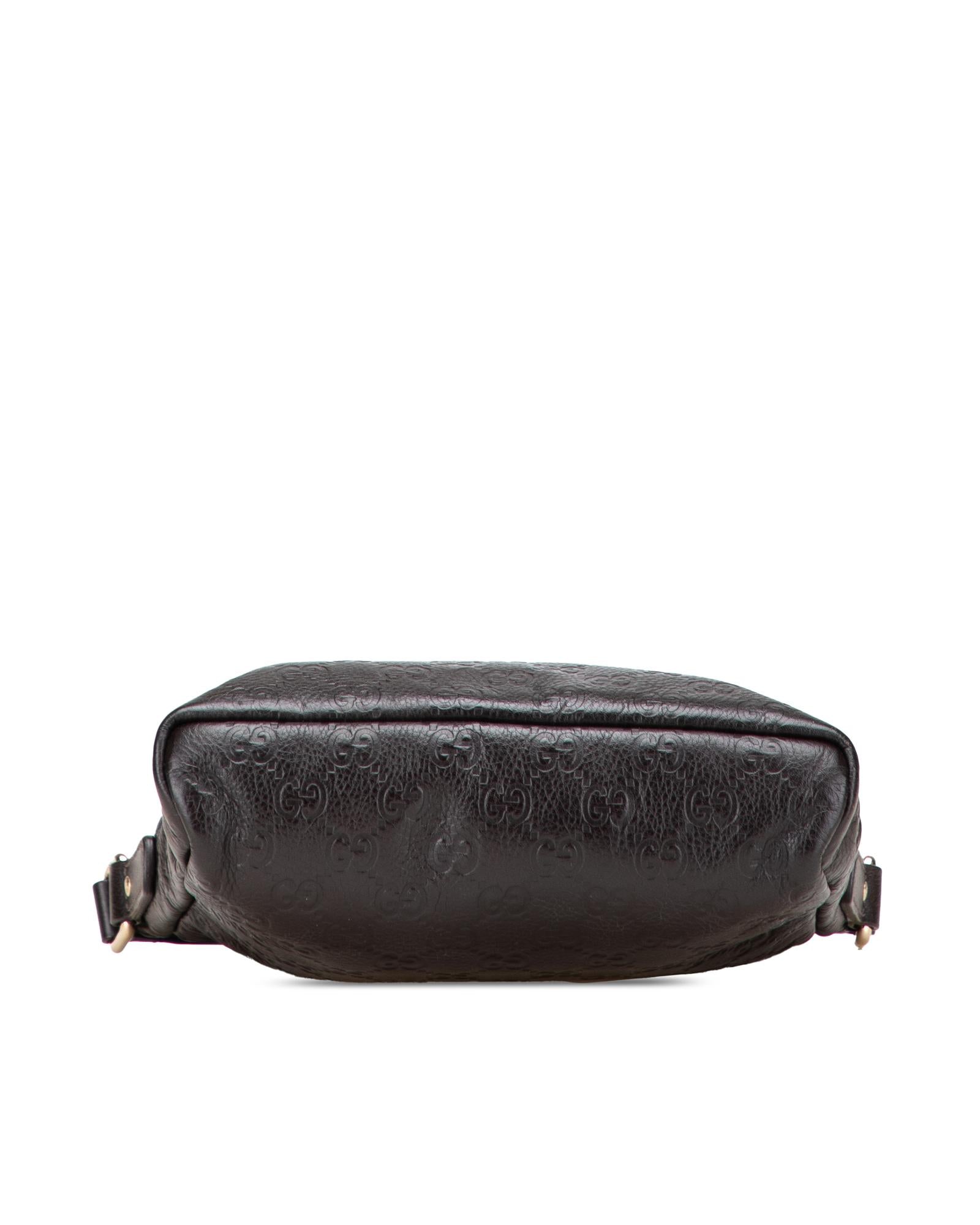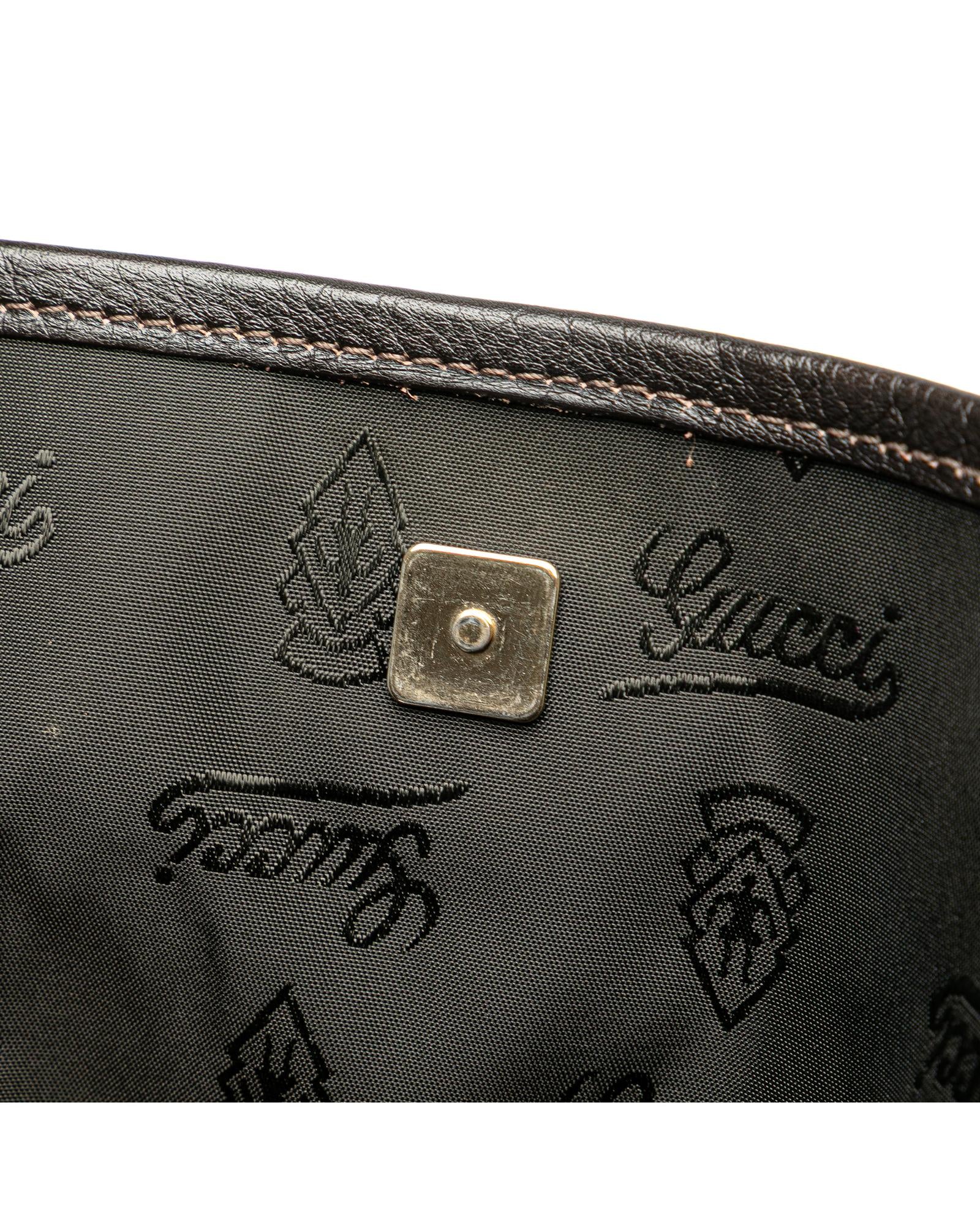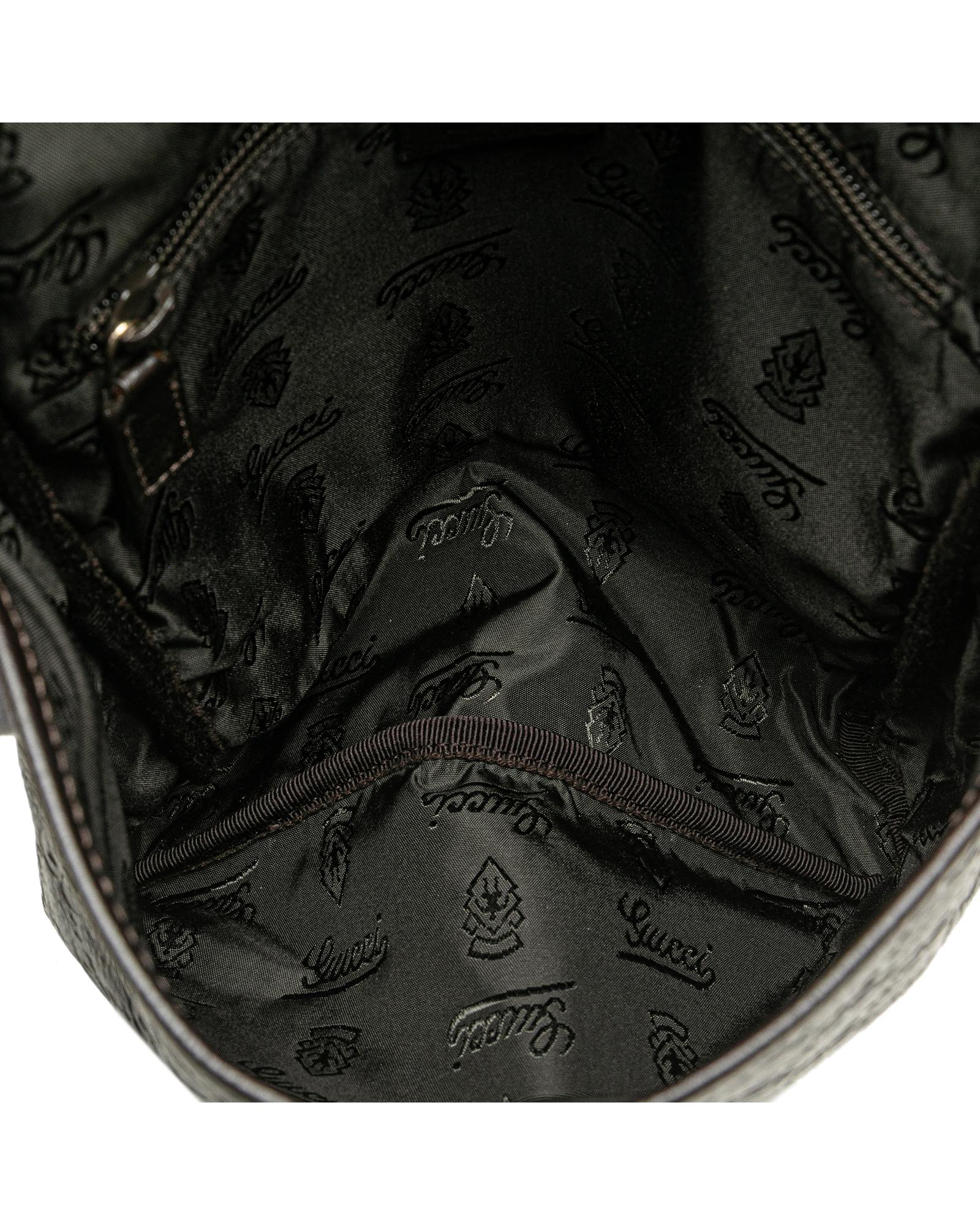 This crossbody bag features a leather body an adjustable flat shoulder strap a front flap with magnetic snap closure and an interior zip pocket.Brand: Gucci Vintage