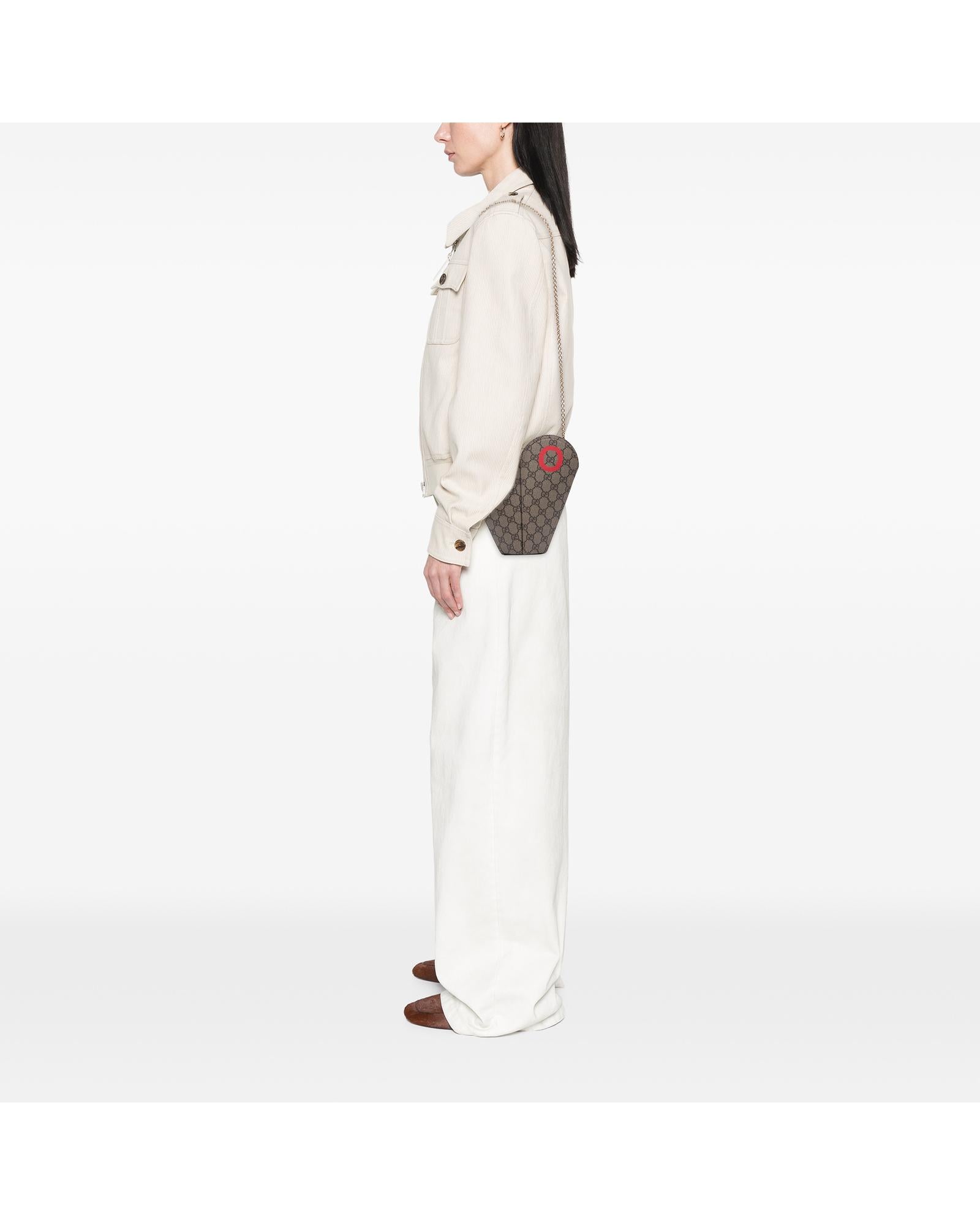 This crossbody bag features a coated canvas body a gold-tone chain strap and an open top with magnetic snap closure.Brand: Gucci Vintage