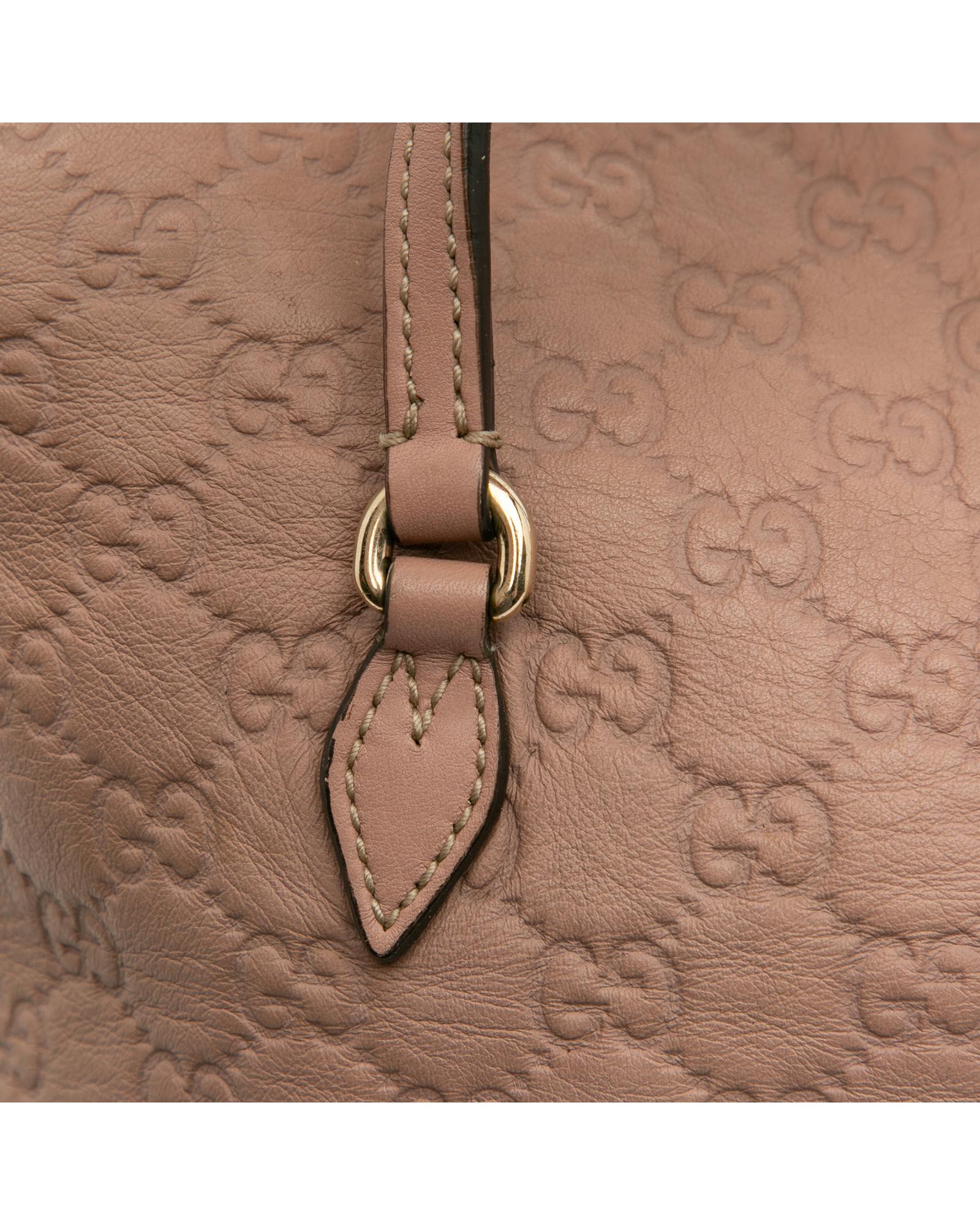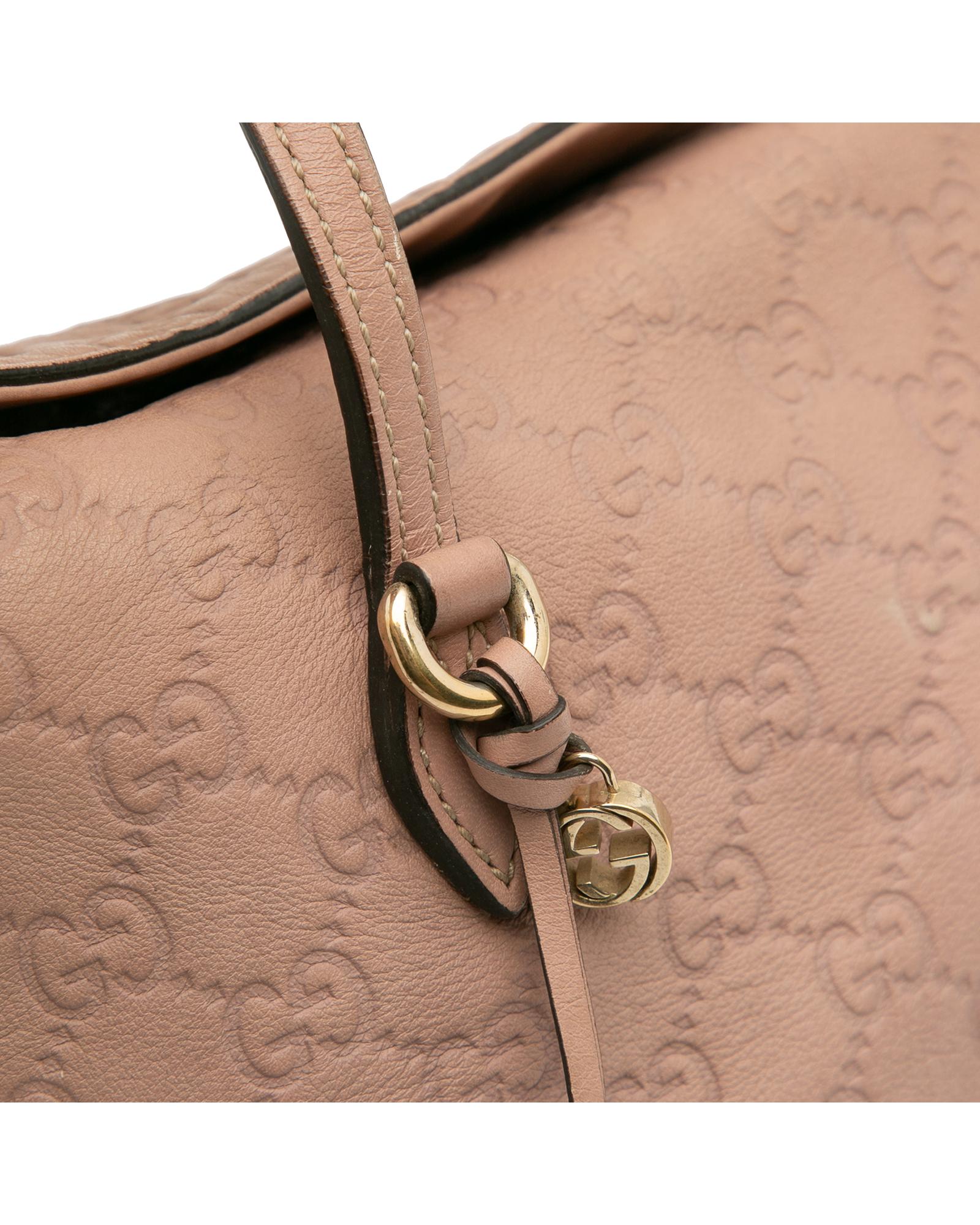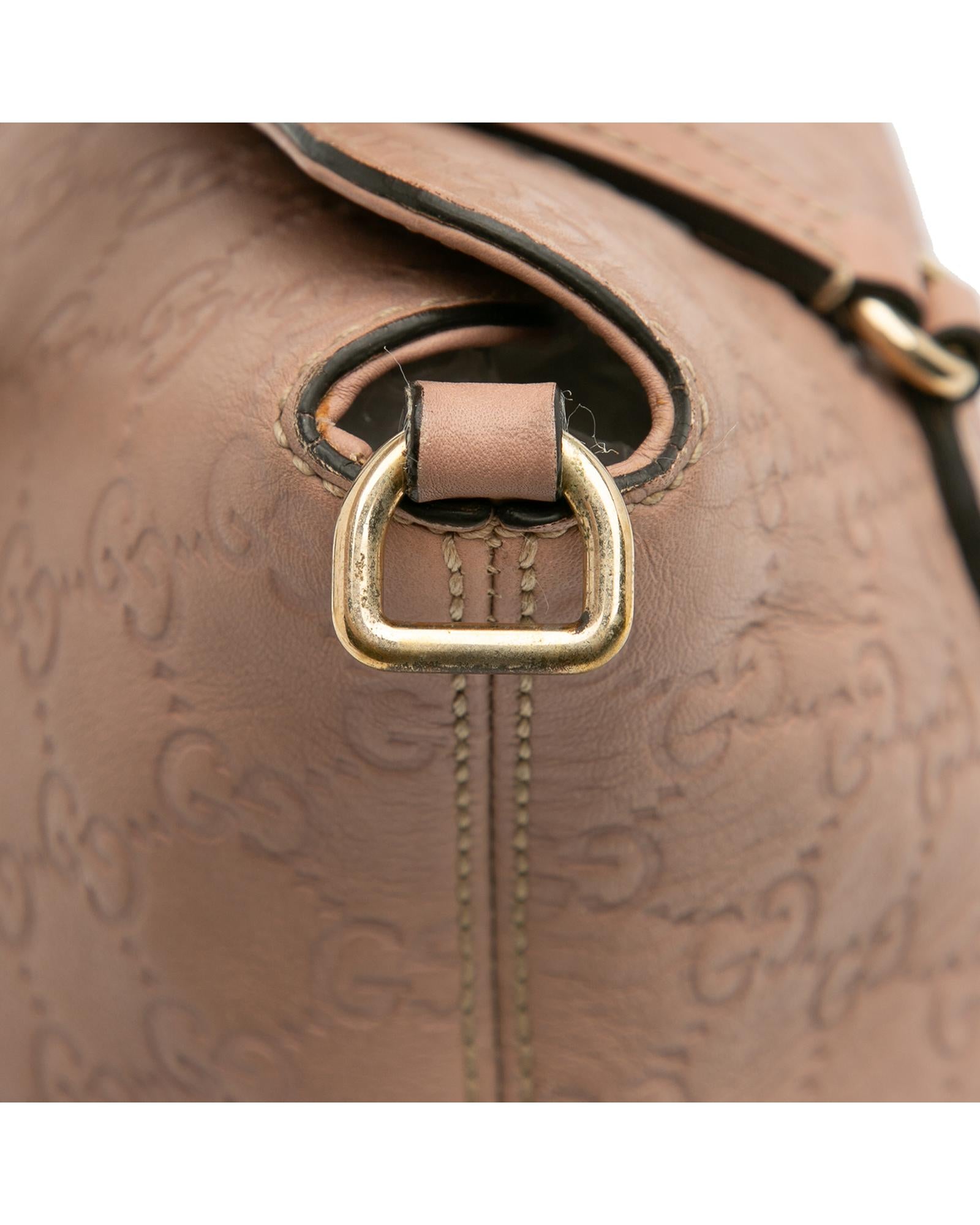 The Bree features an embossed leather body flat leather handles a detachable flat leather strap a fold-over top and interior zip and slip pockets. The corners were repainted.Brand: Gucci Vintage