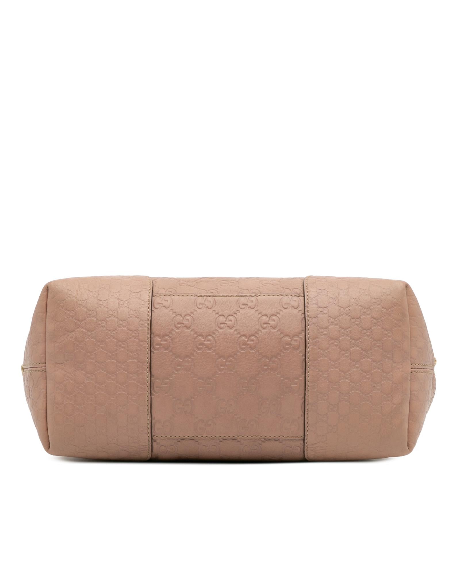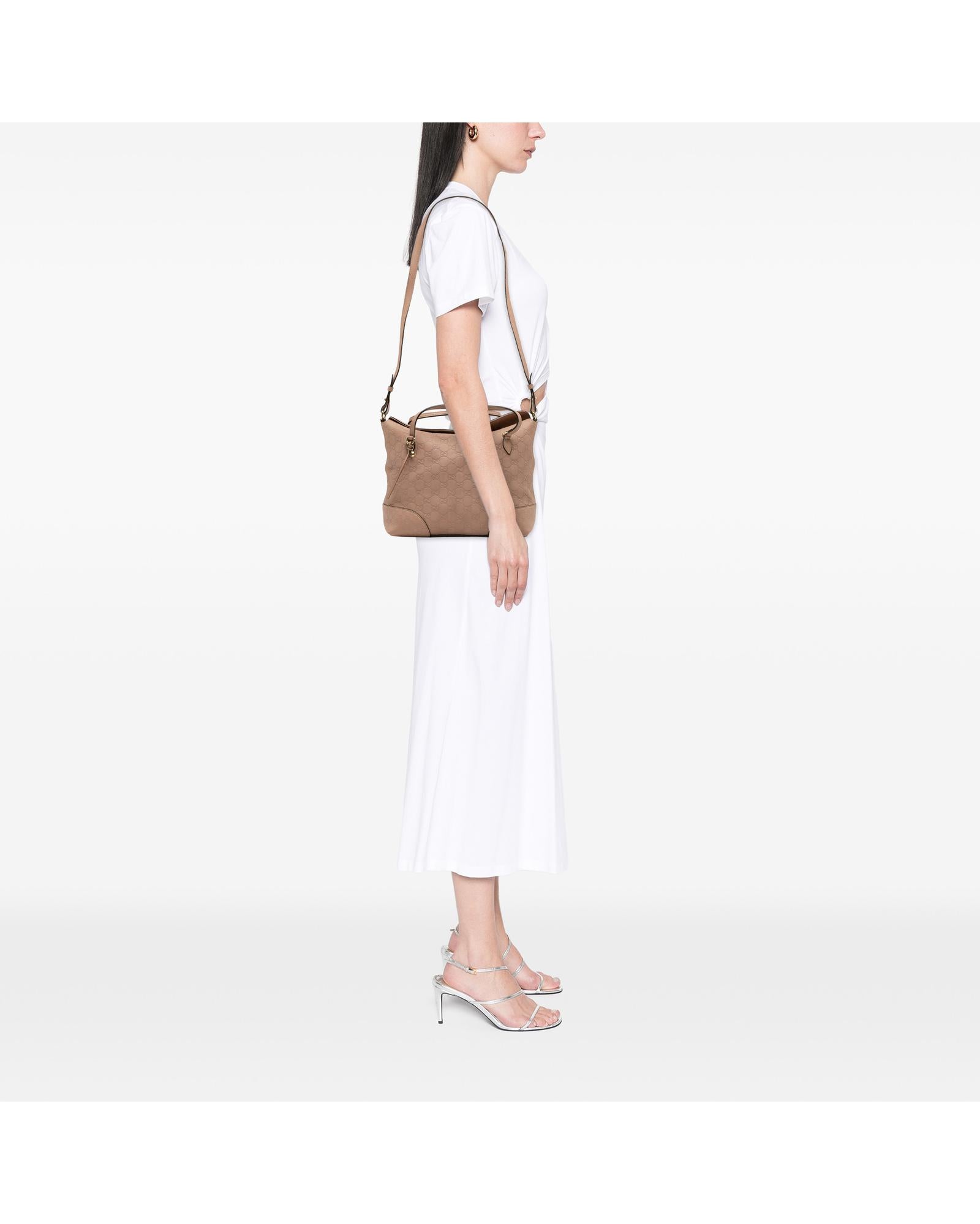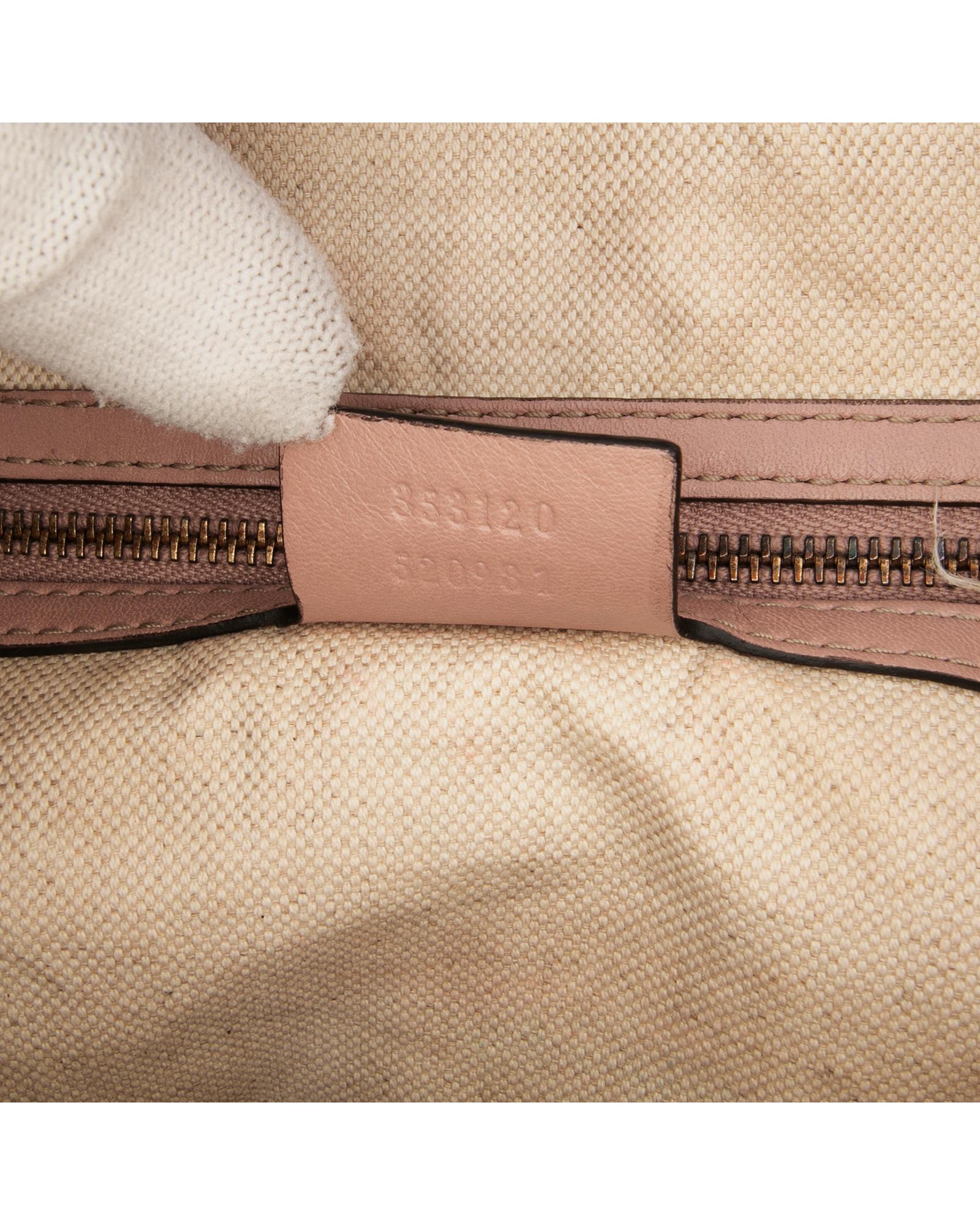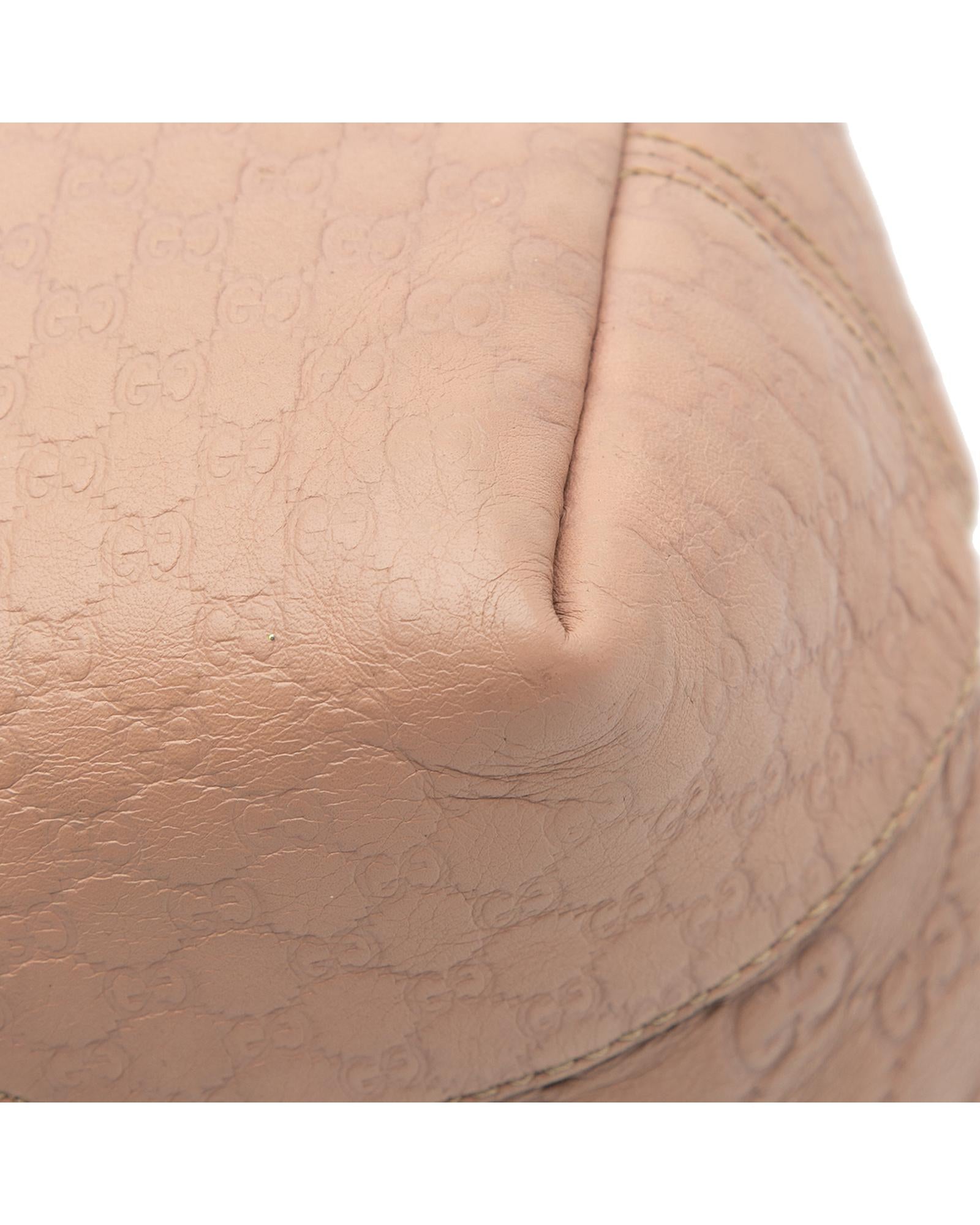 The Bree features an embossed leather body flat leather handles a detachable flat leather strap a fold-over top and interior zip and slip pockets. The corners were repainted.Brand: Gucci Vintage