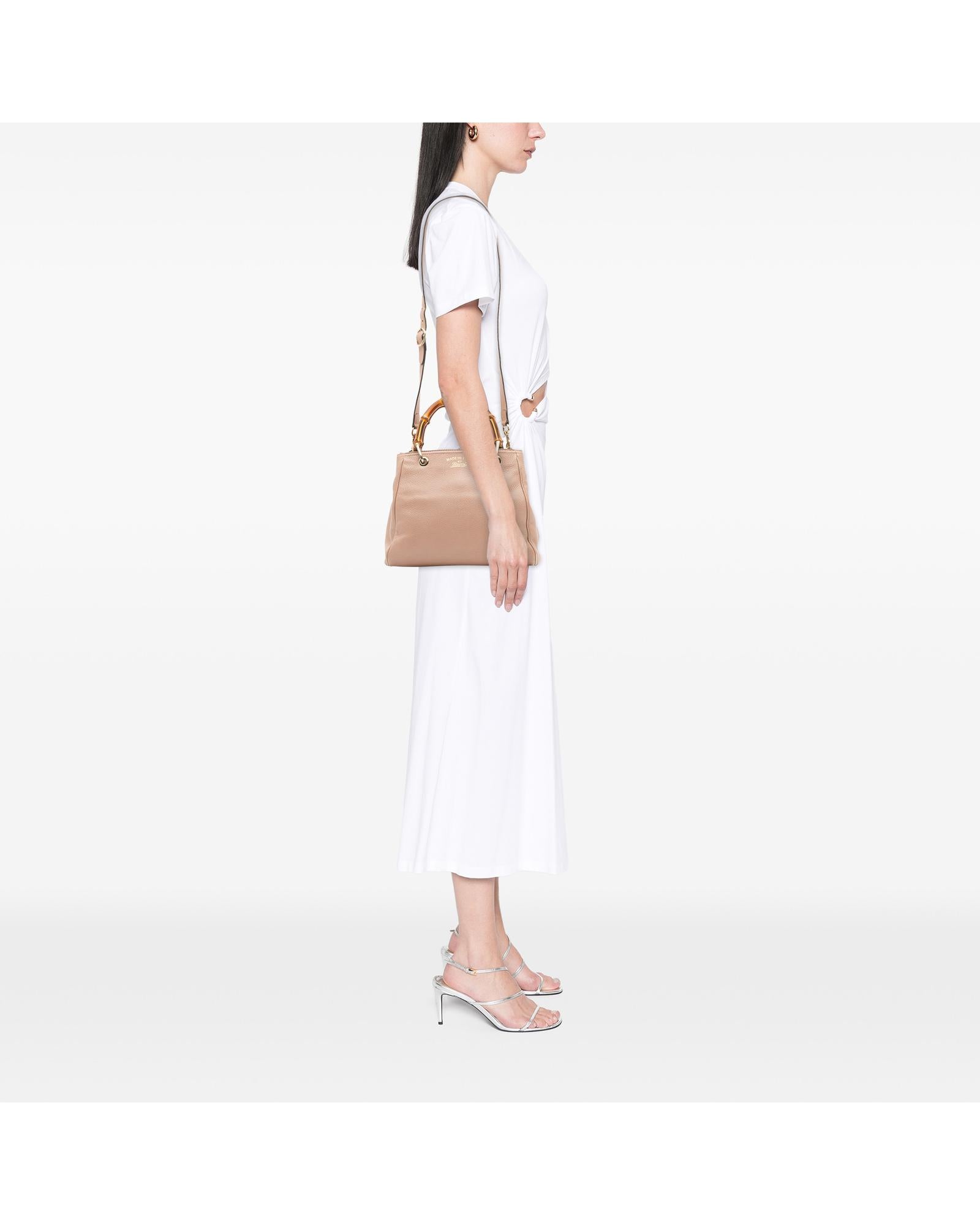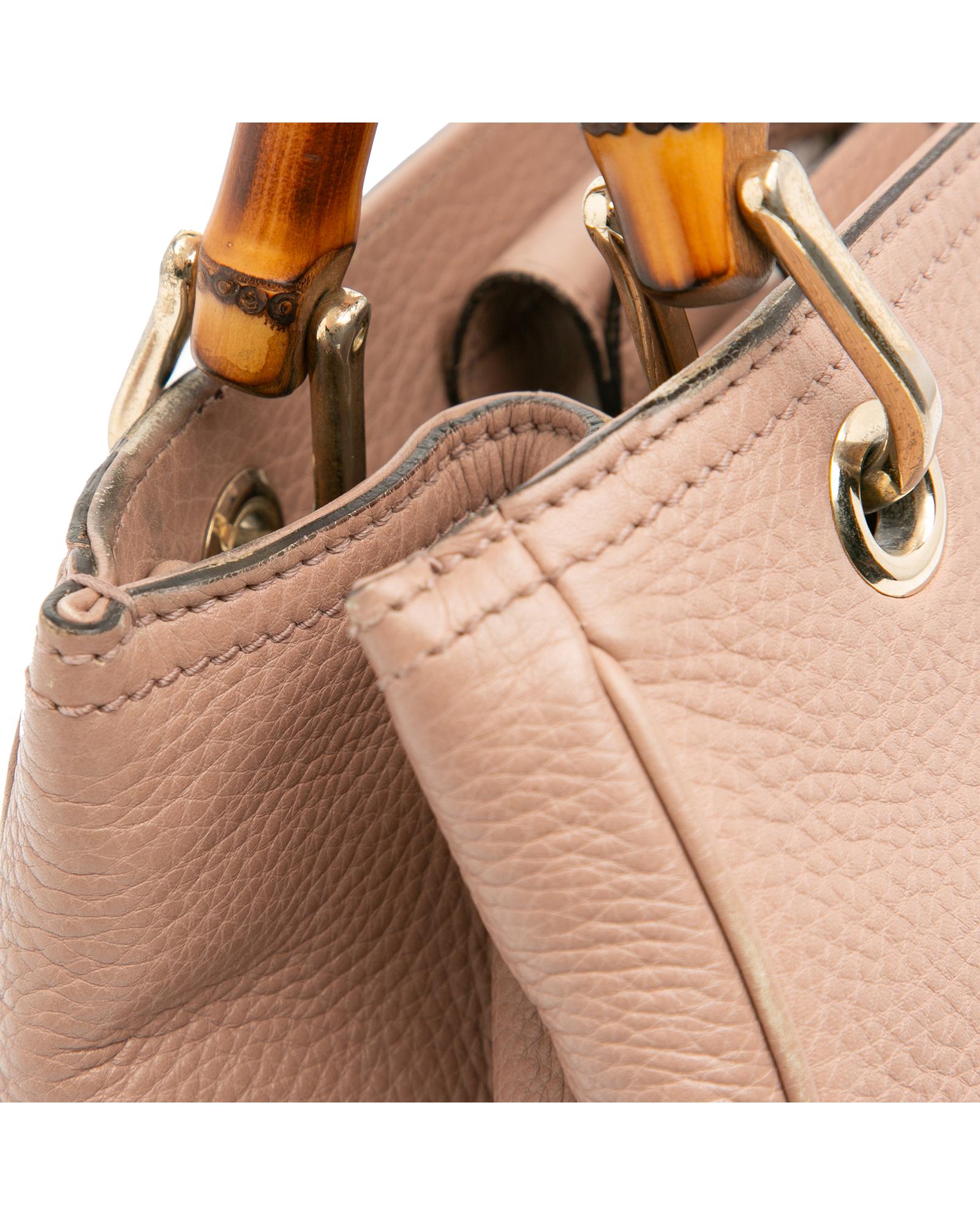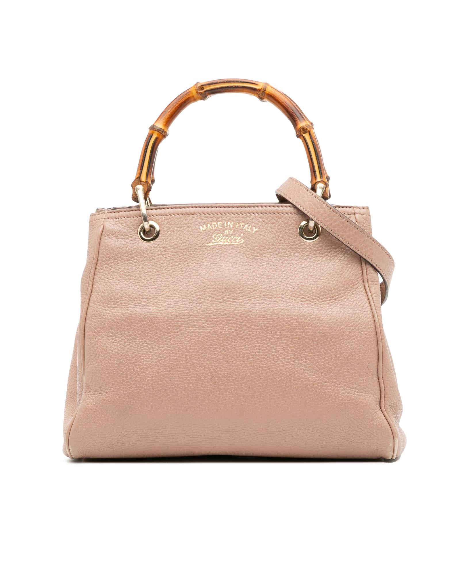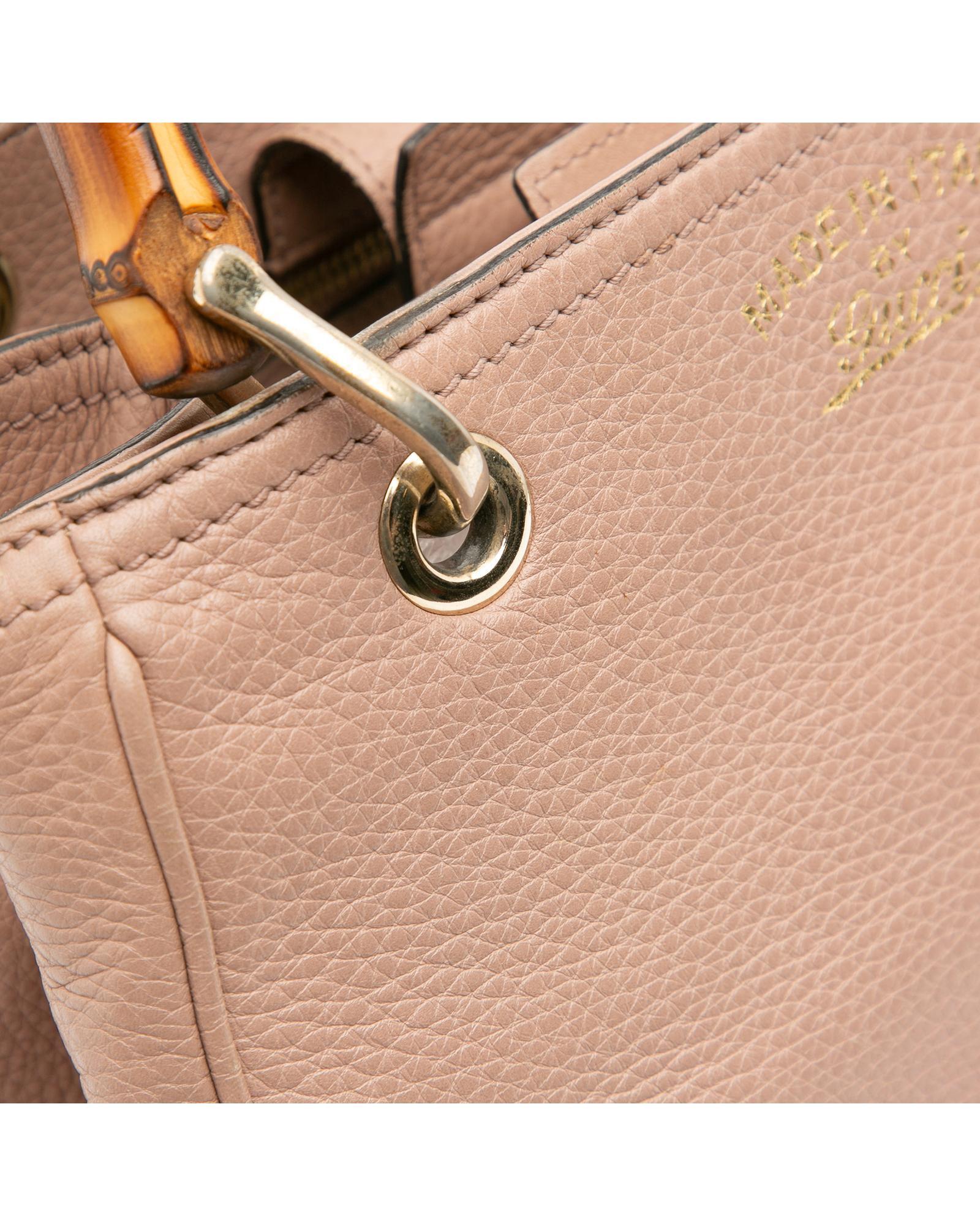 The Bamboo Shopper satchel features a leather body bamboo handles a detachable flat leather strap an open top with magnetic snap closure and interior zip and slip pockets.Brand: Gucci Vintage