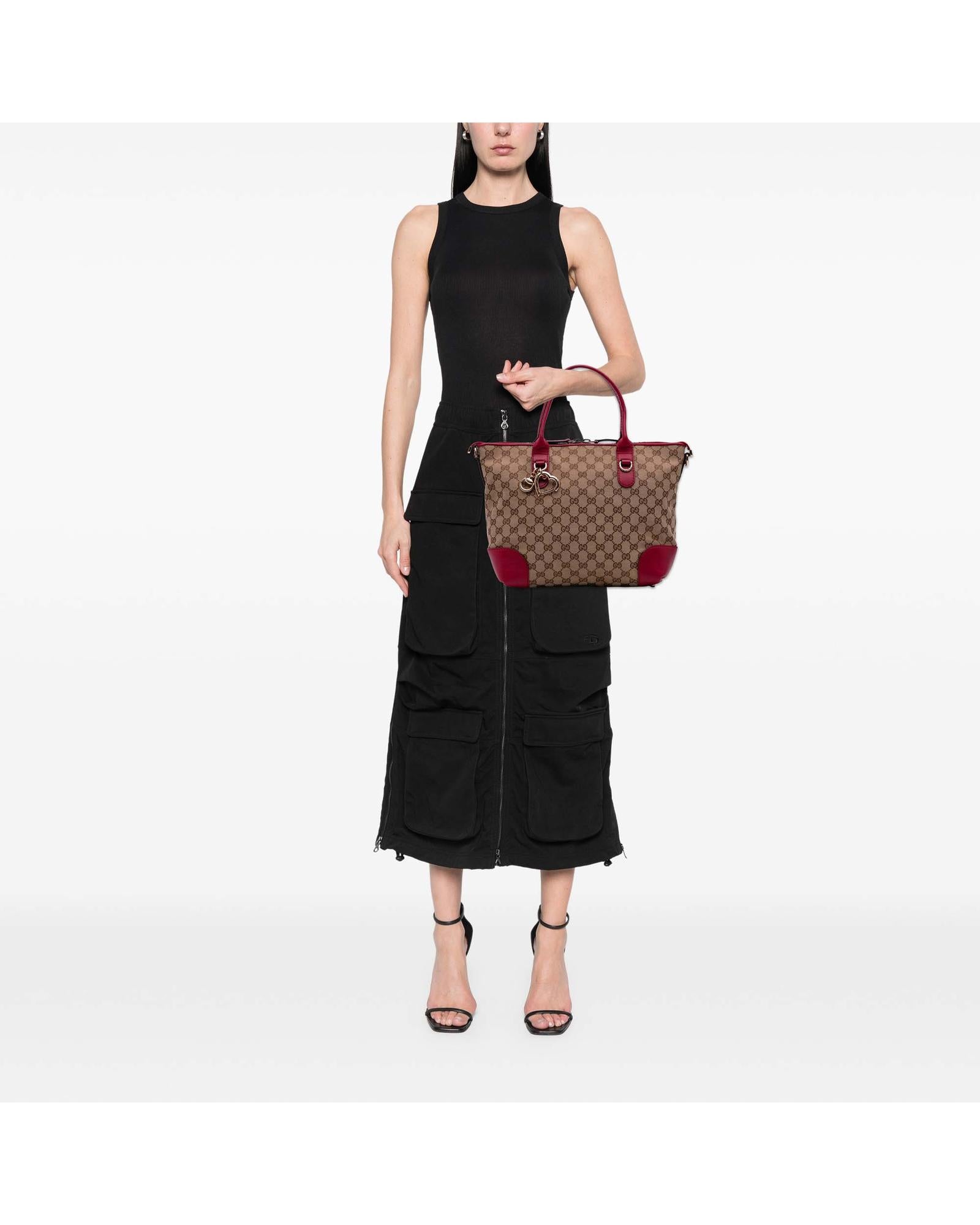 Pre-owned Elegant Patterned Handbag with Top Handles and Charm Detail