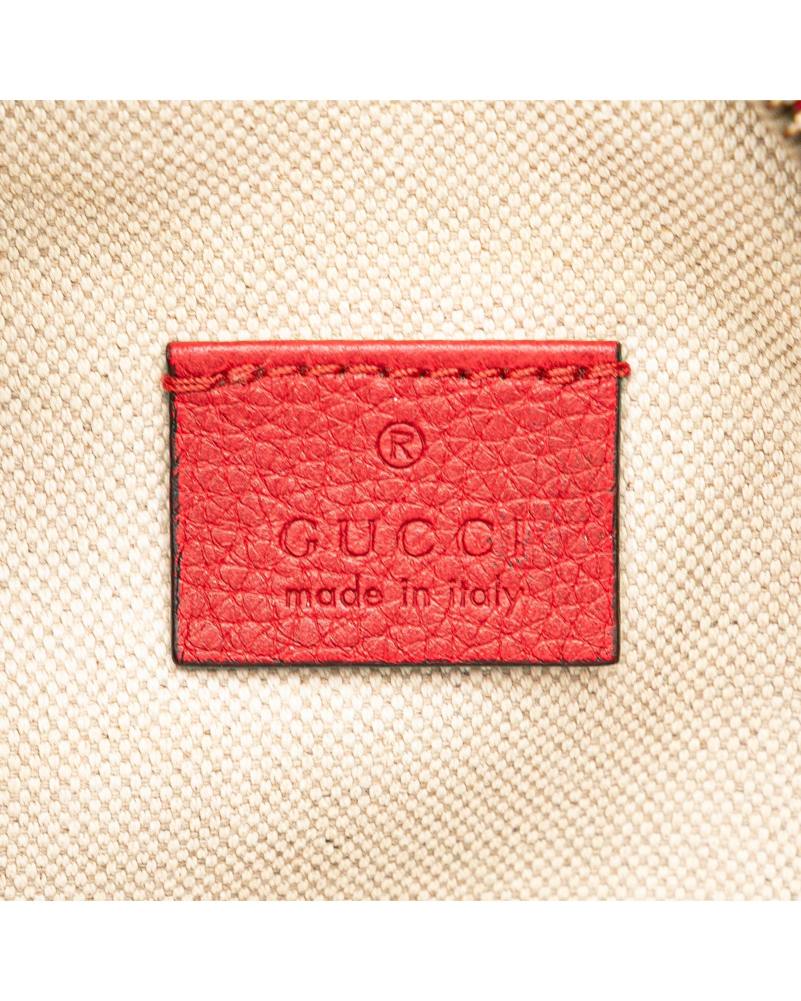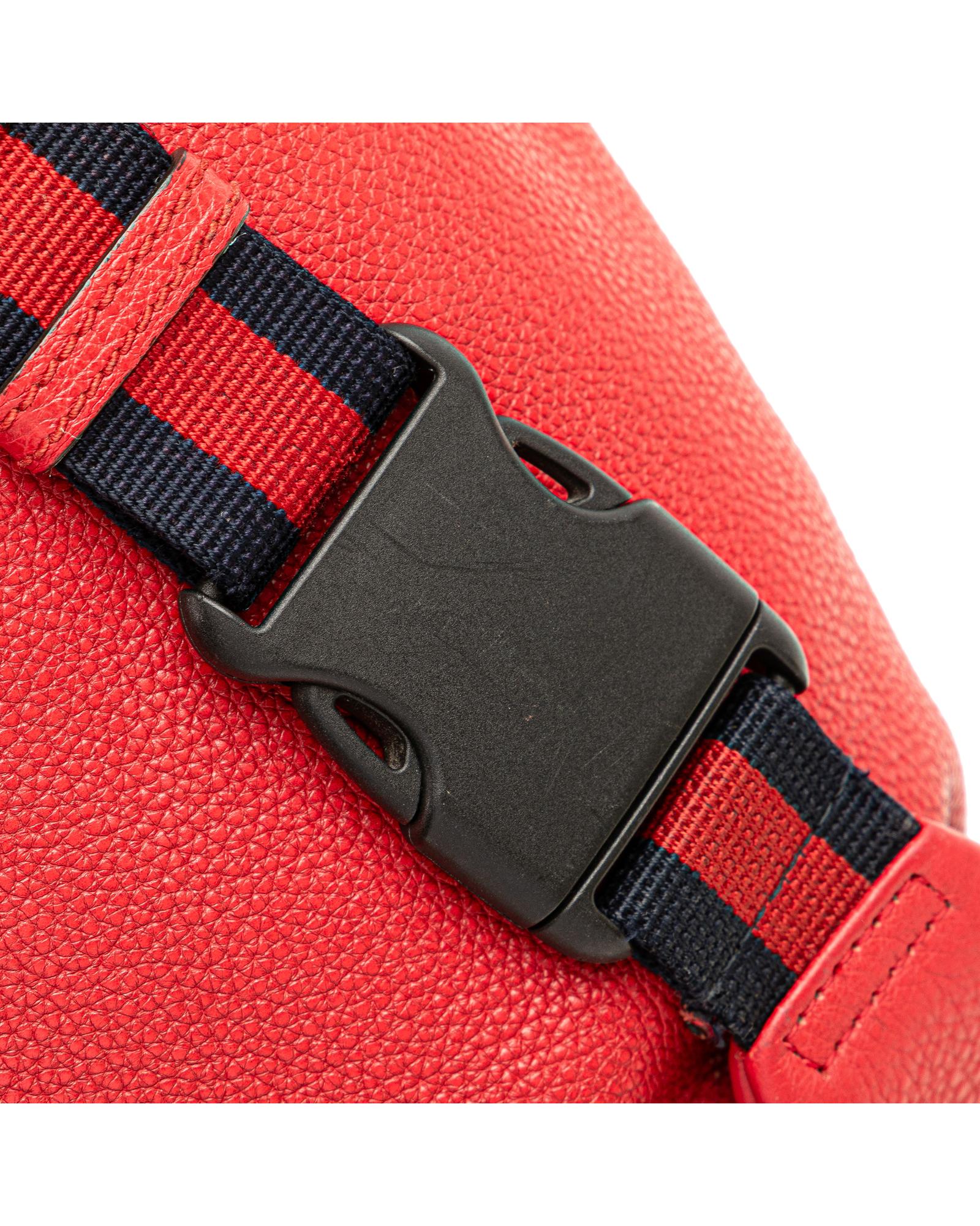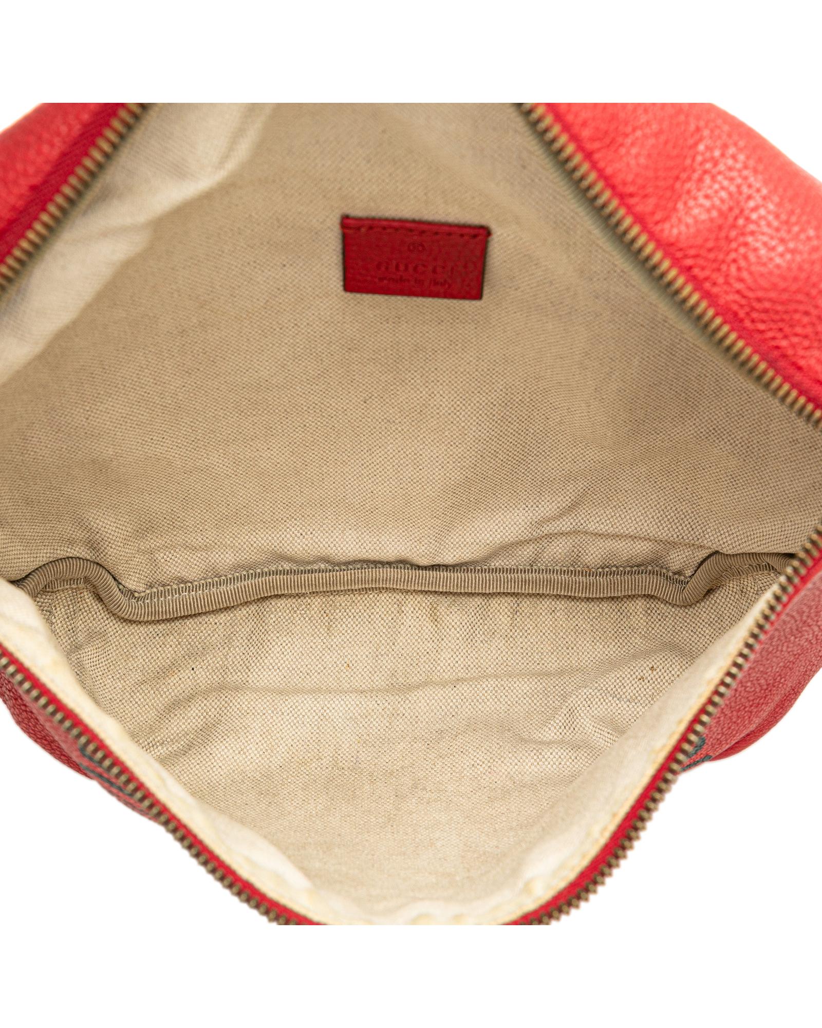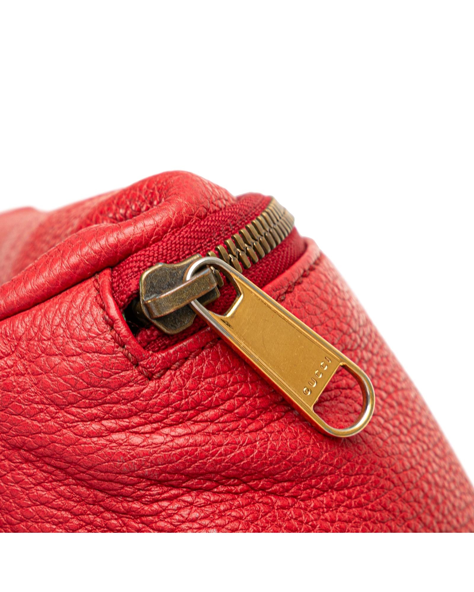 This belt bag features a grained calf leather body a flat canvas waist strap with buckle closure and a front zip closure.Brand: Gucci Vintage