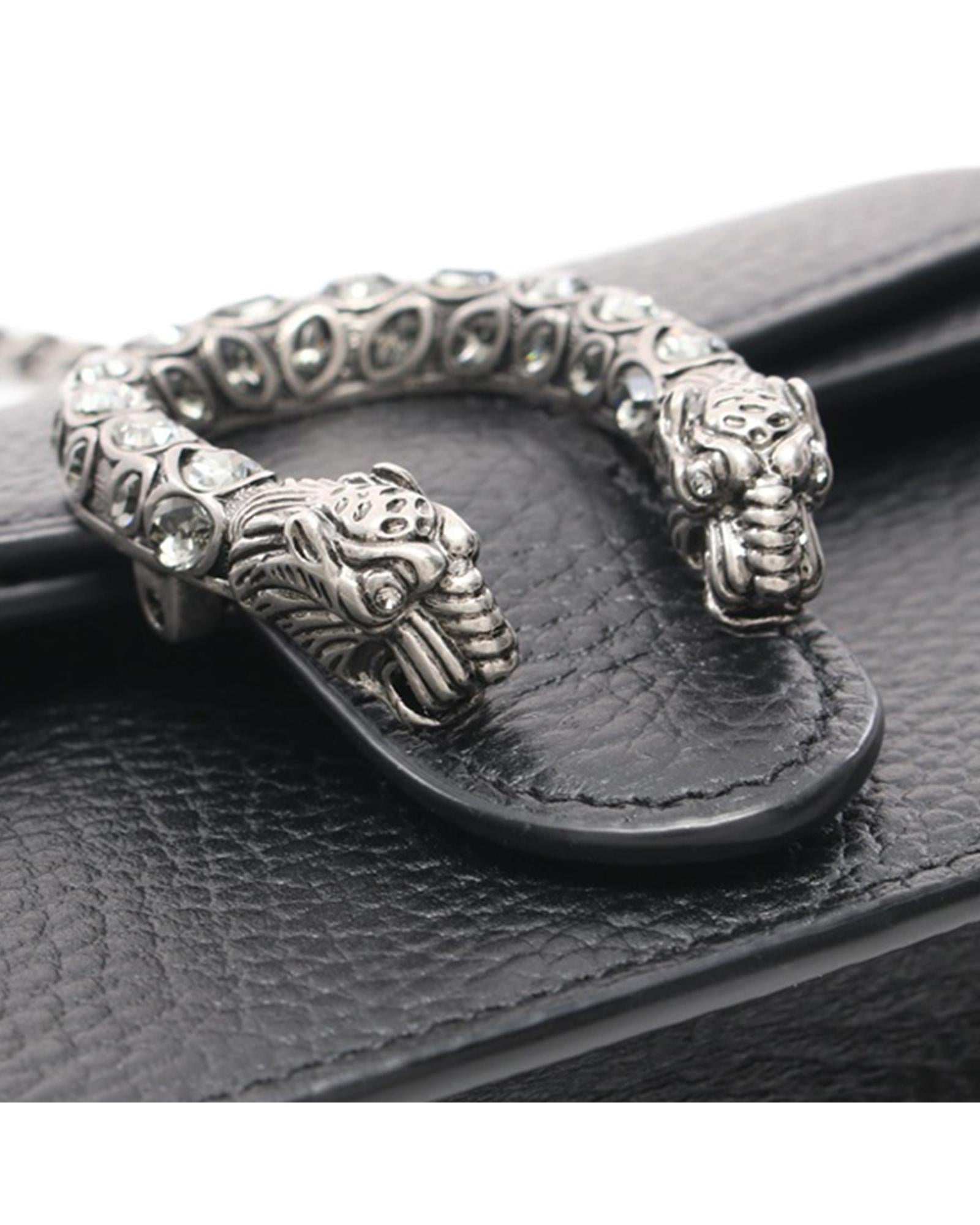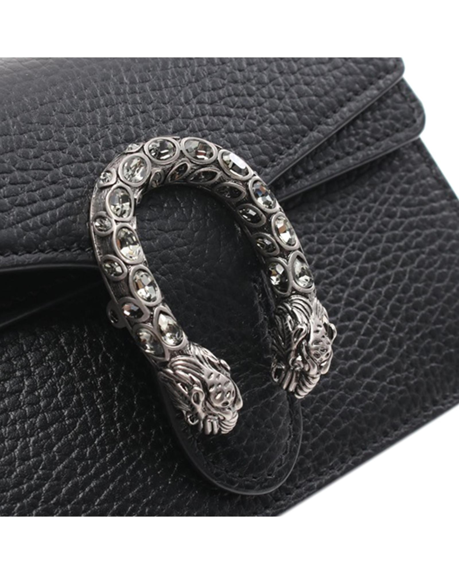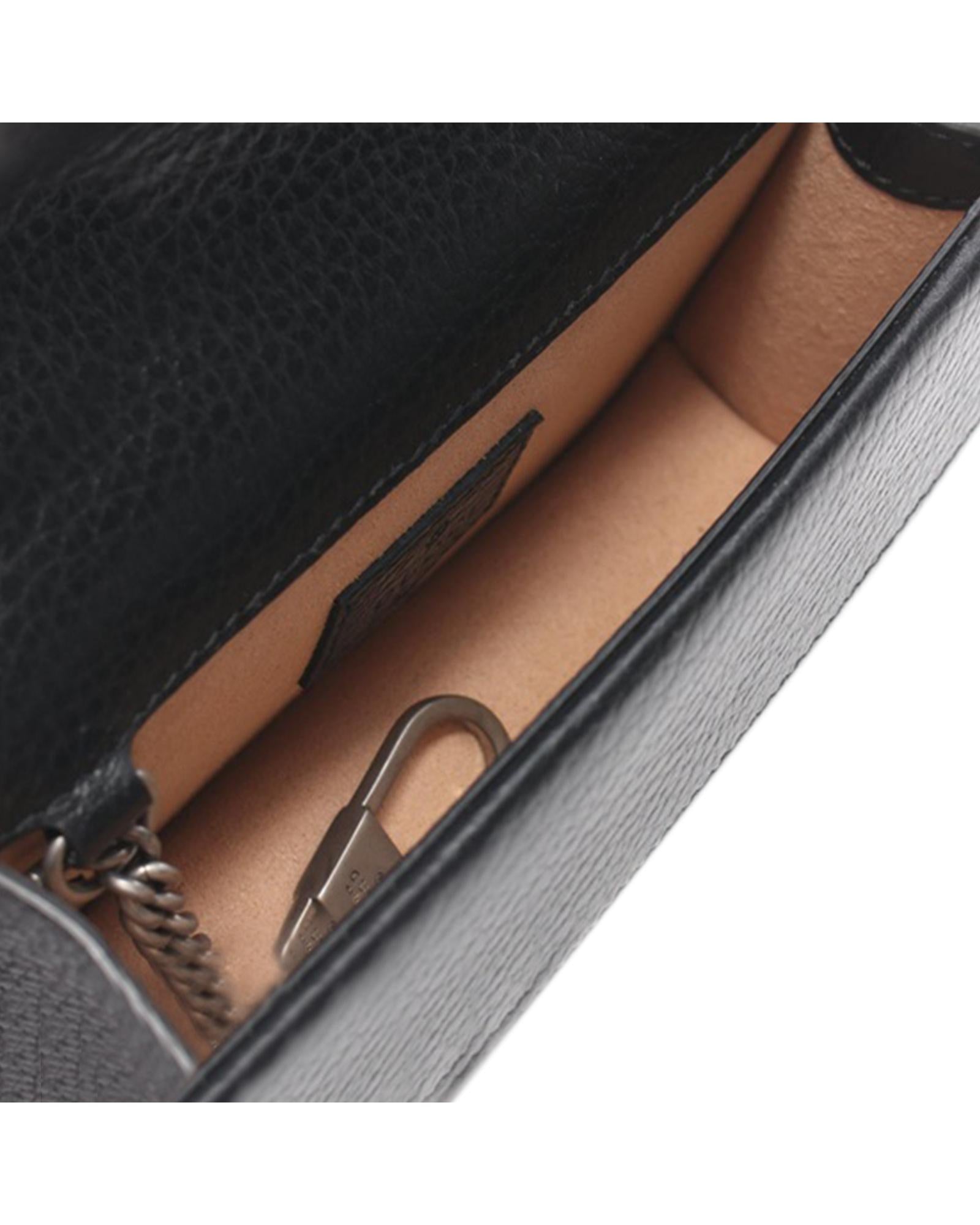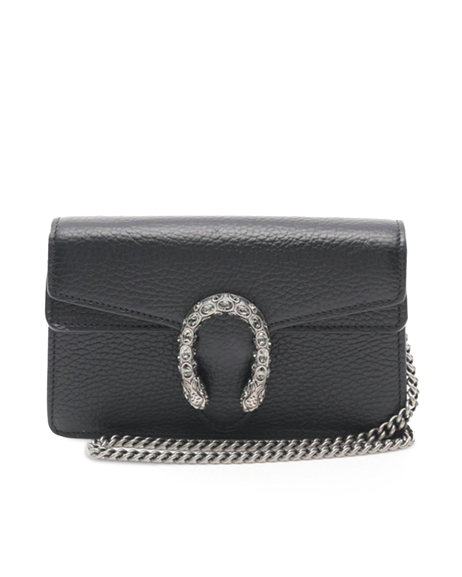 The Super Mini Dionysus crossbody bag features a leather body a chain link shoulder strap and a front flap with a snap button closure.Brand: Gucci Vintage