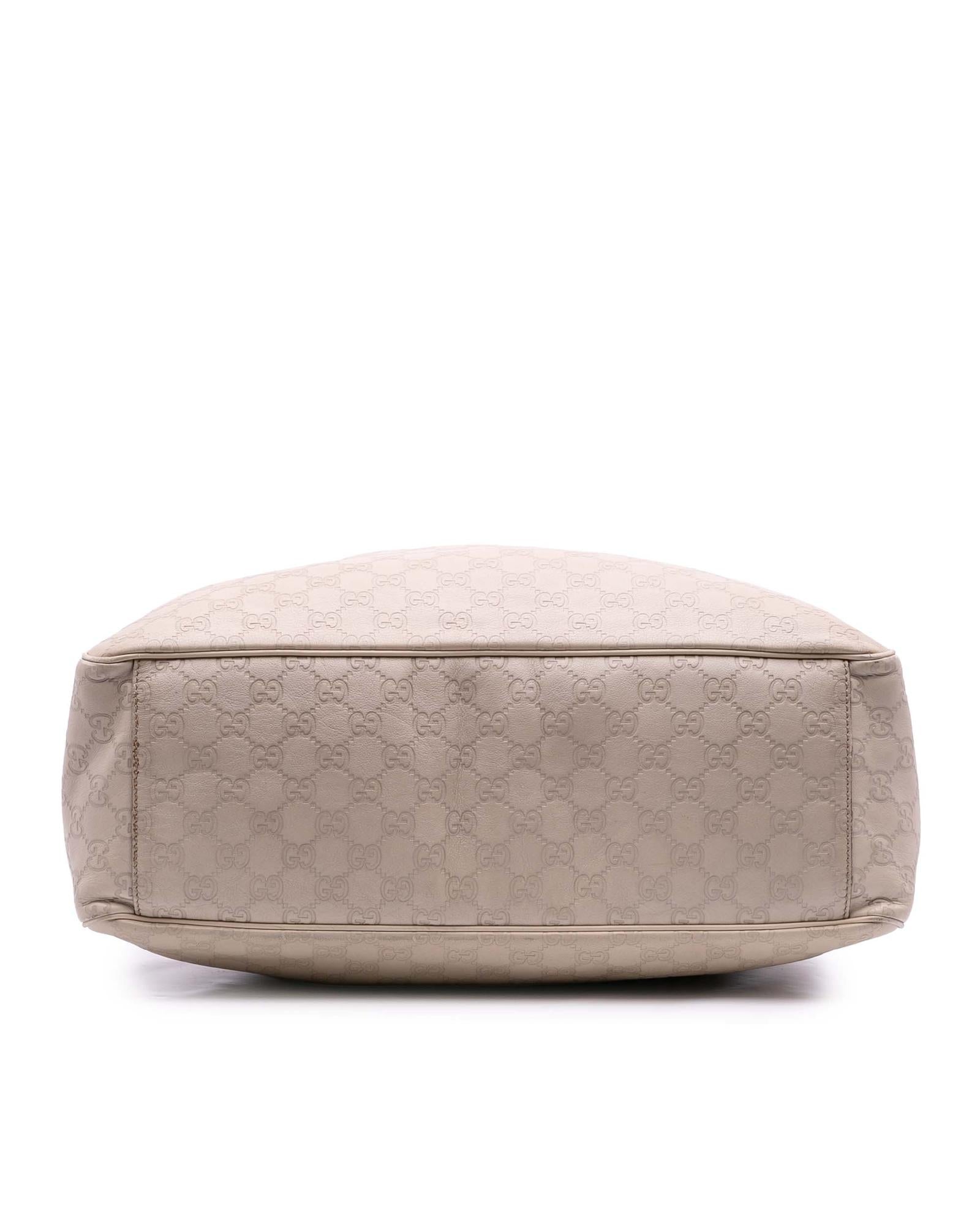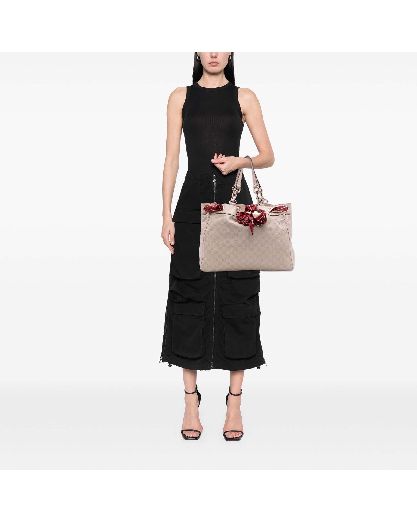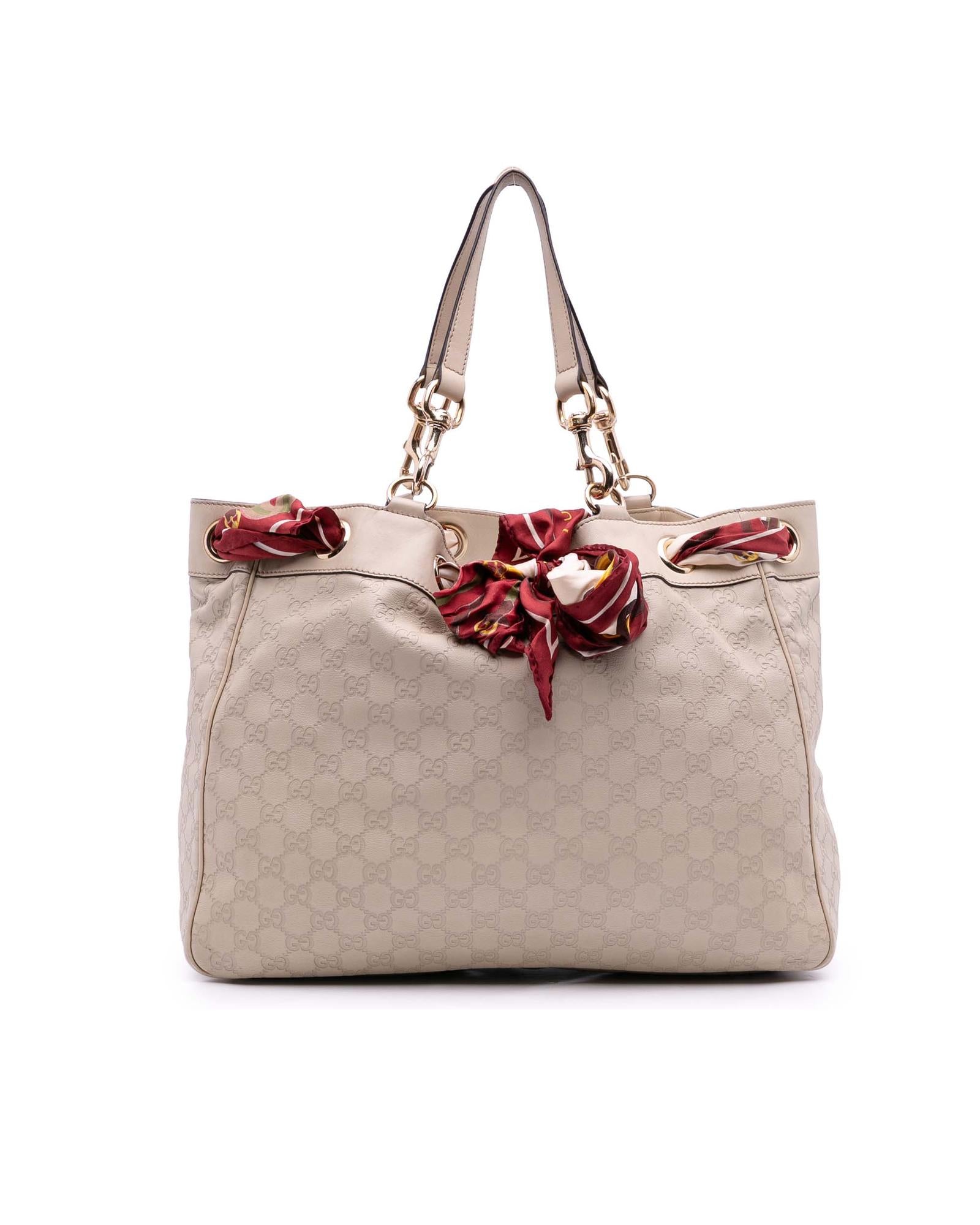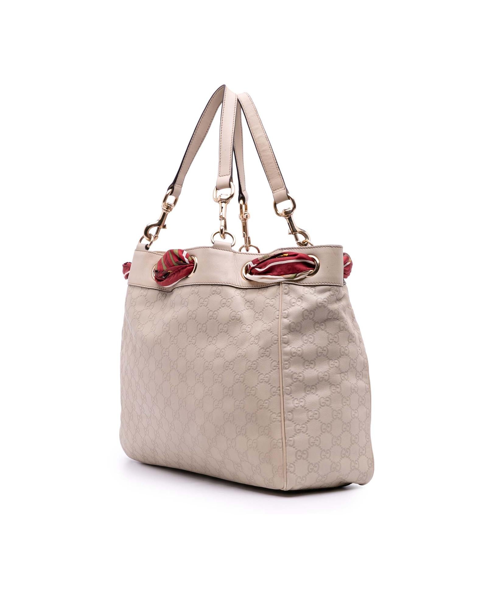 The Positano features an embossed leather body flat leather strap an open top with scarf drawstring detail and interior zip and slip pockets.Brand: Gucci Vintage