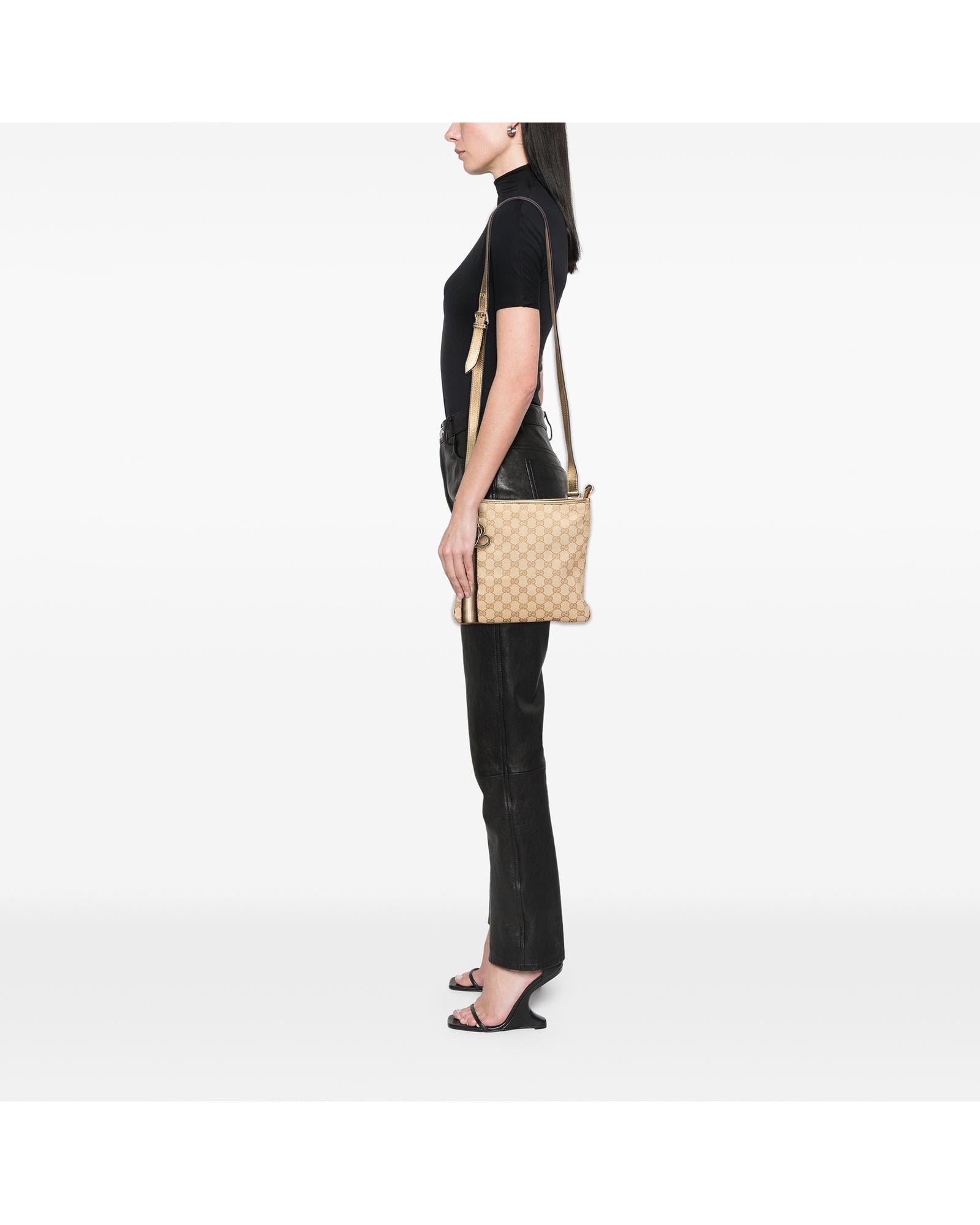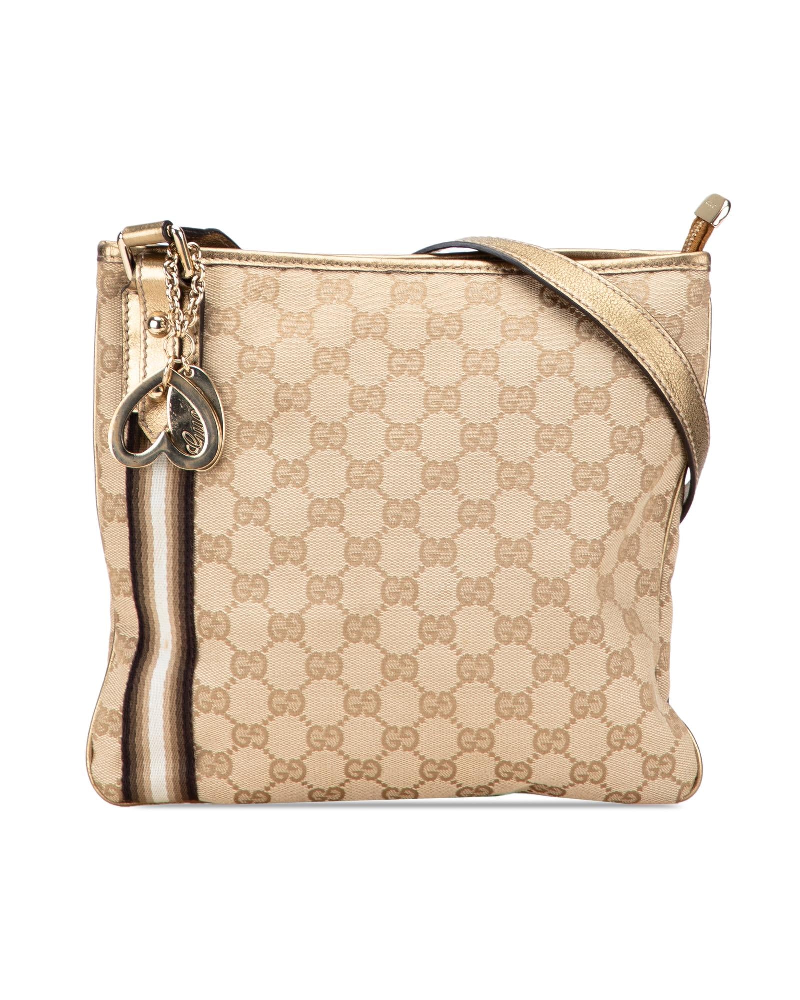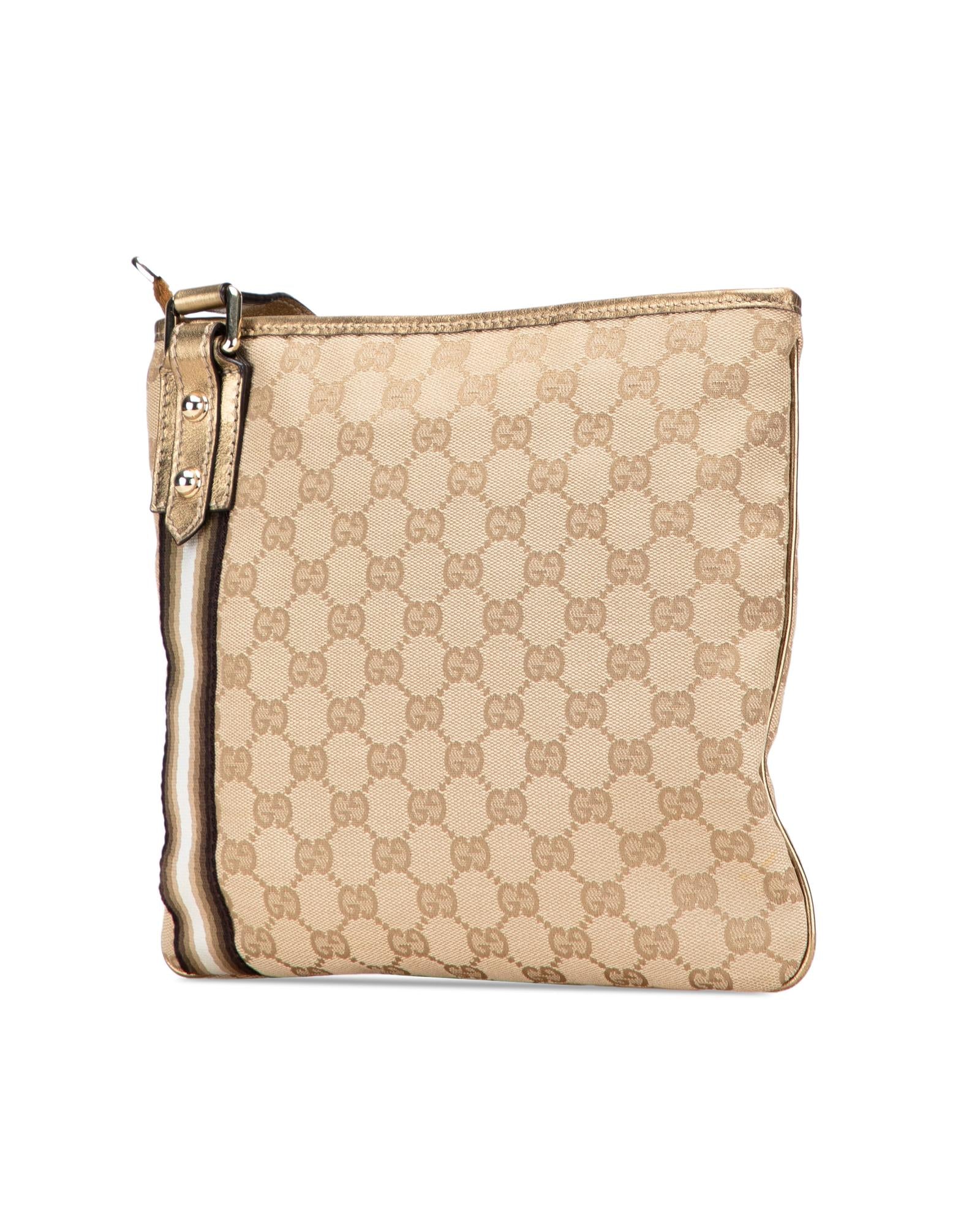 The Jolicoeur crossbody bag features a canvas body a flat leather strap a top zip closure and interior zip and slip pockets.Brand: Gucci Vintage