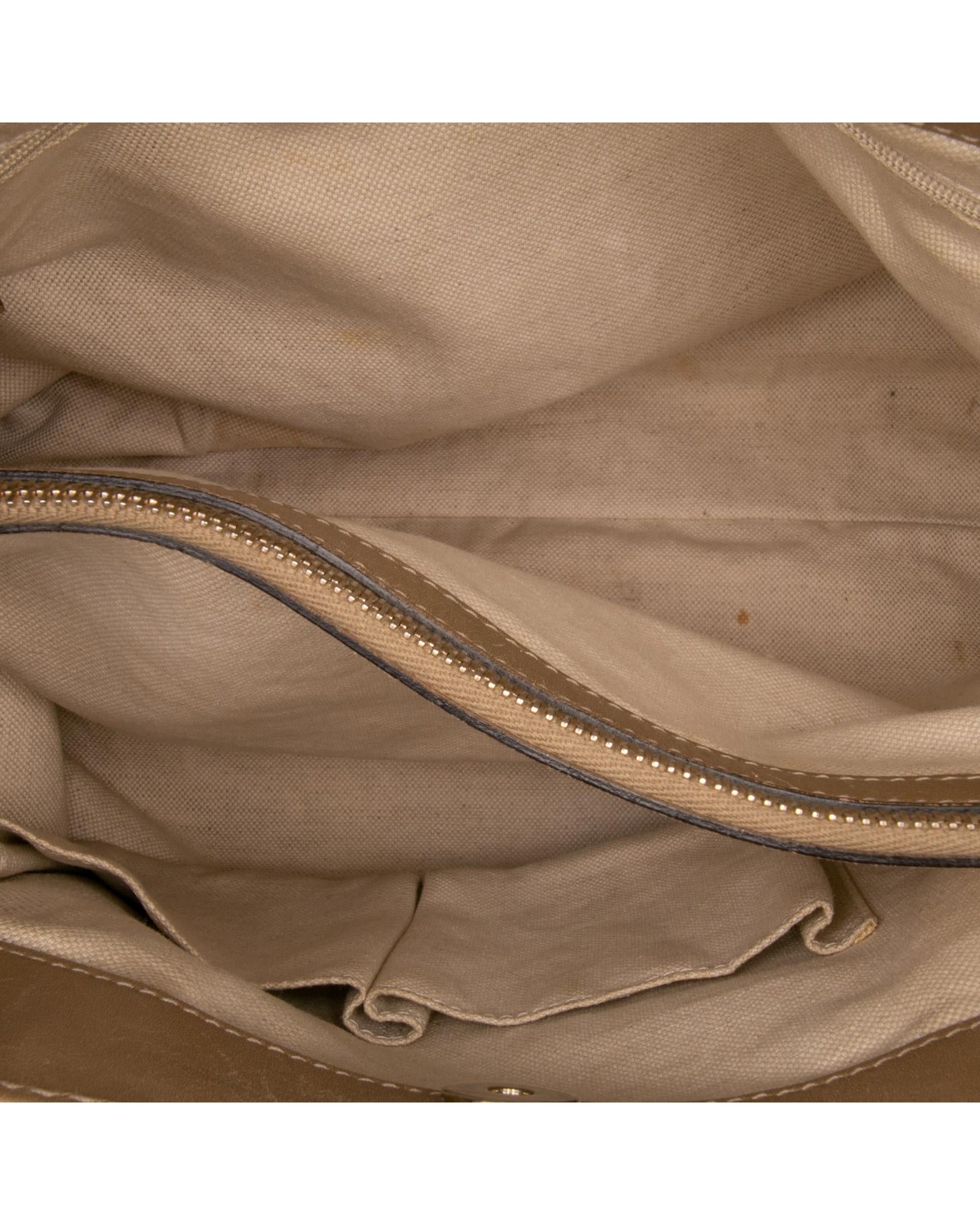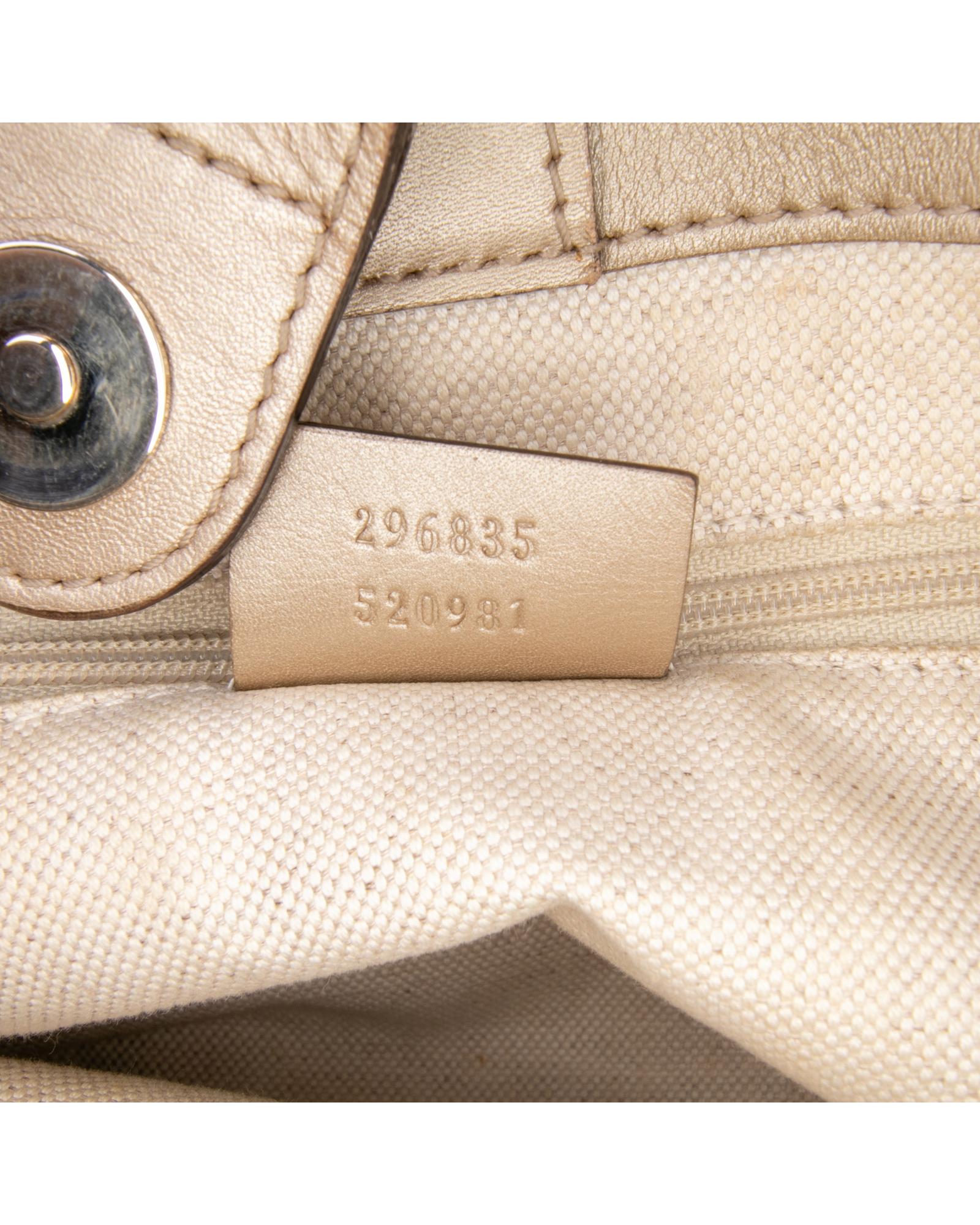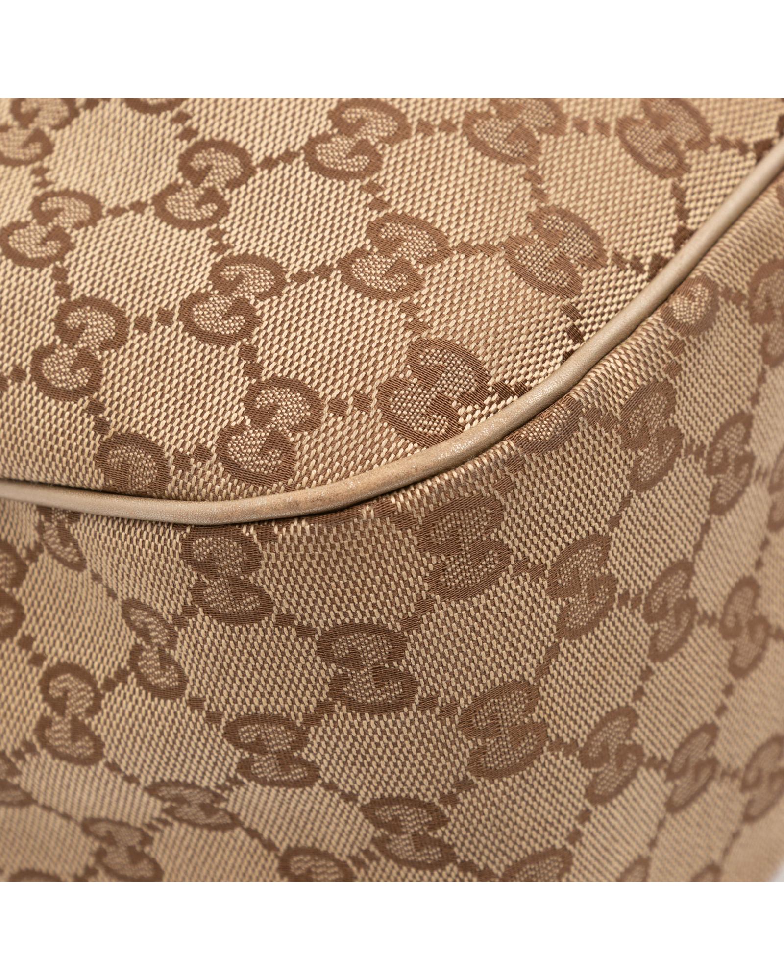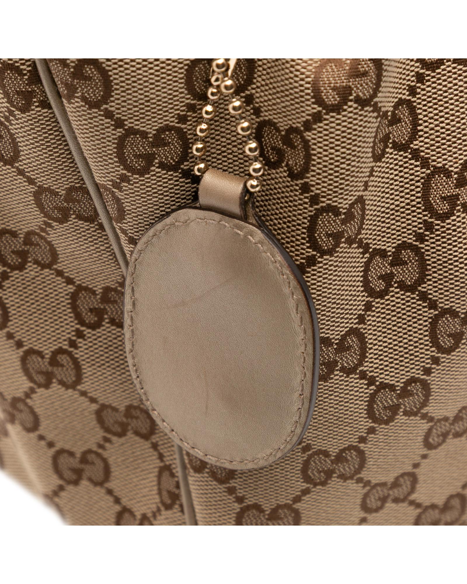 The Sukey tote bag features a canvas body with leather trim rolled leather handles an open top with magnetic snap button closure an interior zip compartment and interior zip and slip pockets.Brand: Gucci Vintage