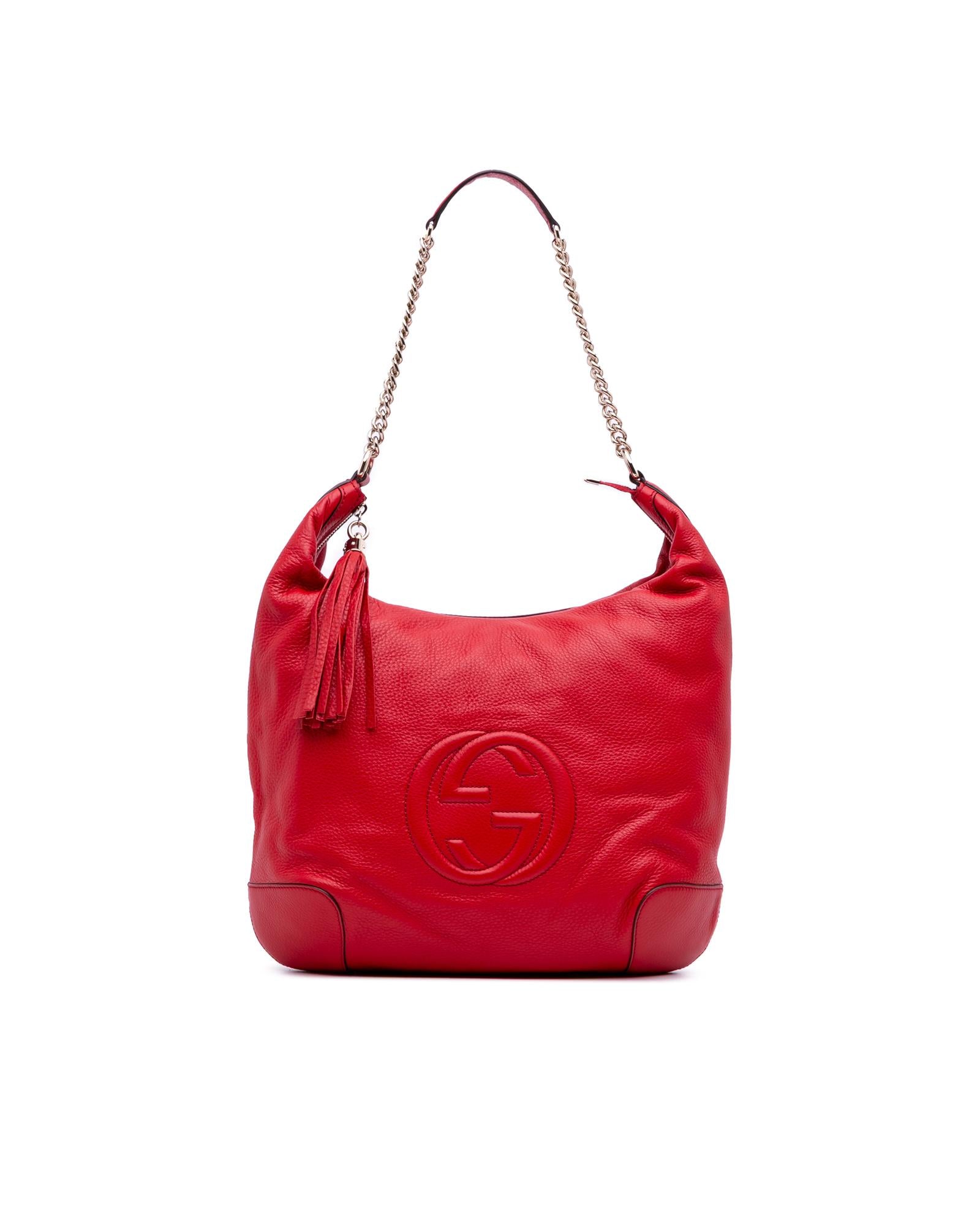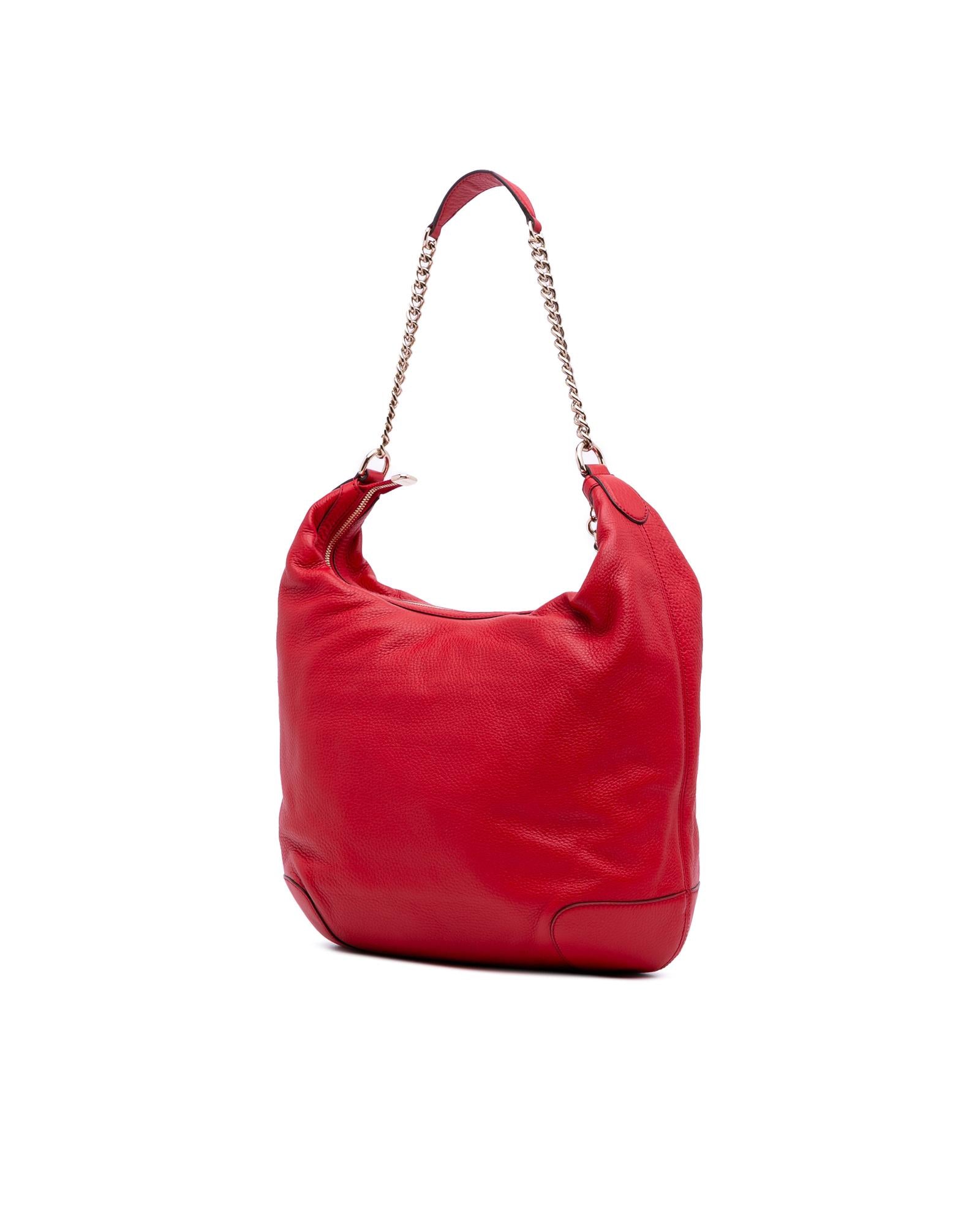 The Soho features a leather body a chain link strap with leather guard a top zip closure and interior zip and slip pockets.Brand: Gucci Vintage