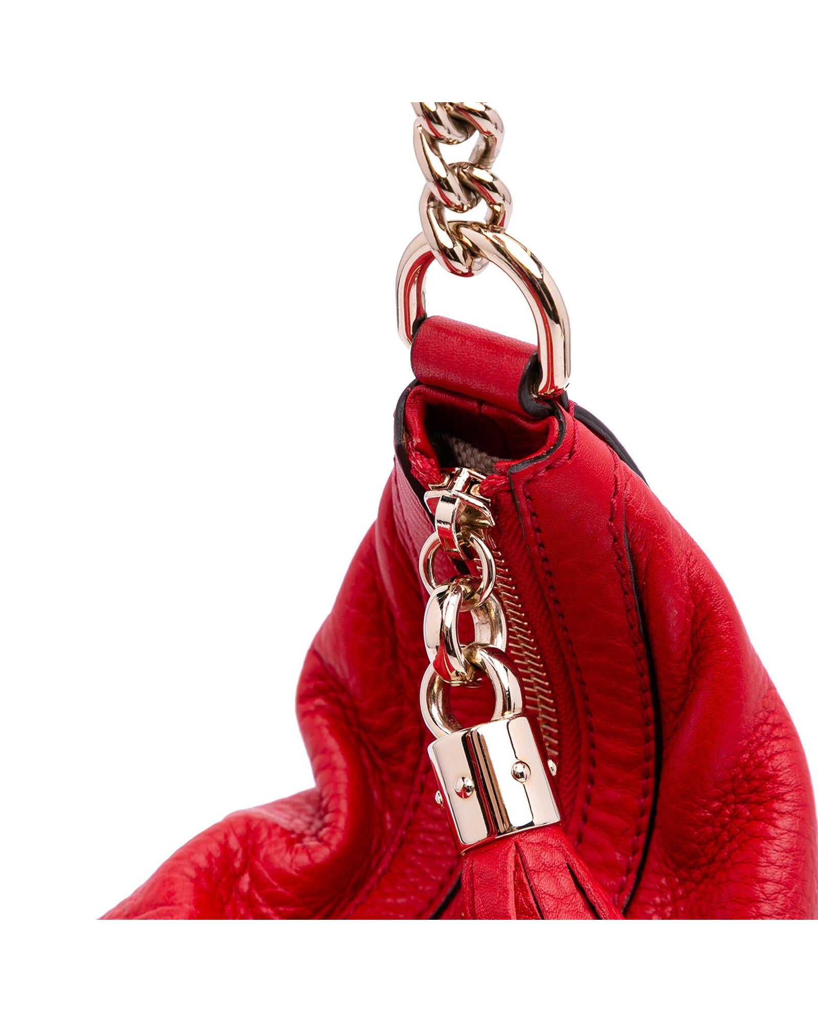 Pre-owned Leather Shoulder Bag with Chain Strap and Tassel Detail