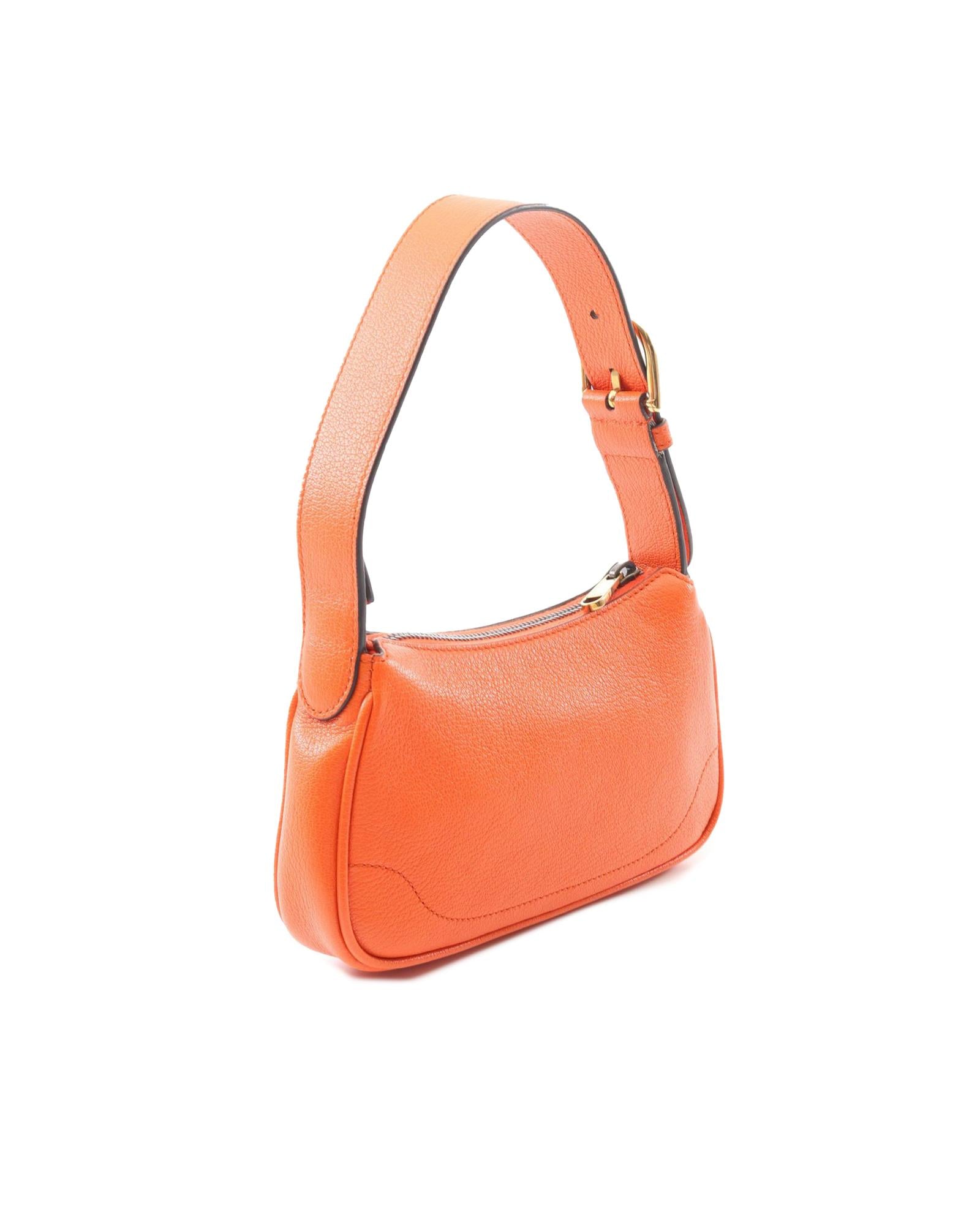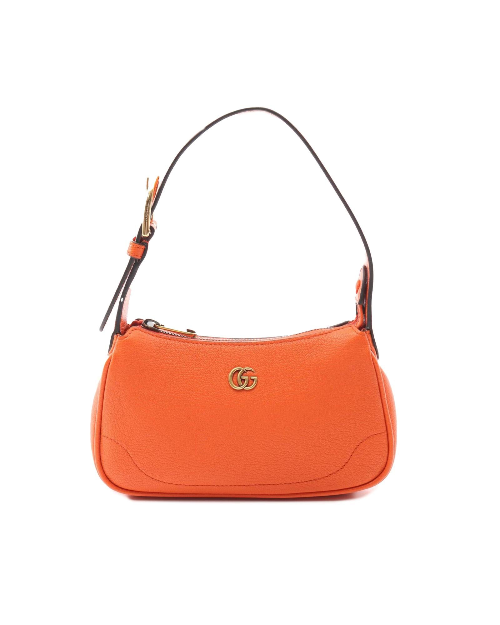 The Aphrodite bag features a leather body a flat leather strap and a top zip closure.