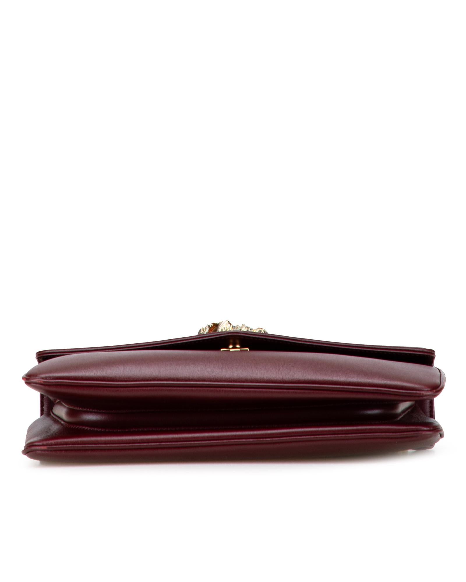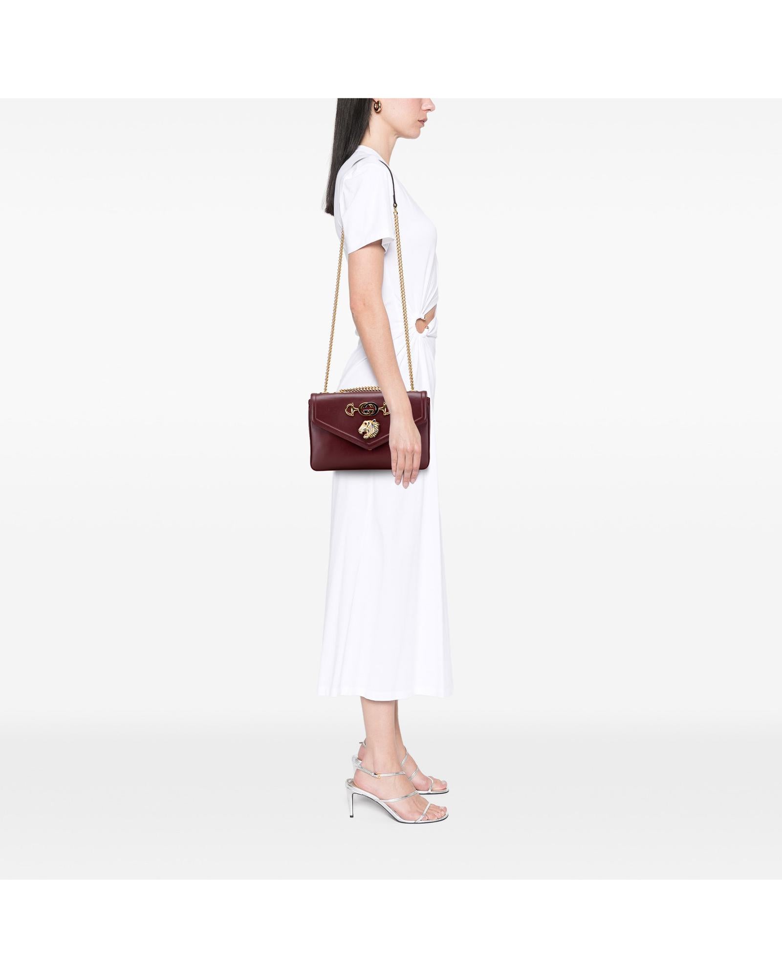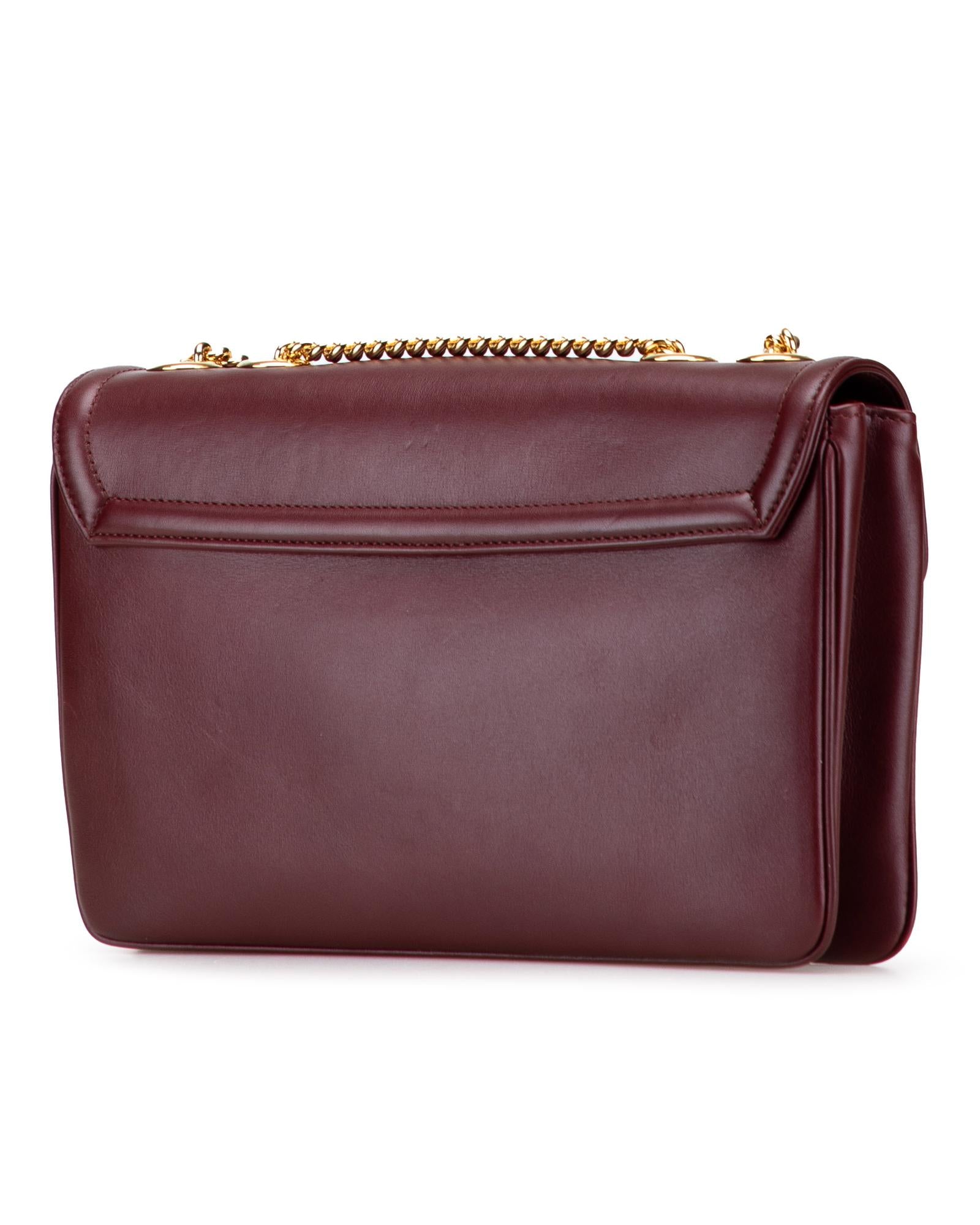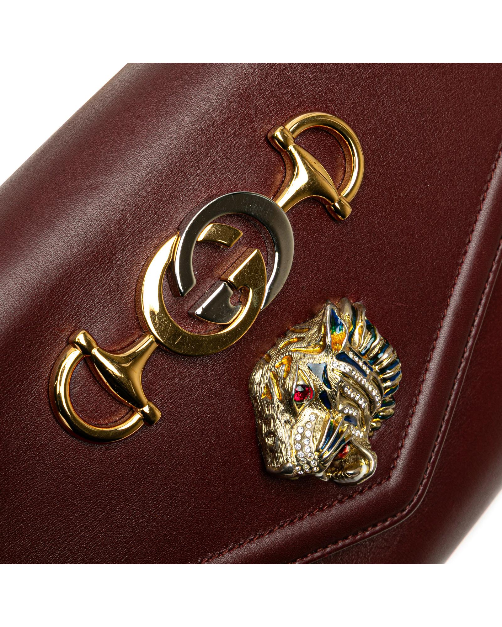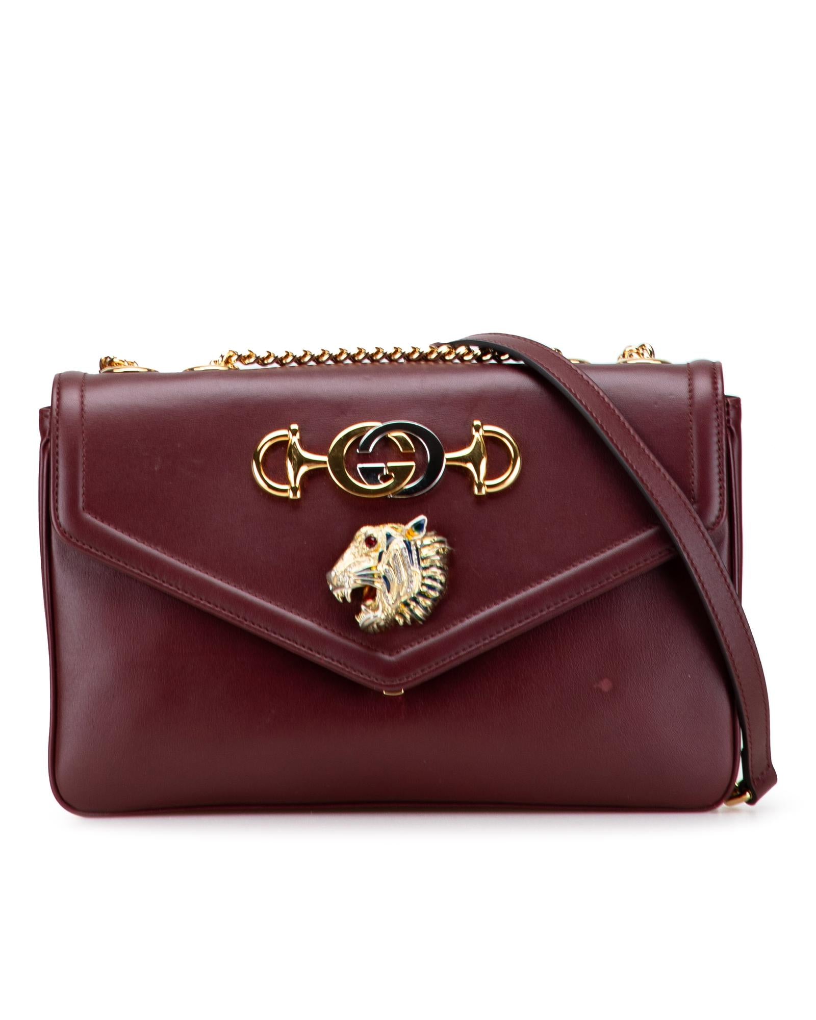 The Rajah crossbody bag features a leather body a gold-tone chain strap with leather shoulder guard a flap with magnetic button closure and interior zip and slip pockets.Brand: Gucci Vintage