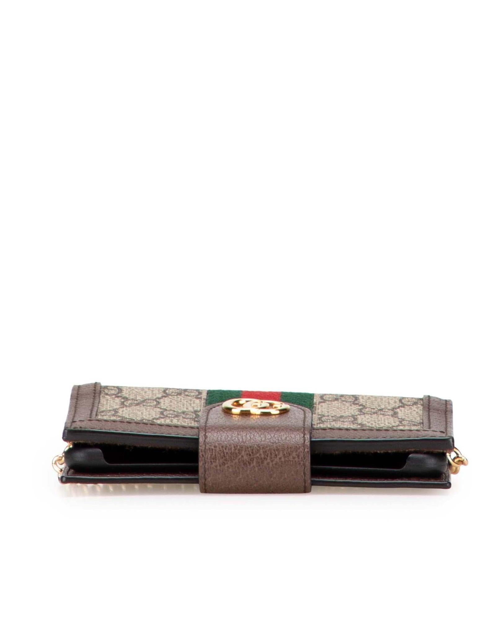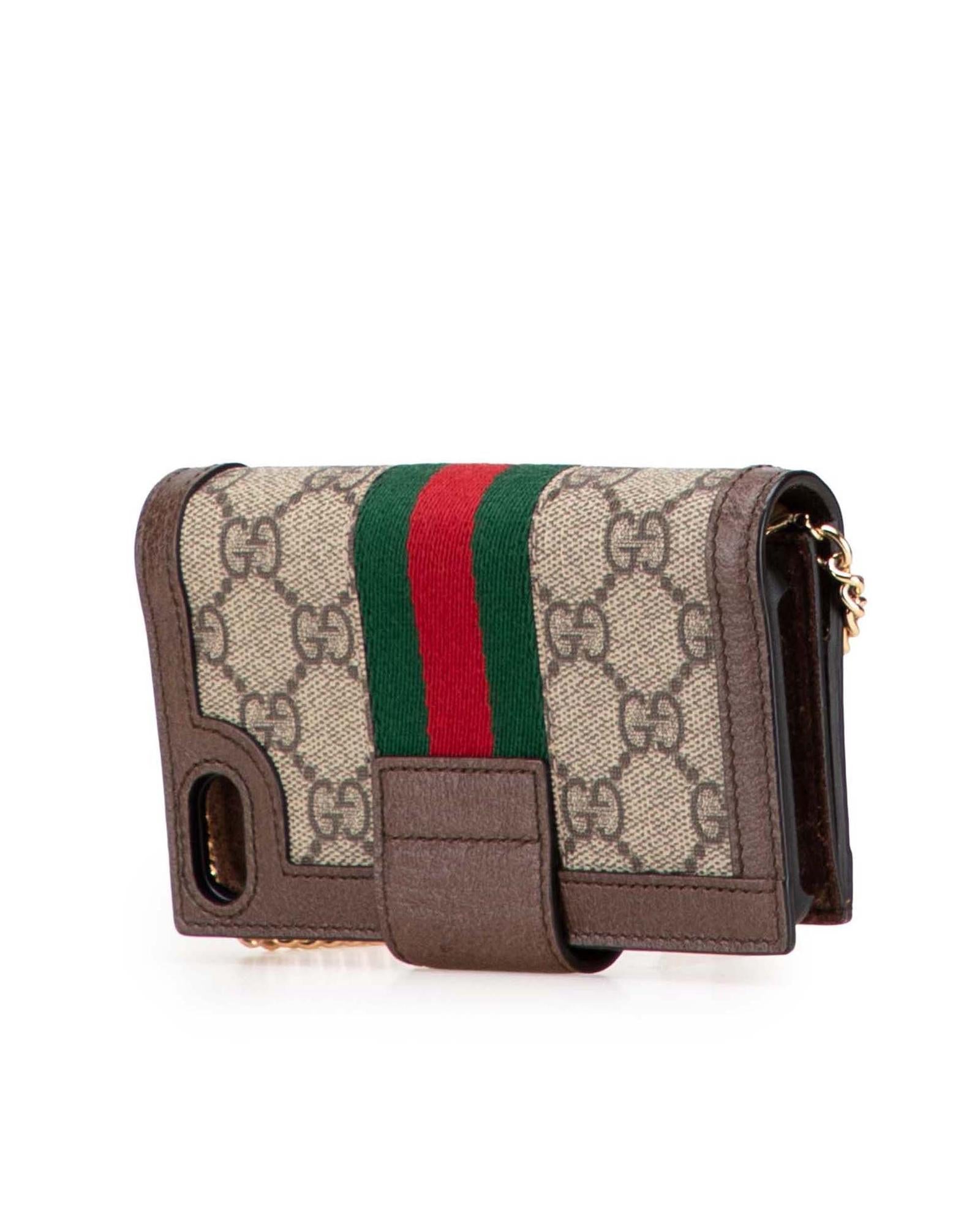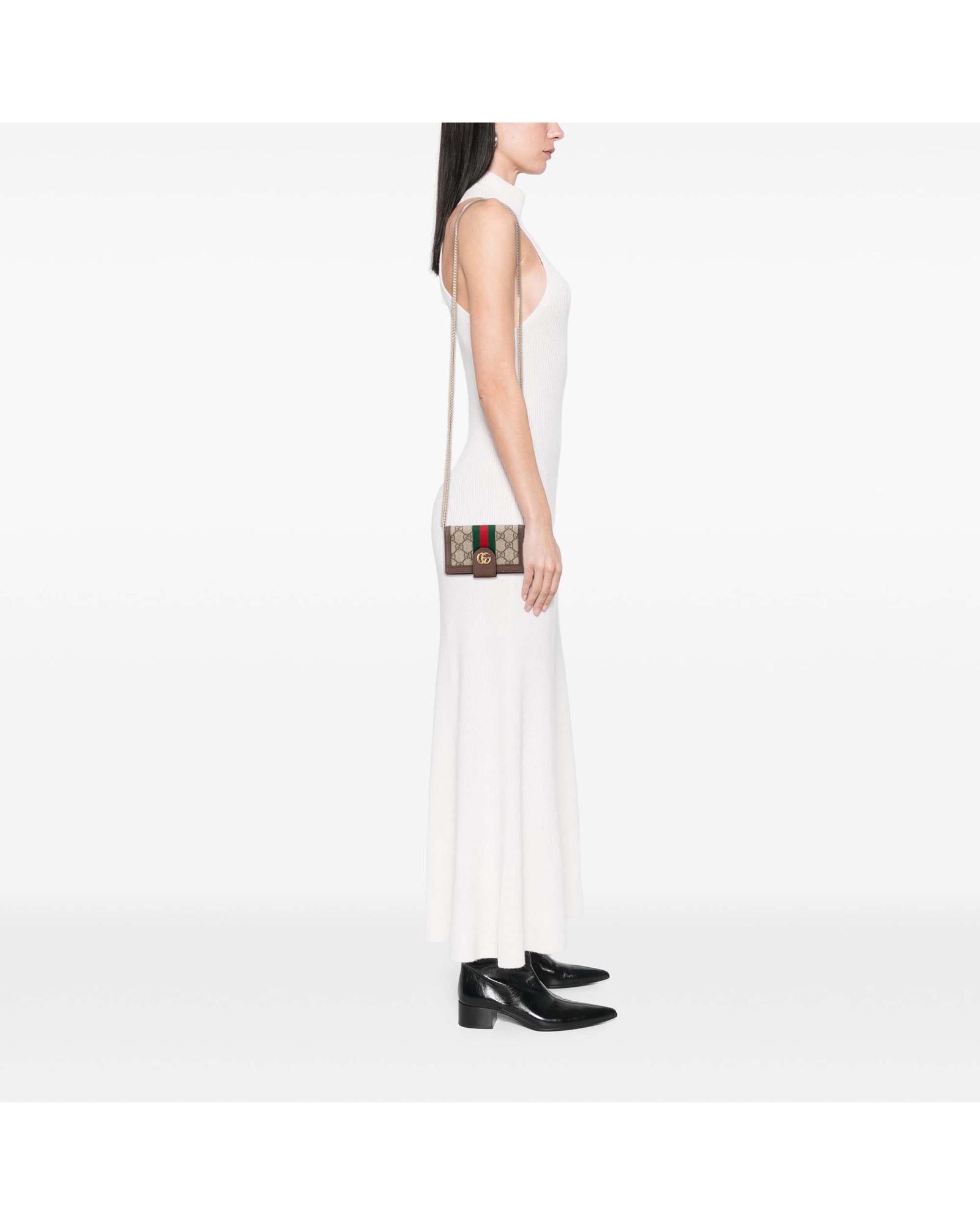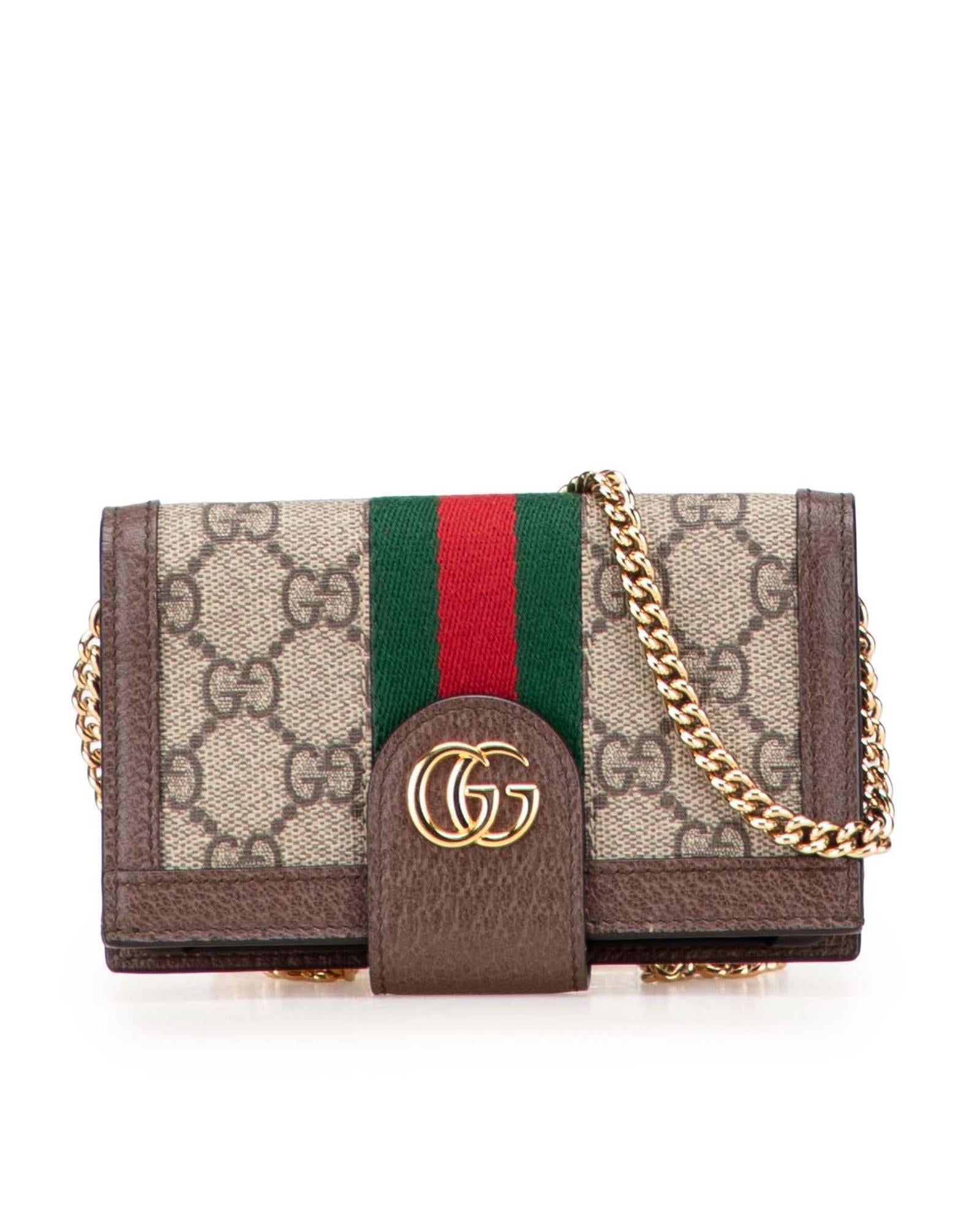 The Ophidia crossbody bag features a coated canvas body with leather trim and web detail a gold-tone chain strap a strap with snap closure and interior slip pockets.