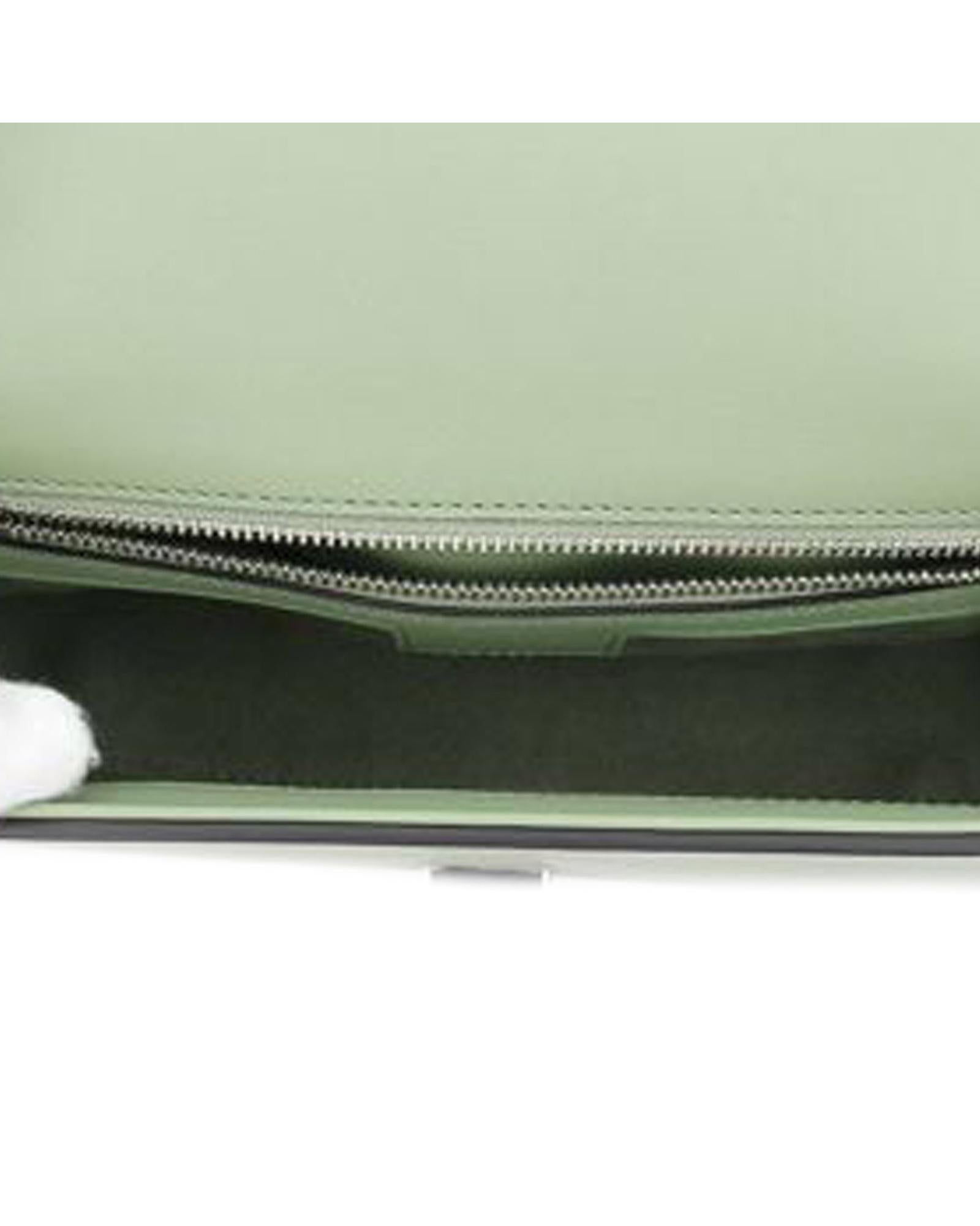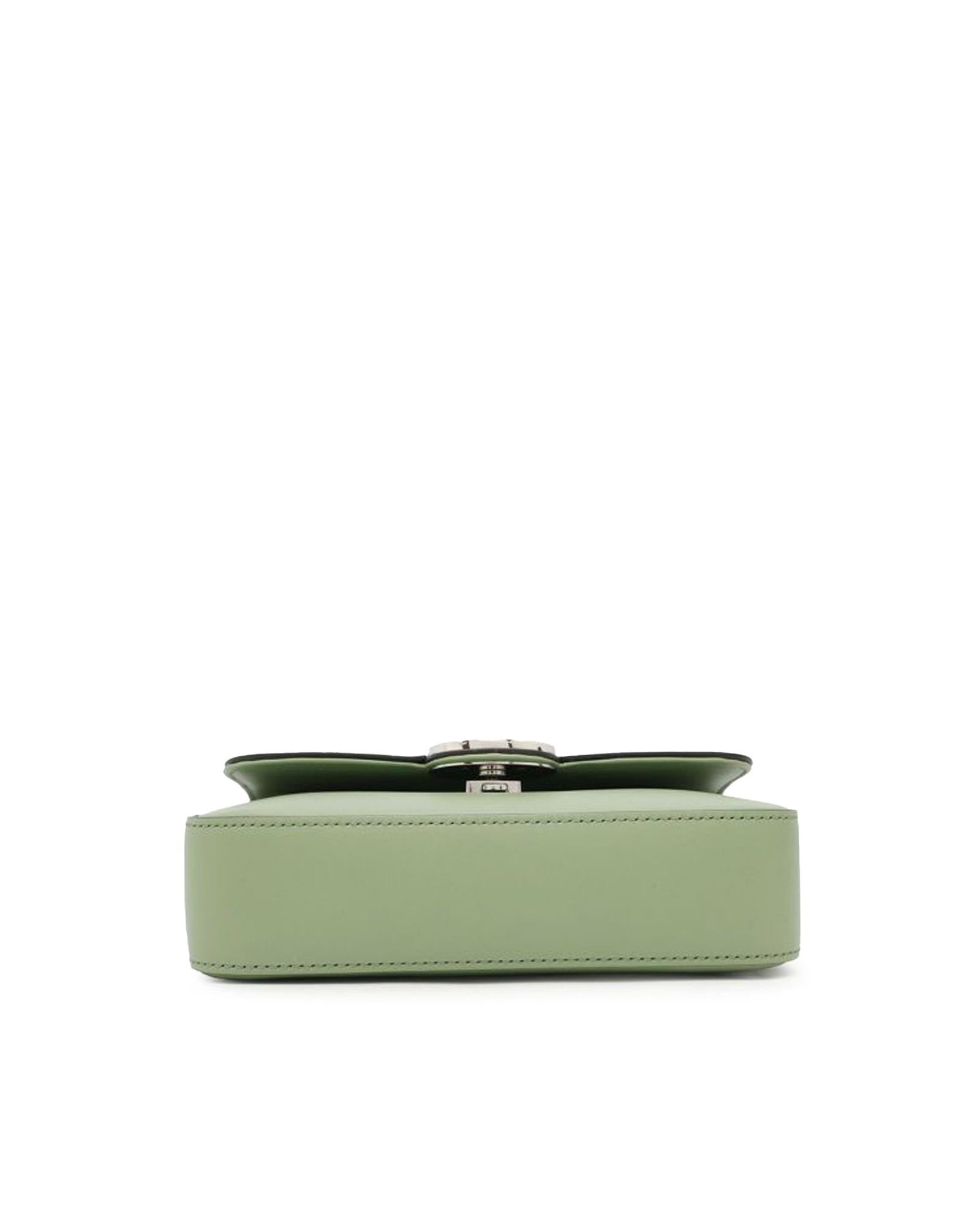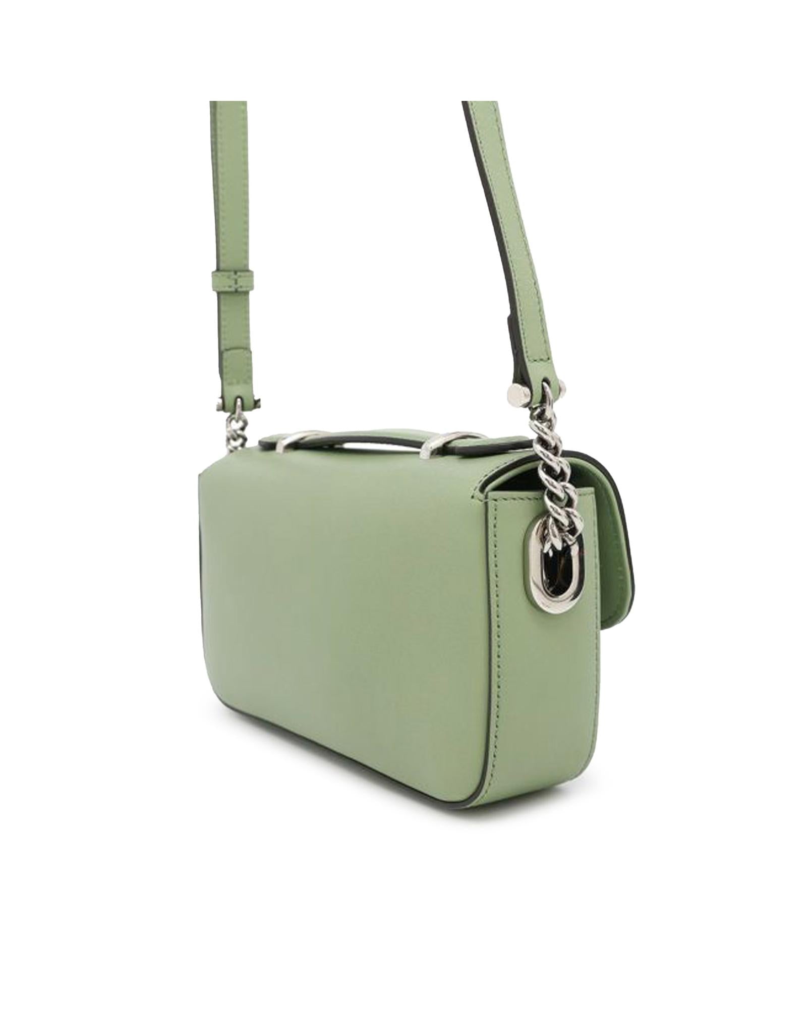 This satchel features a leather body a flat top handle an adjustable and detachable flat leather strap a front flap with push lock closure and an interior zip pocket.