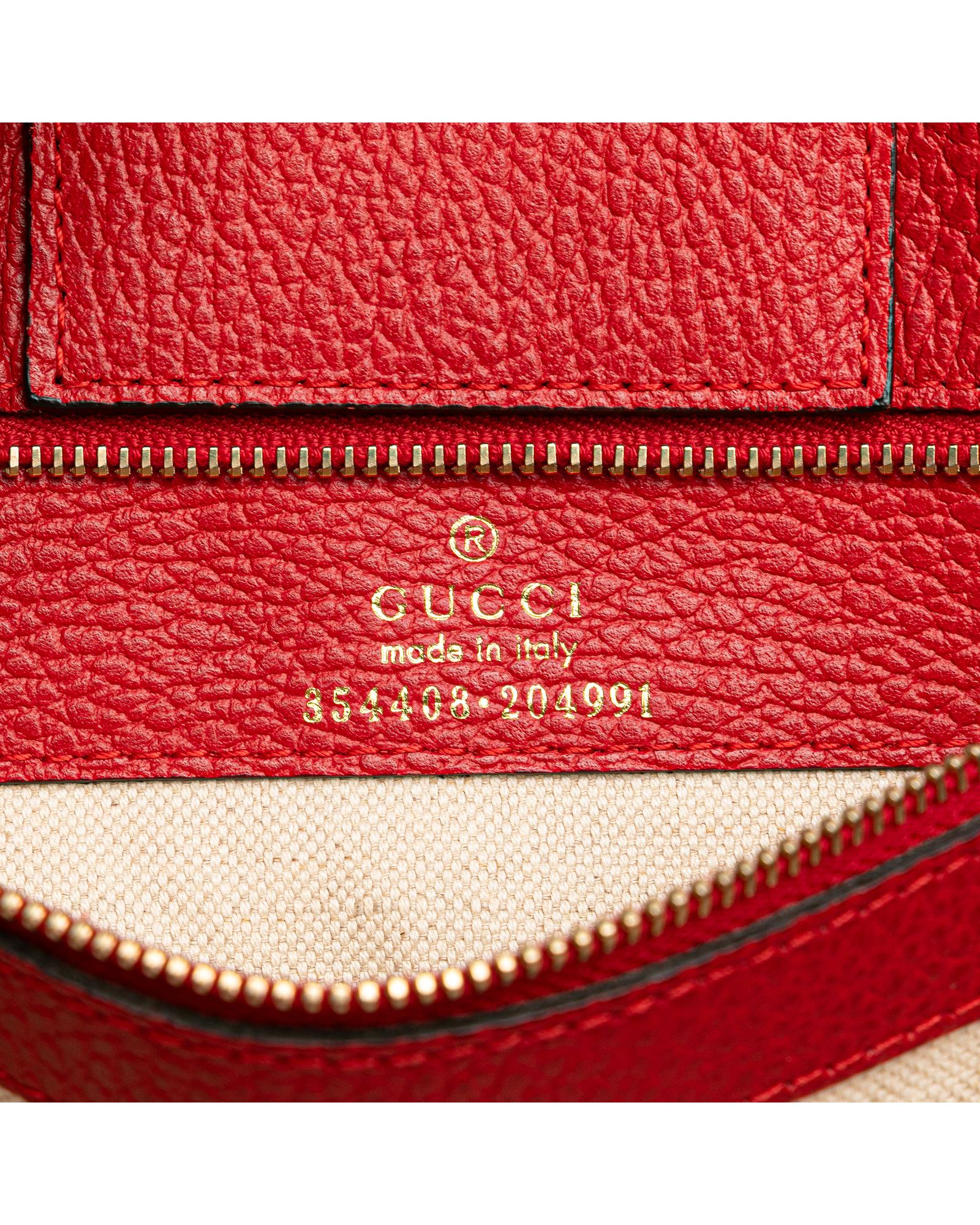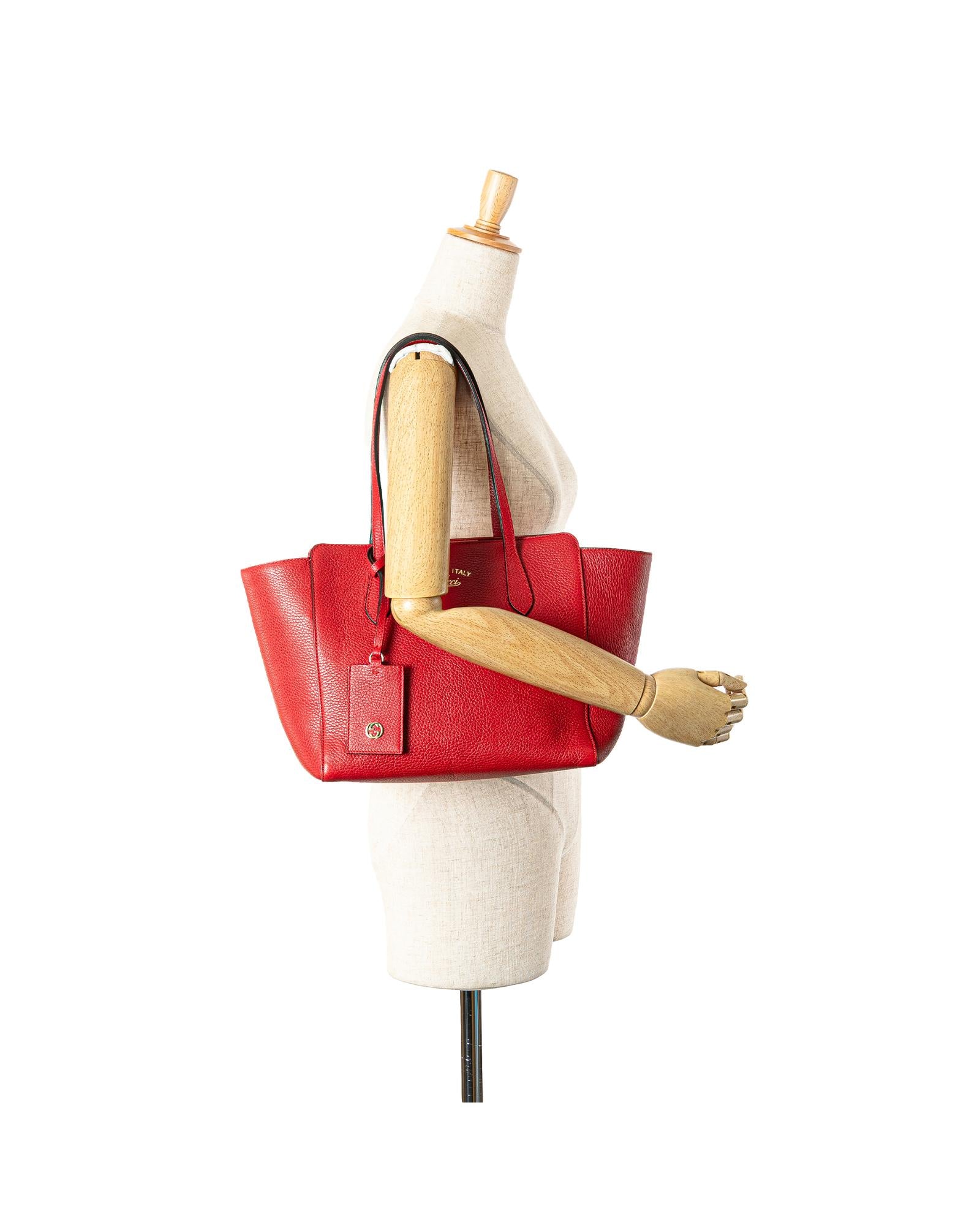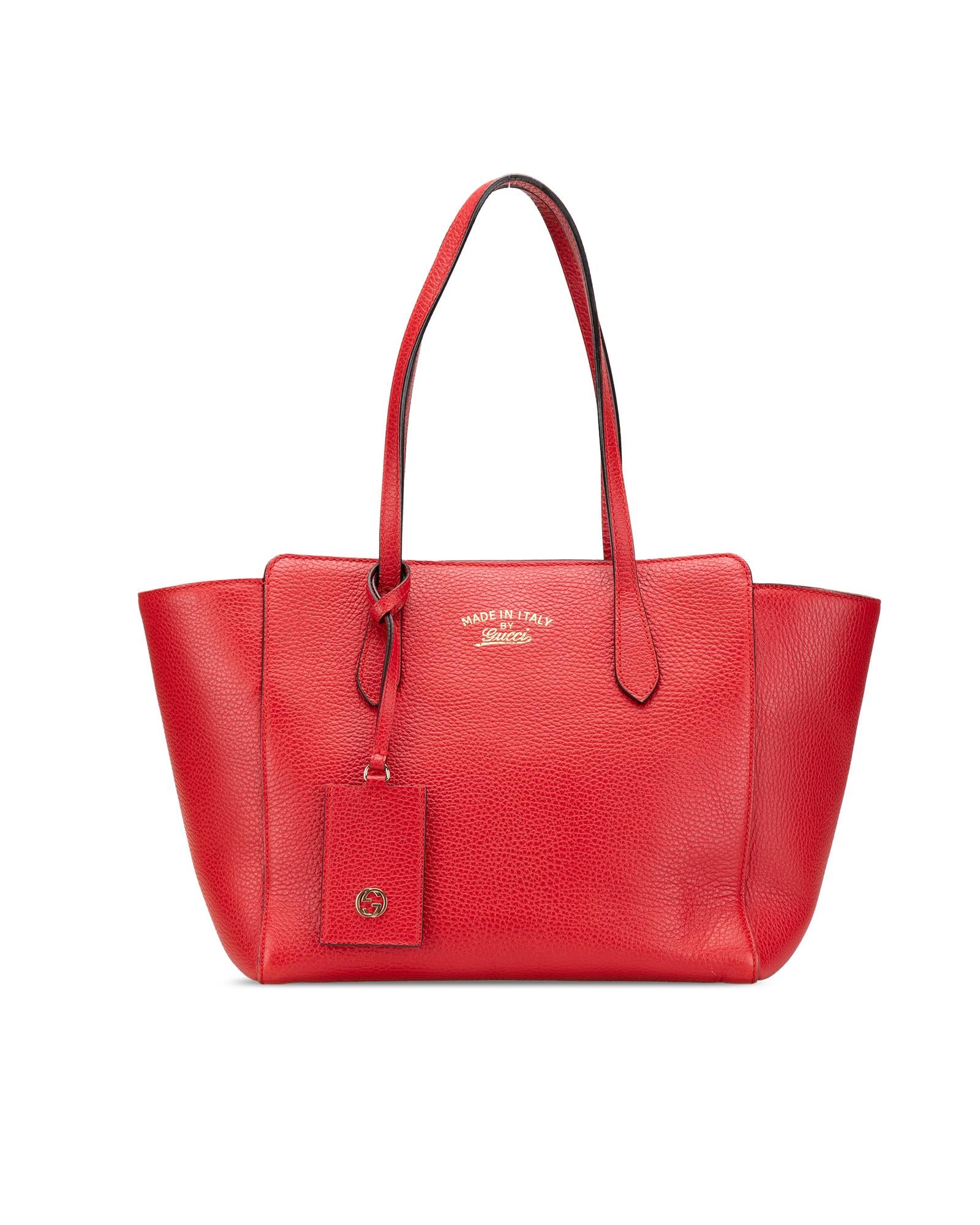 The Swing features a leather body flat leather straps an open top with magnetic closure and interior zip and slip pockets.Brand: Gucci Vintage