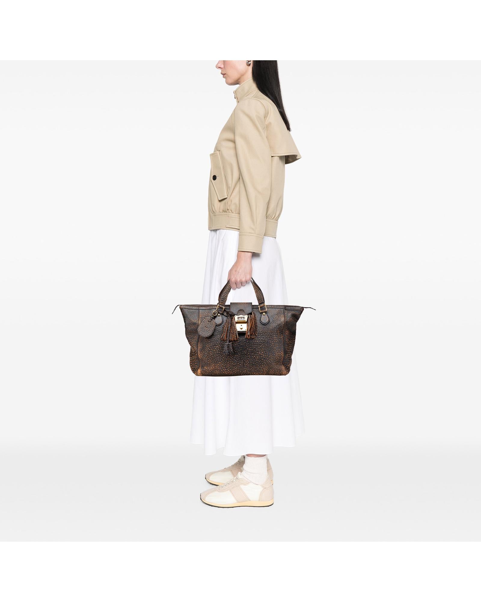 Pre-owned Leather Tote Bag with Tassel Detail and Zipper Closure