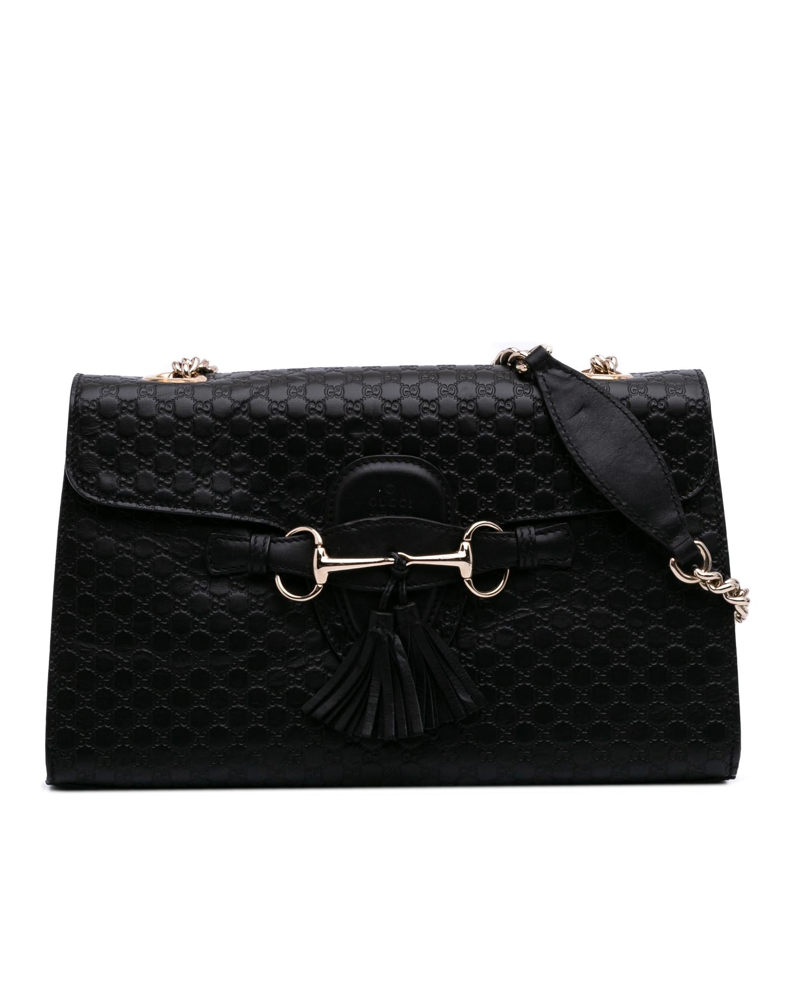 The Emily features an embossed leather body a curb chain strap a front flap with a slip-through closure and a tassel detail and interior slip pockets.Brand: Gucci Vintage