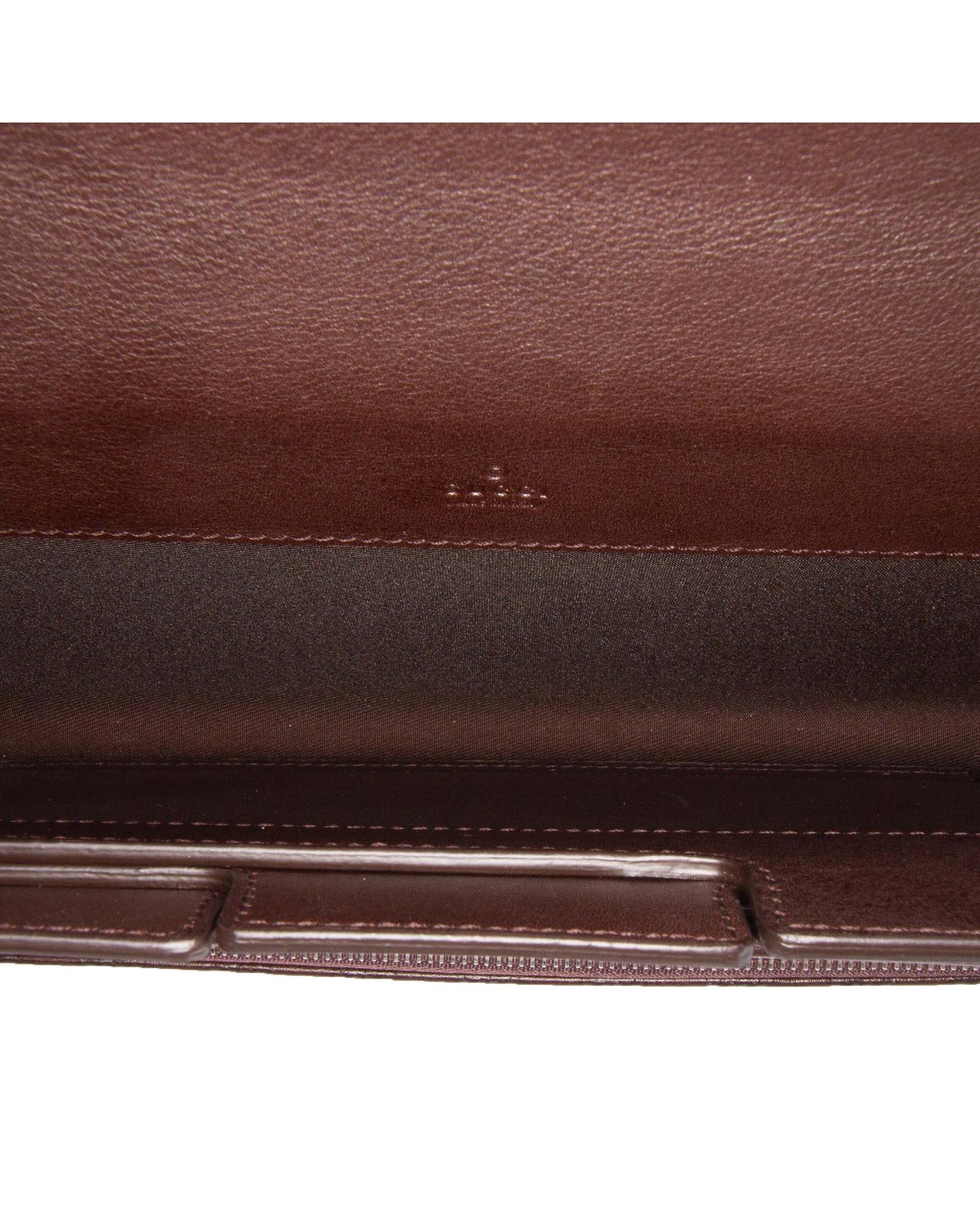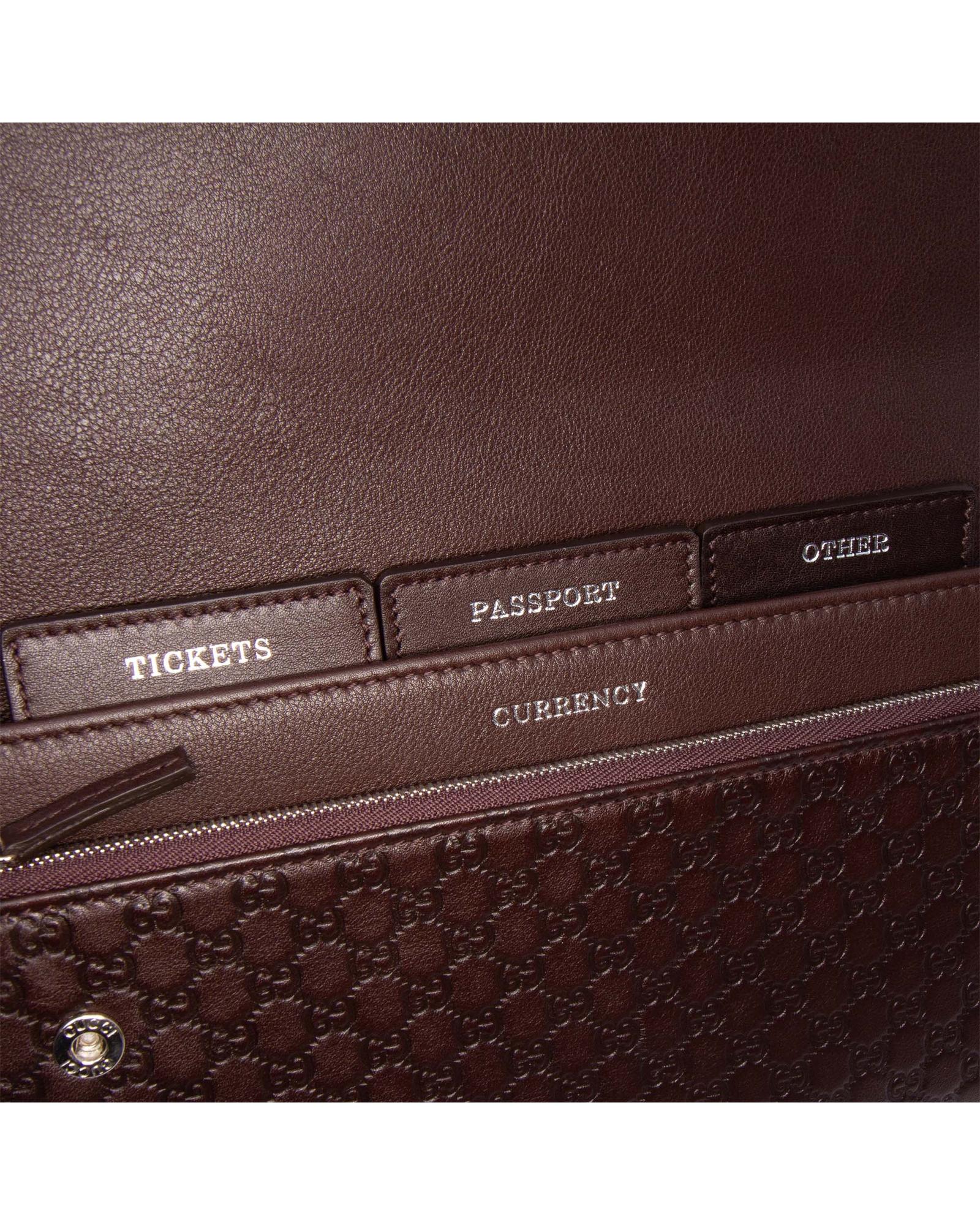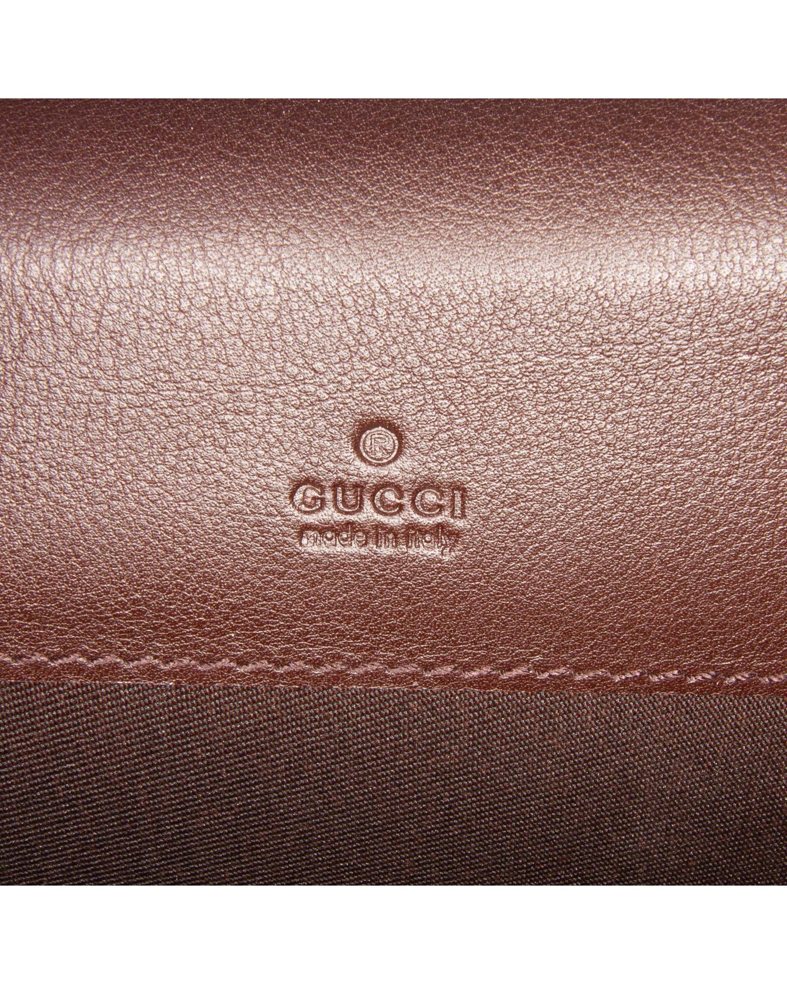 This organizer features an embossed leather body a flap with snap button closure and interior zip and slip compartments.Brand: Gucci Vintage