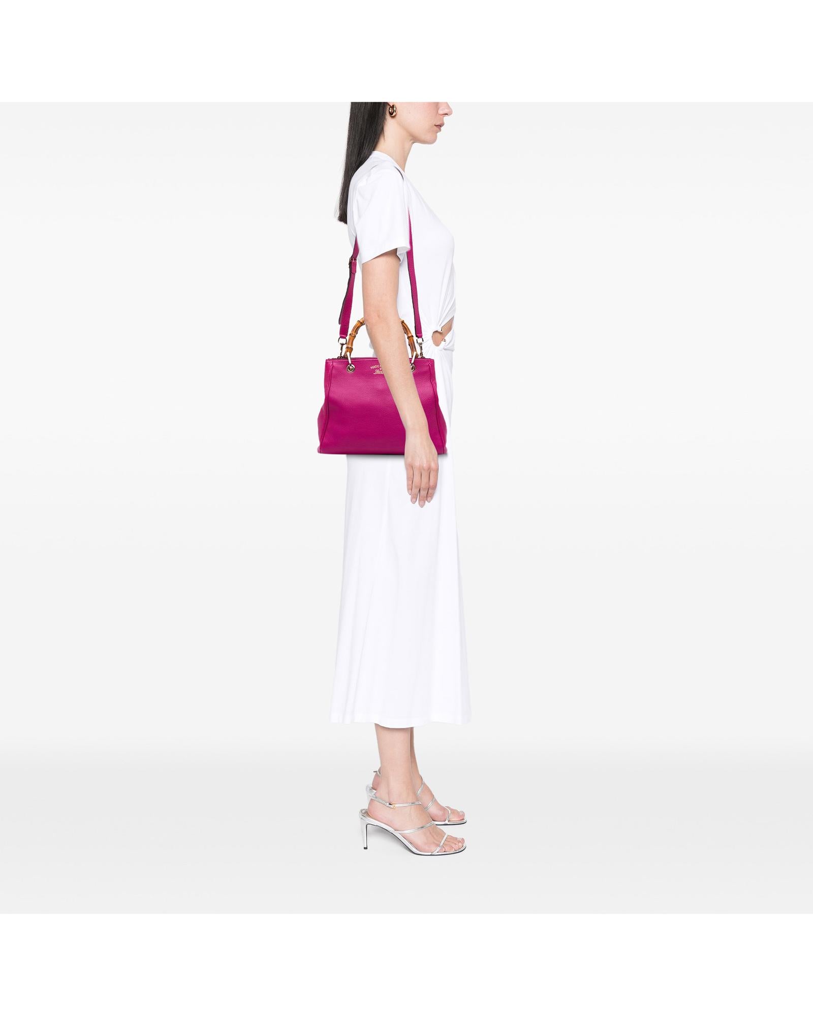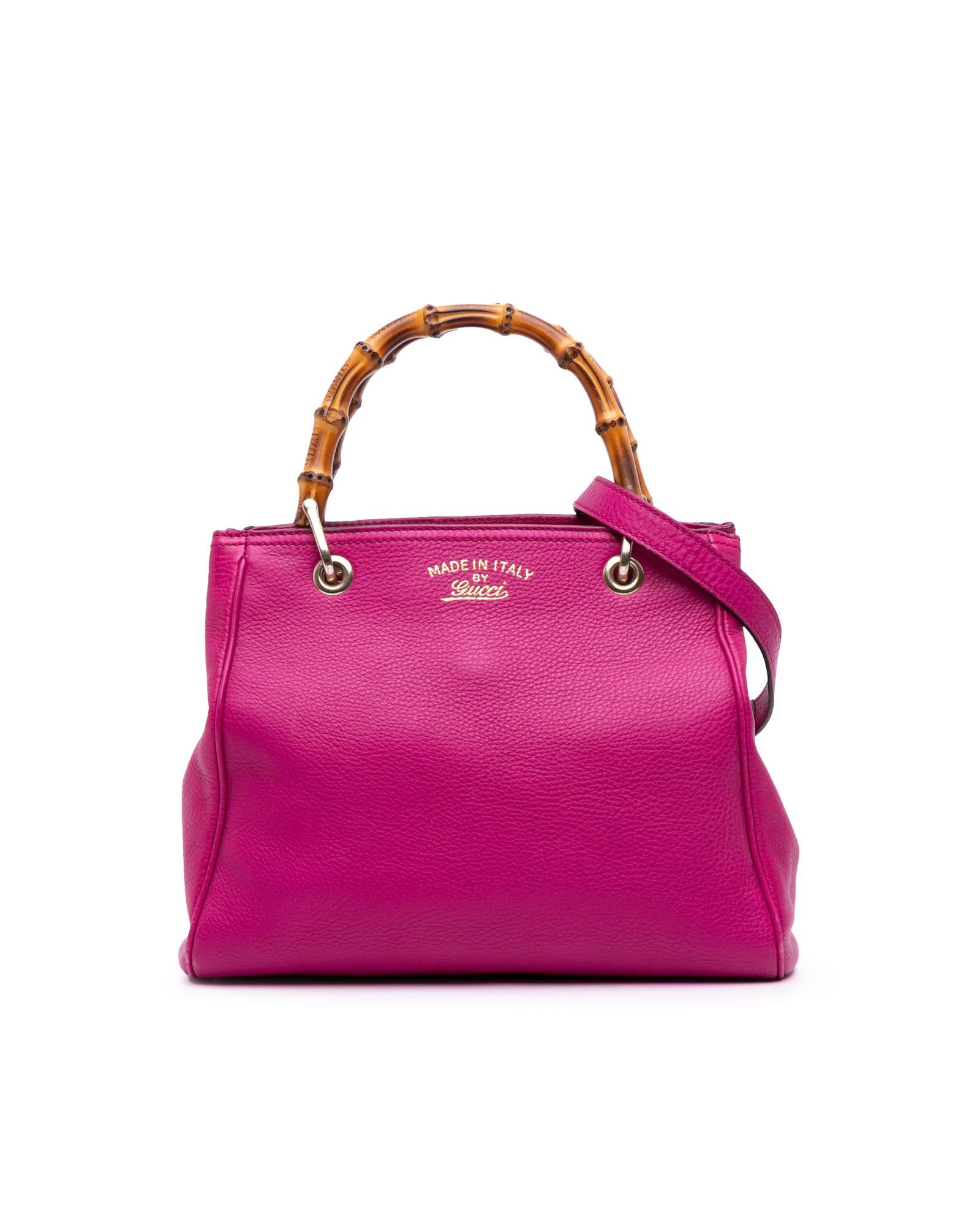 The Small Bamboo Shopper features a leather body bamboo top handles a detachable and adjustable flat leather shoulder strap an open top with magnetic snap closure and interior zip and slip pockets.Brand: Gucci Vintage
