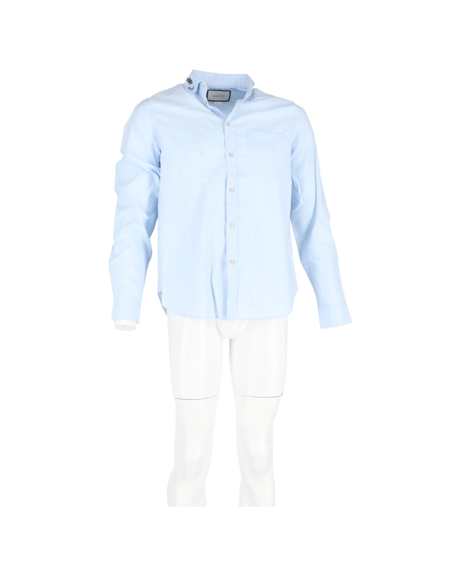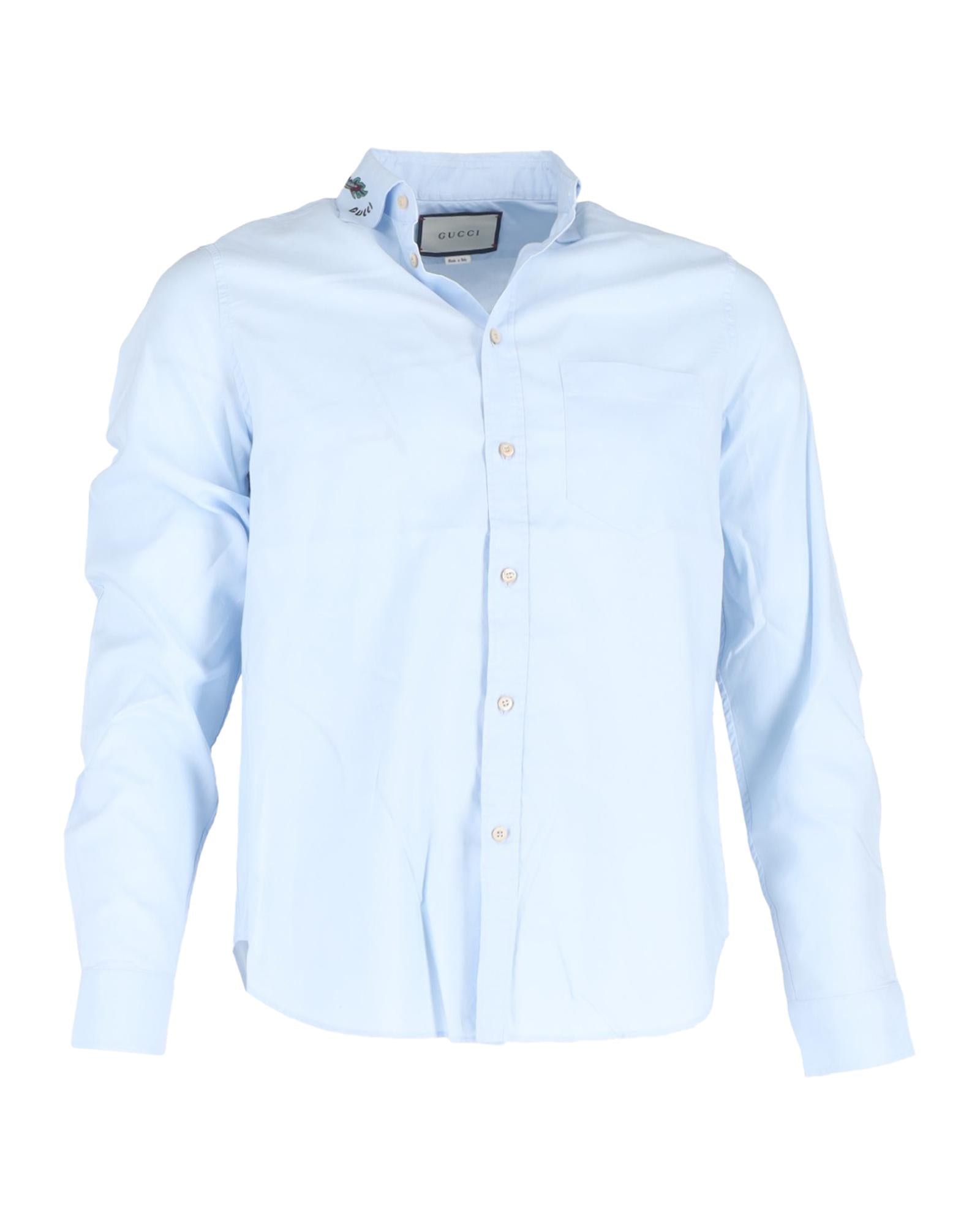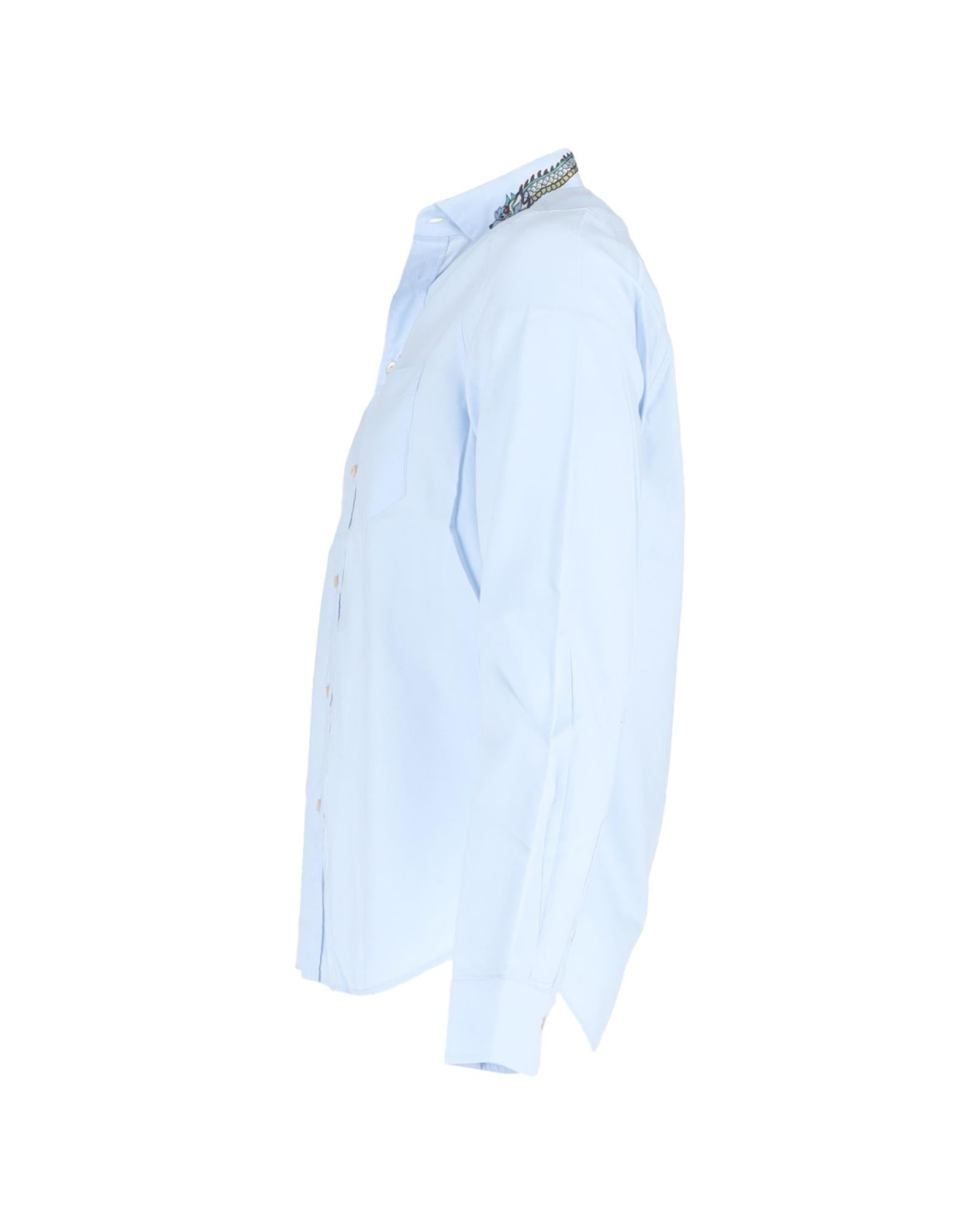 - Gucci Dragon Printed Collar Long Sleeve Shirt in Light Blue Cotton