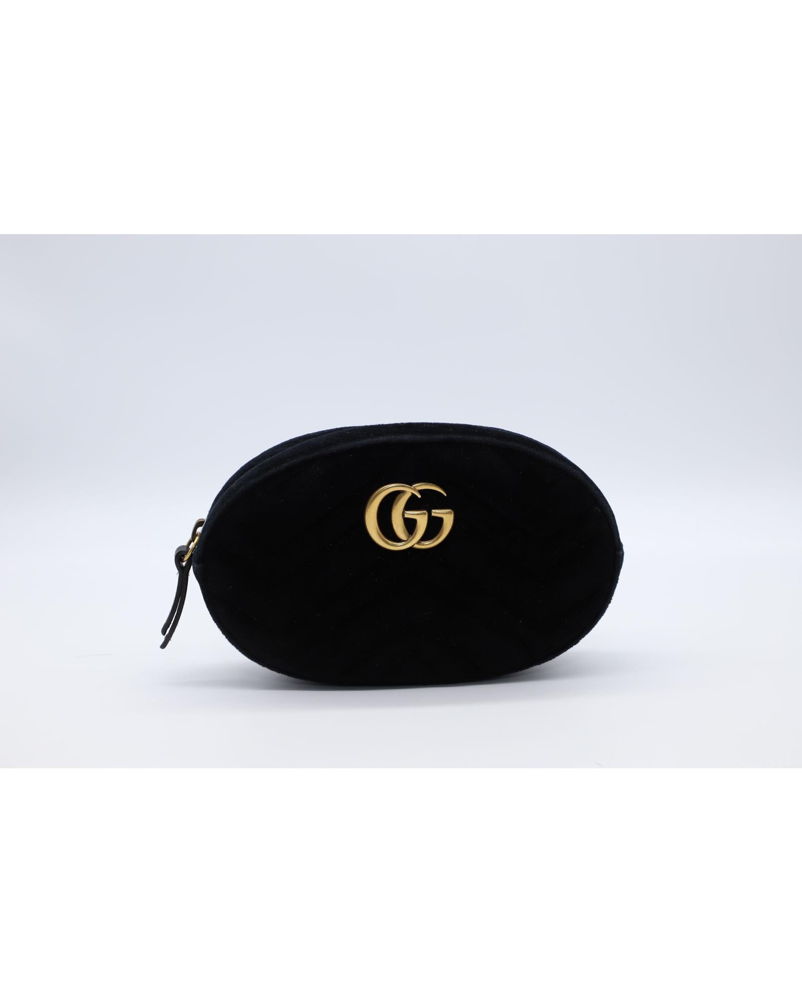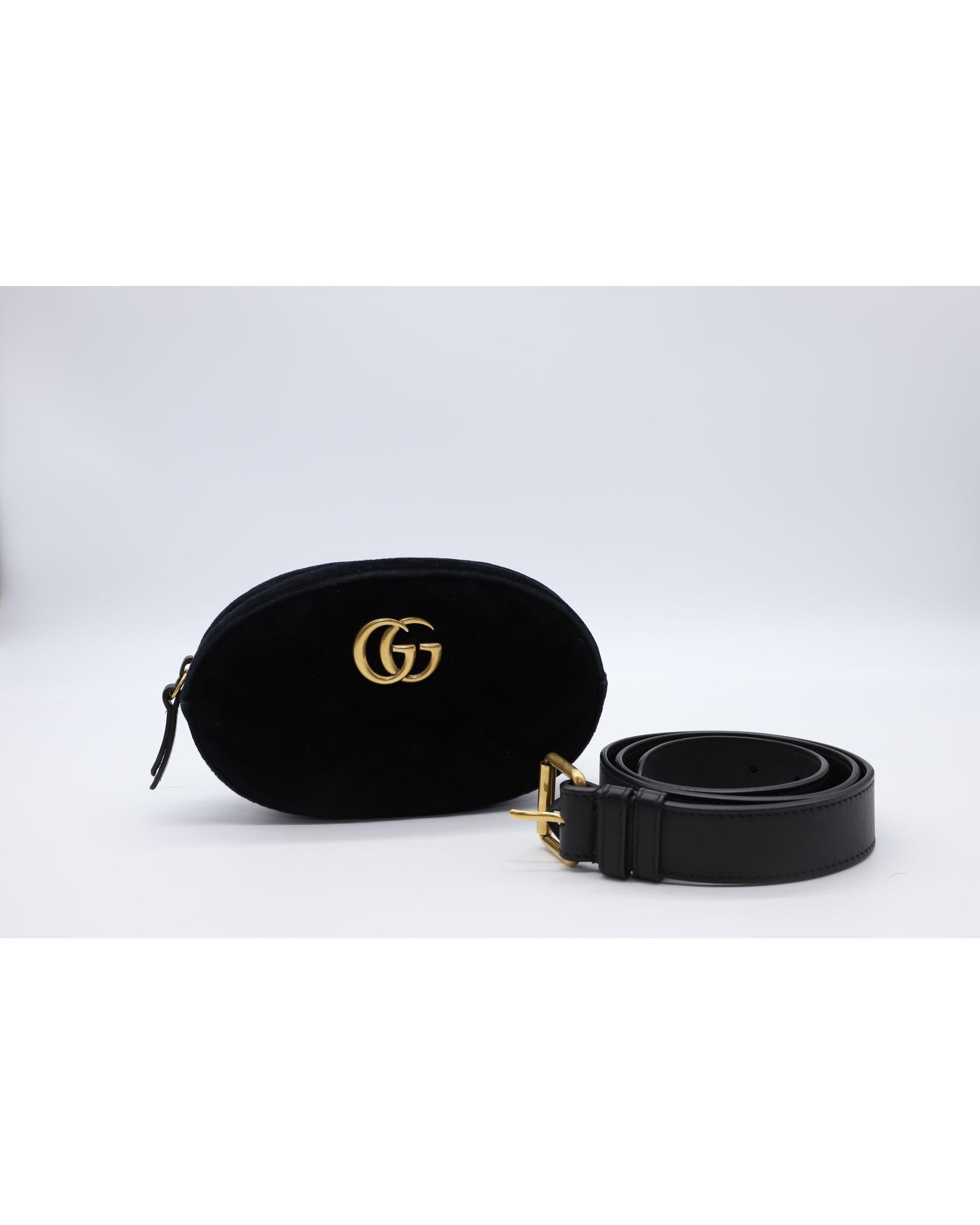 • Luxurious Gucci GG Marmont Matelasse Belt Bag in Black Velvet