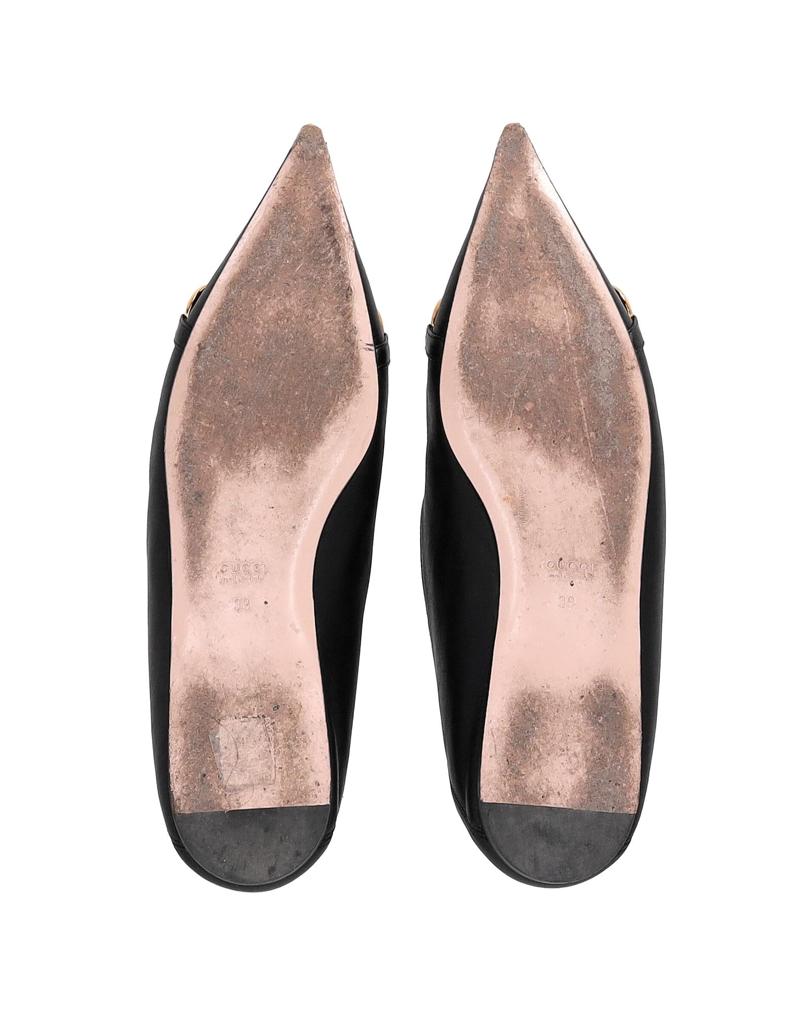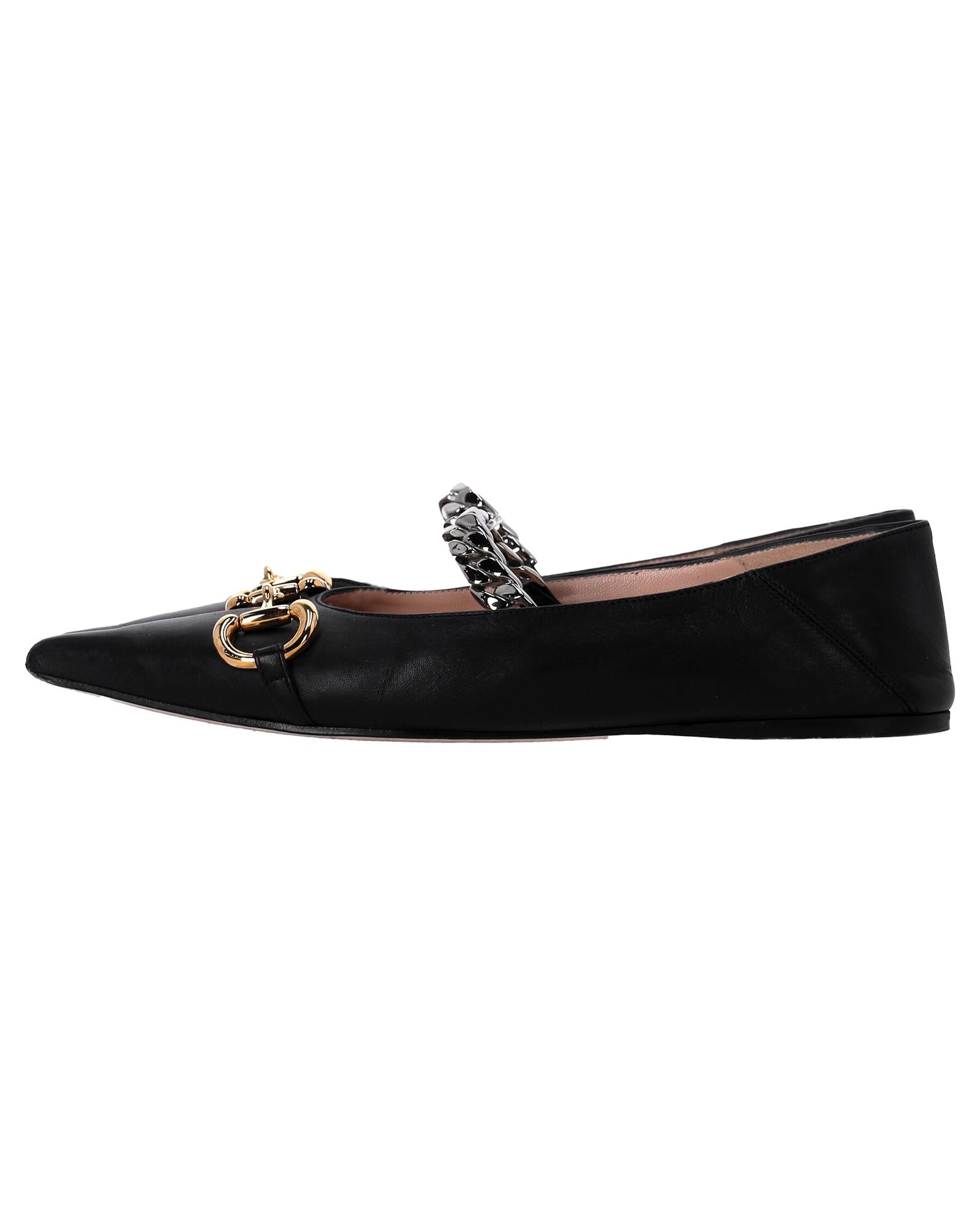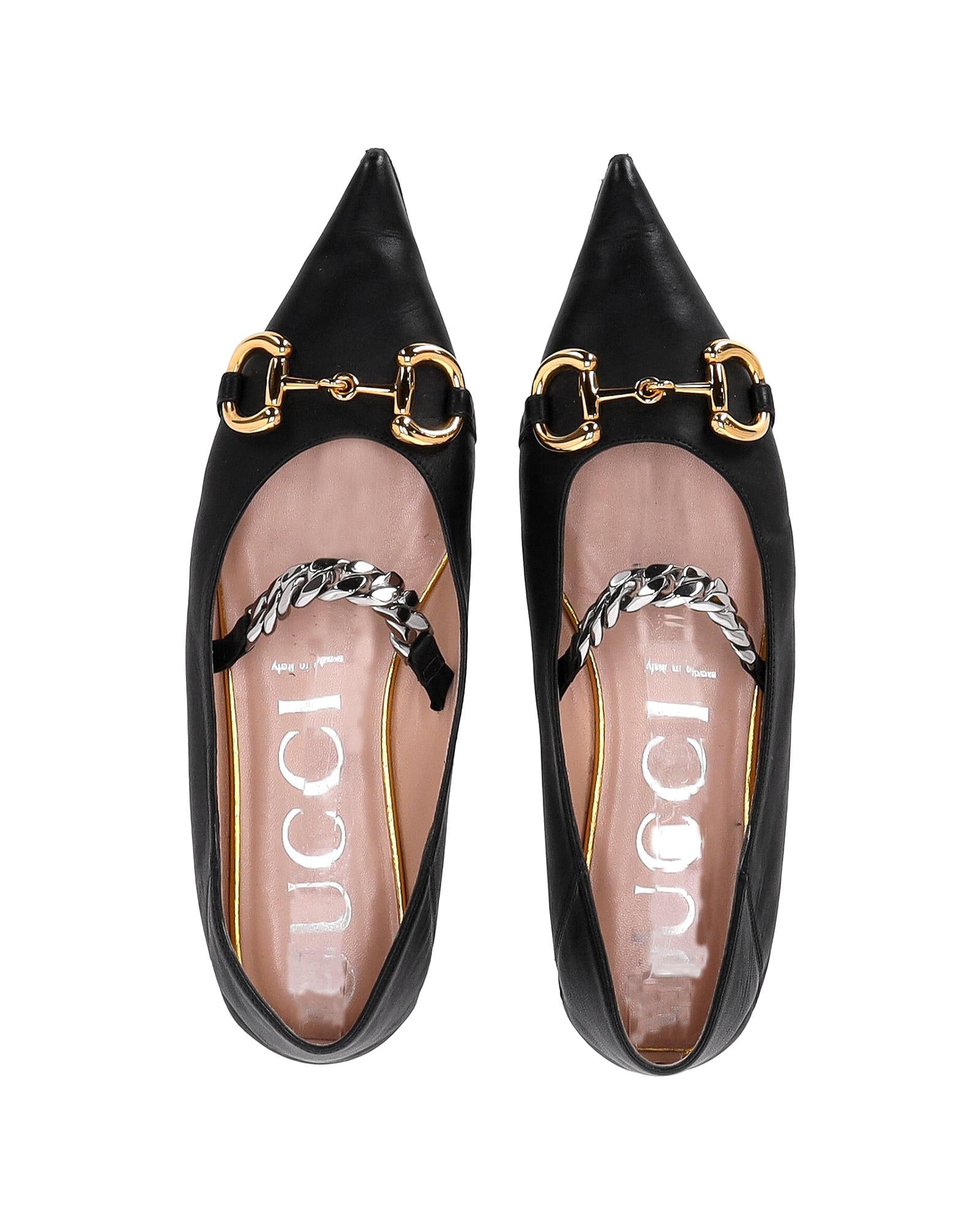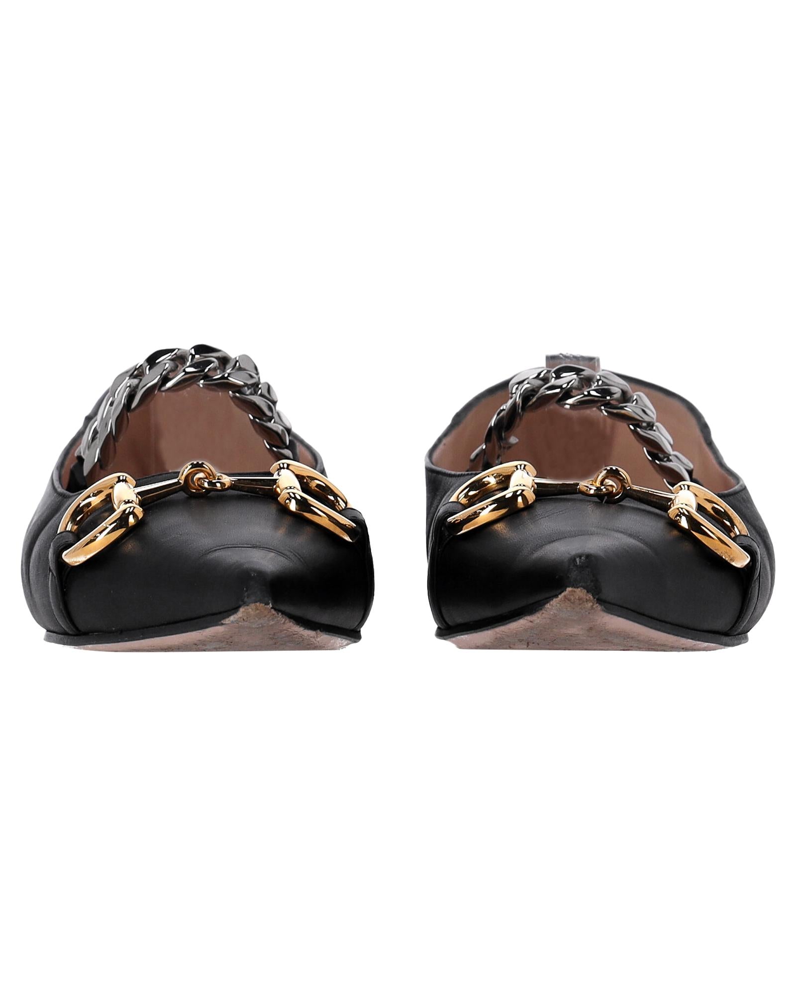- Gucci Deva Horsebit Chain Ballerina Flats in Black Leather